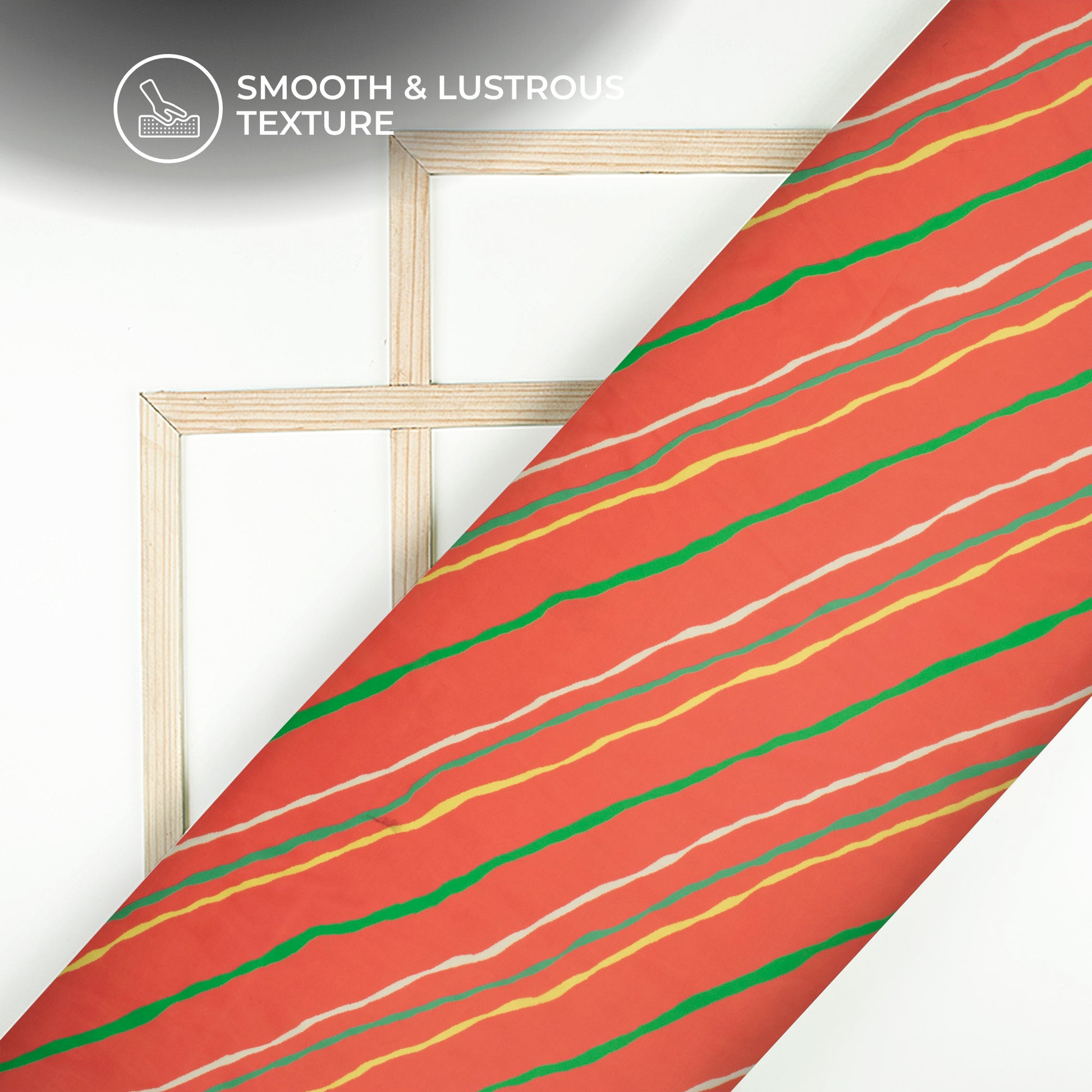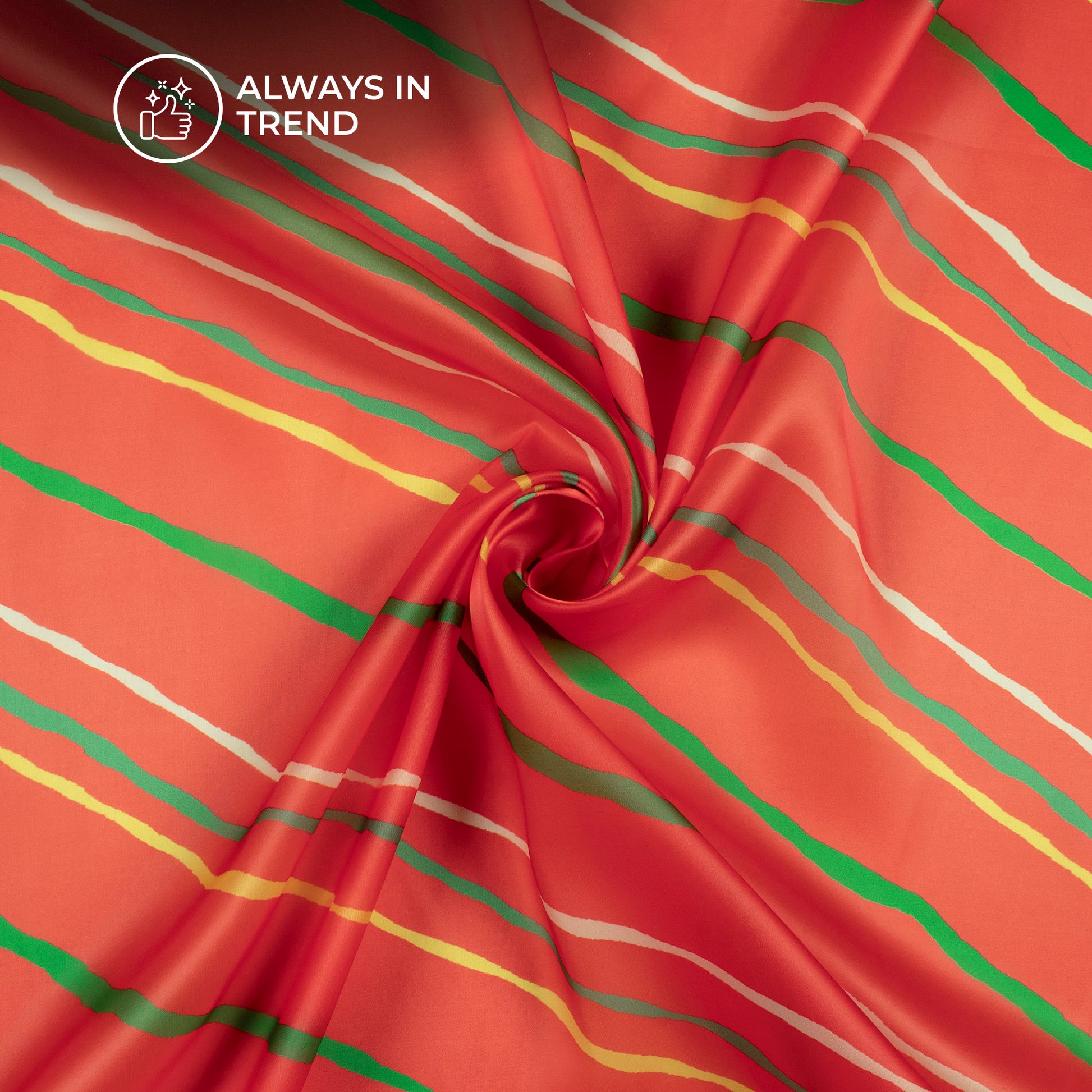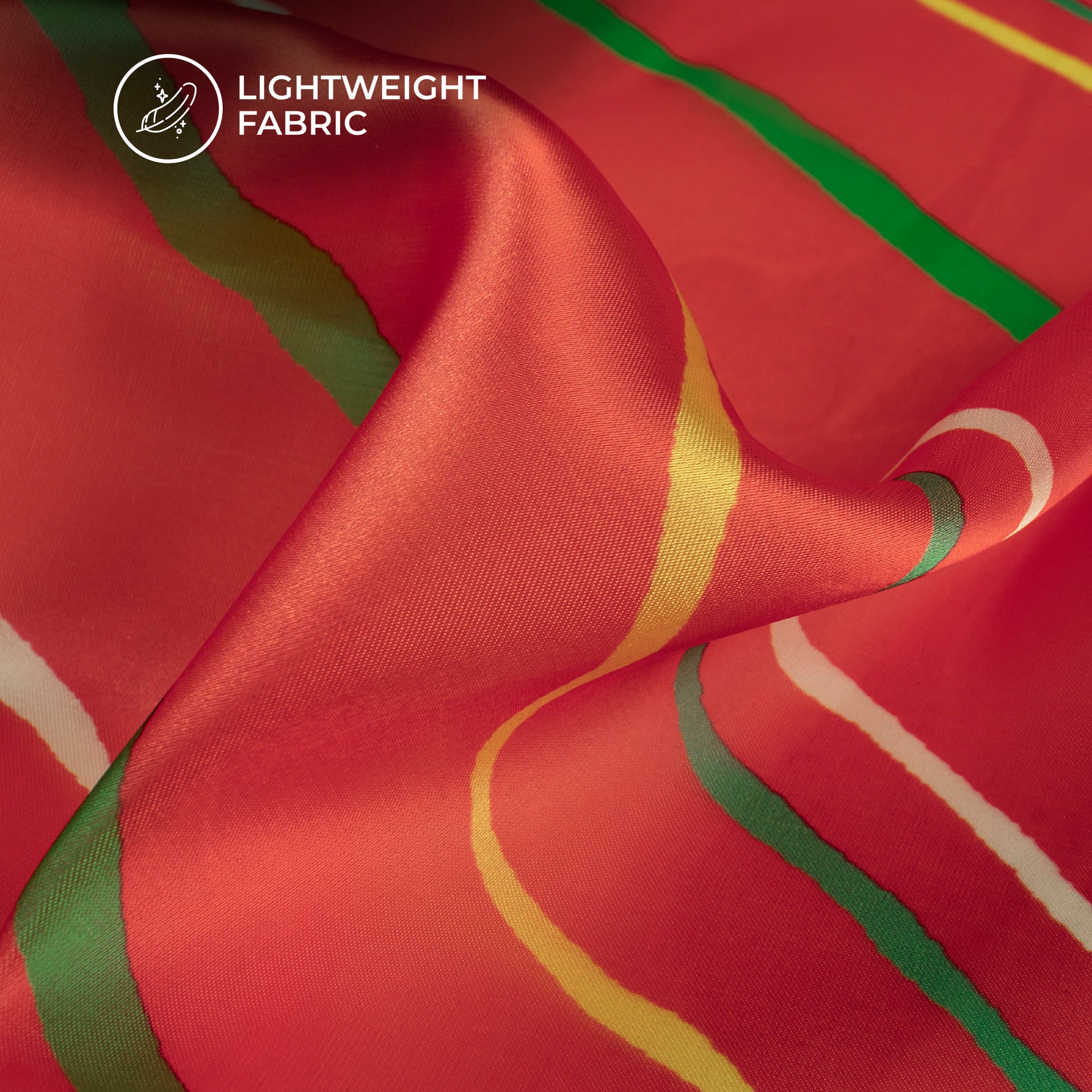 Cherry Red Leheriya Digital Print Organza Satin Fabric