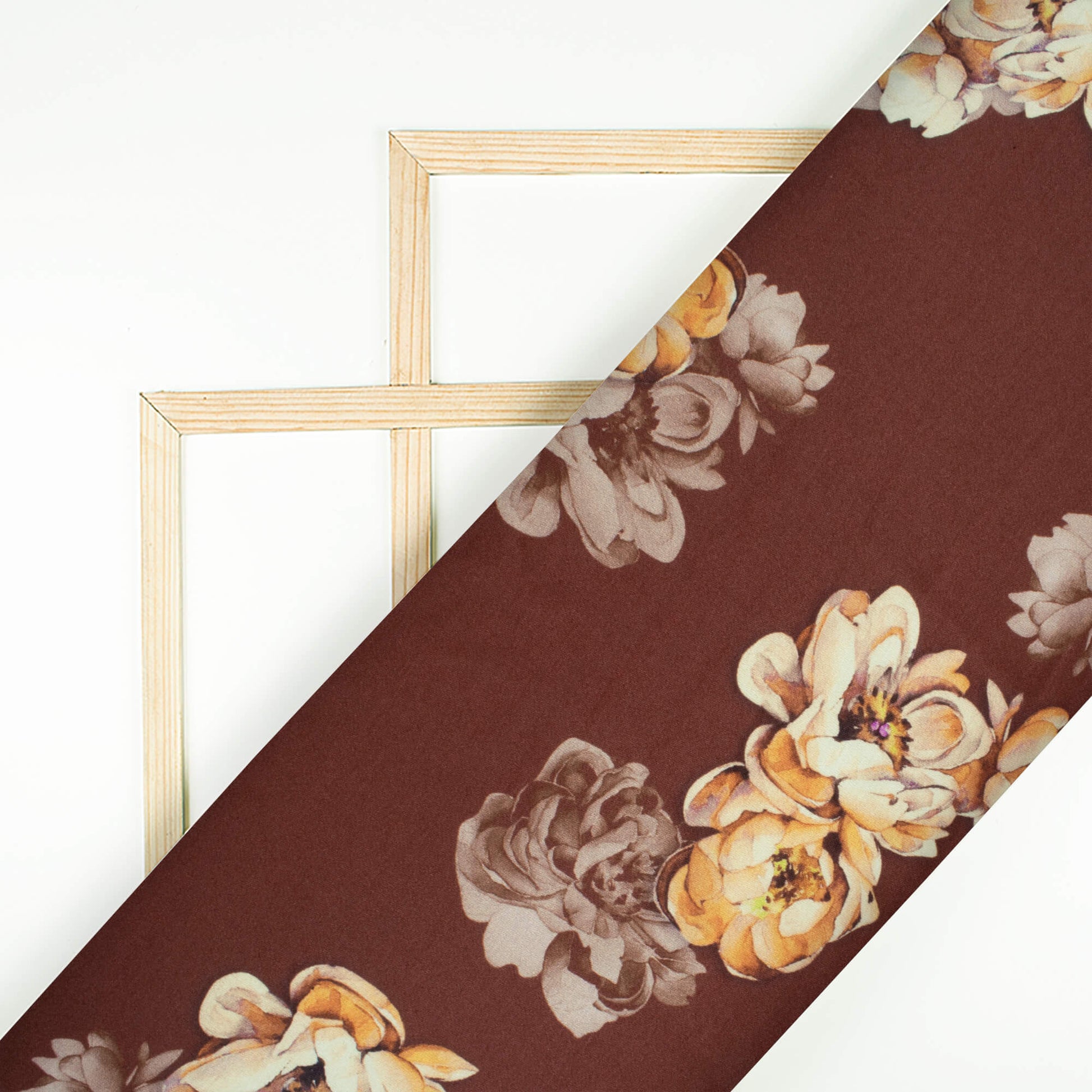 Chocolate Brown And Cream Floral Pattern Digital Print Premium Lush Satin Fabric