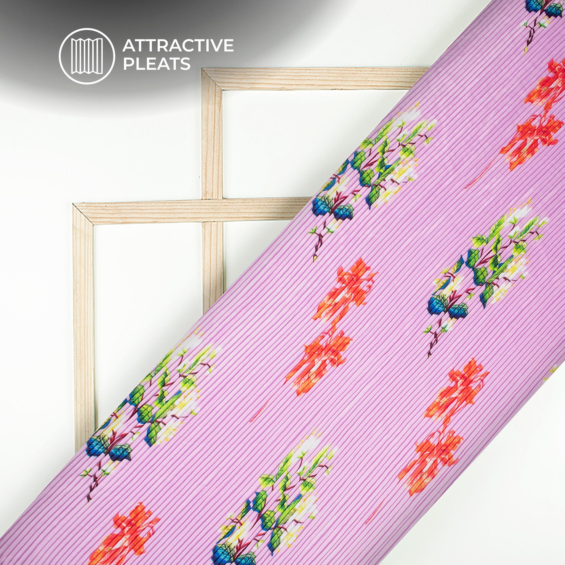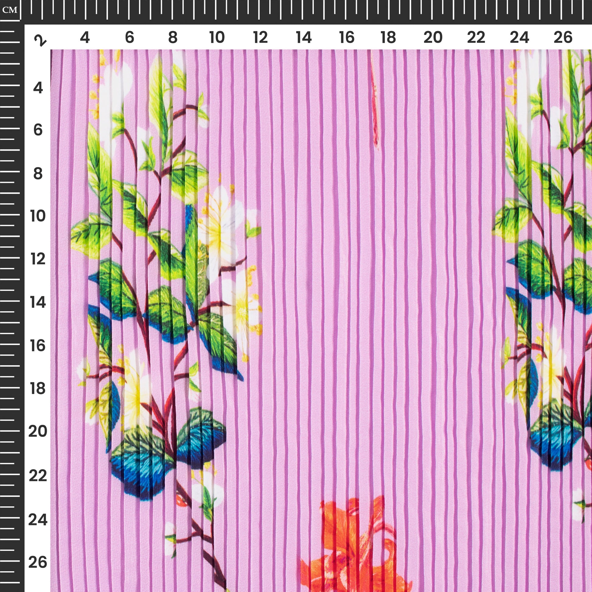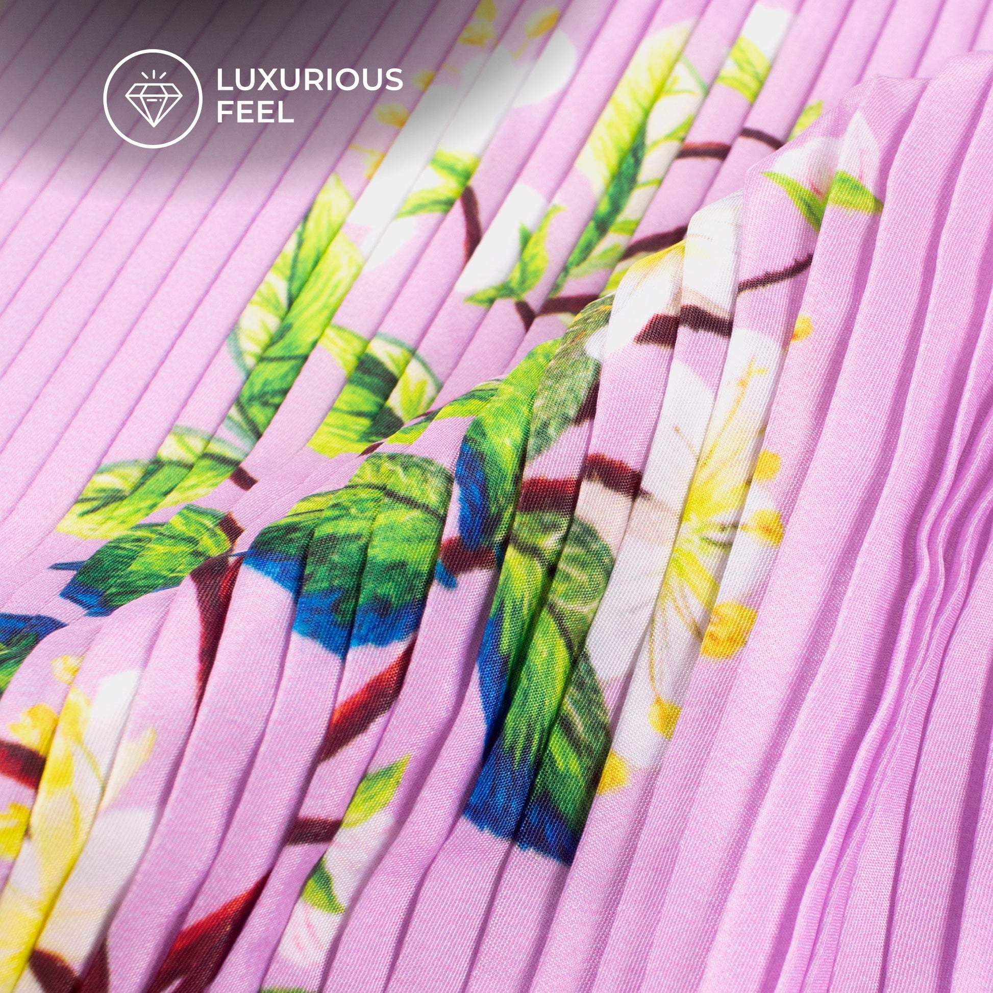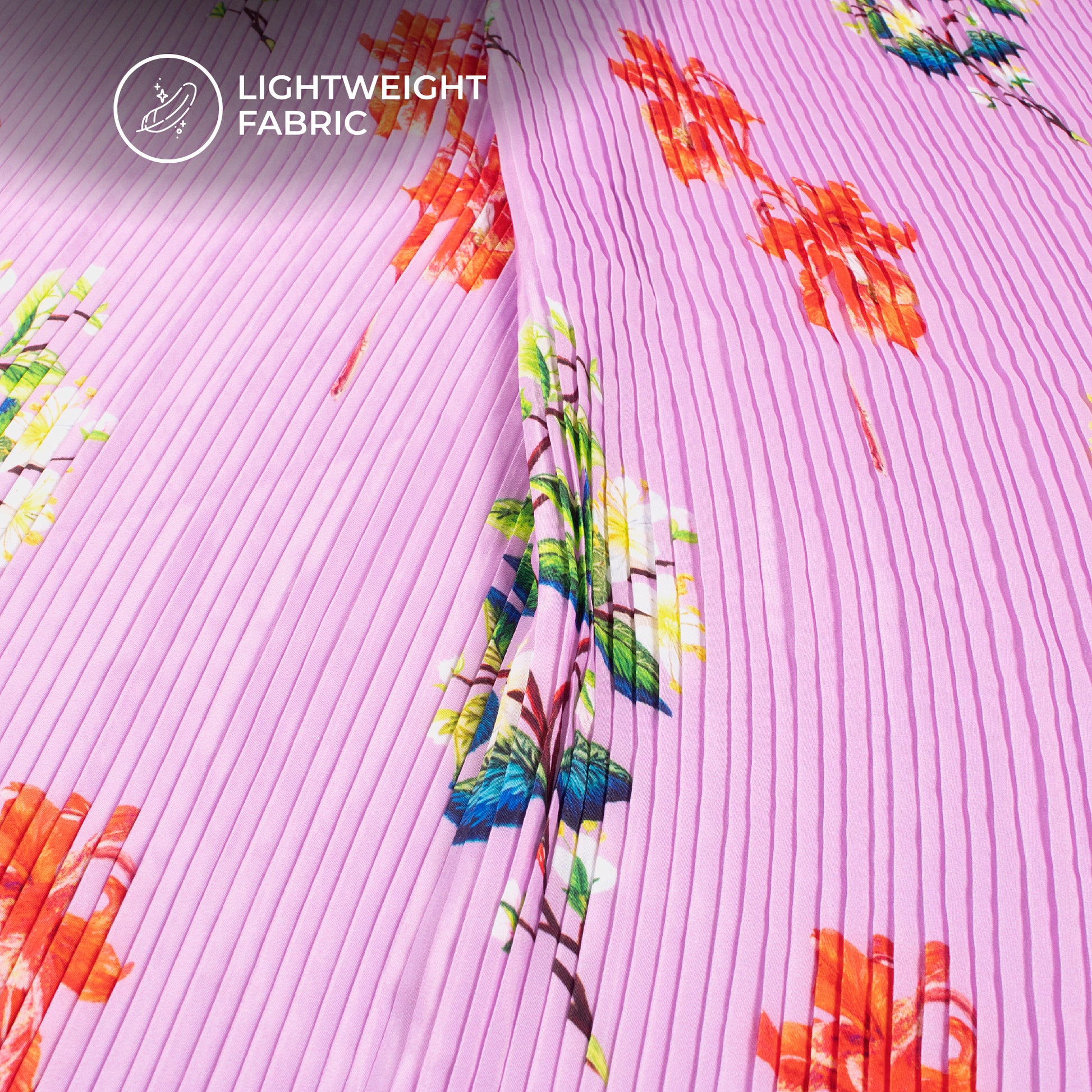 Classic Floral Pleated Digital Print Crepe Satin Fabric