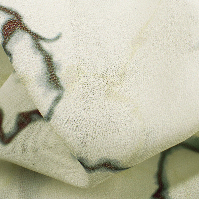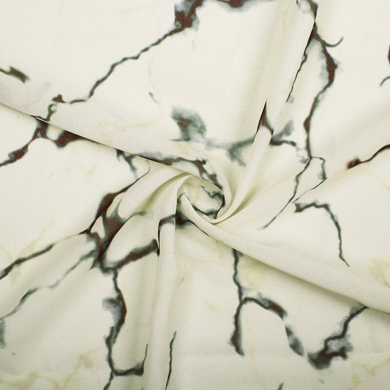 Coconut Cream And Black Abstract Pattern Digital Print Georgette Fabric
