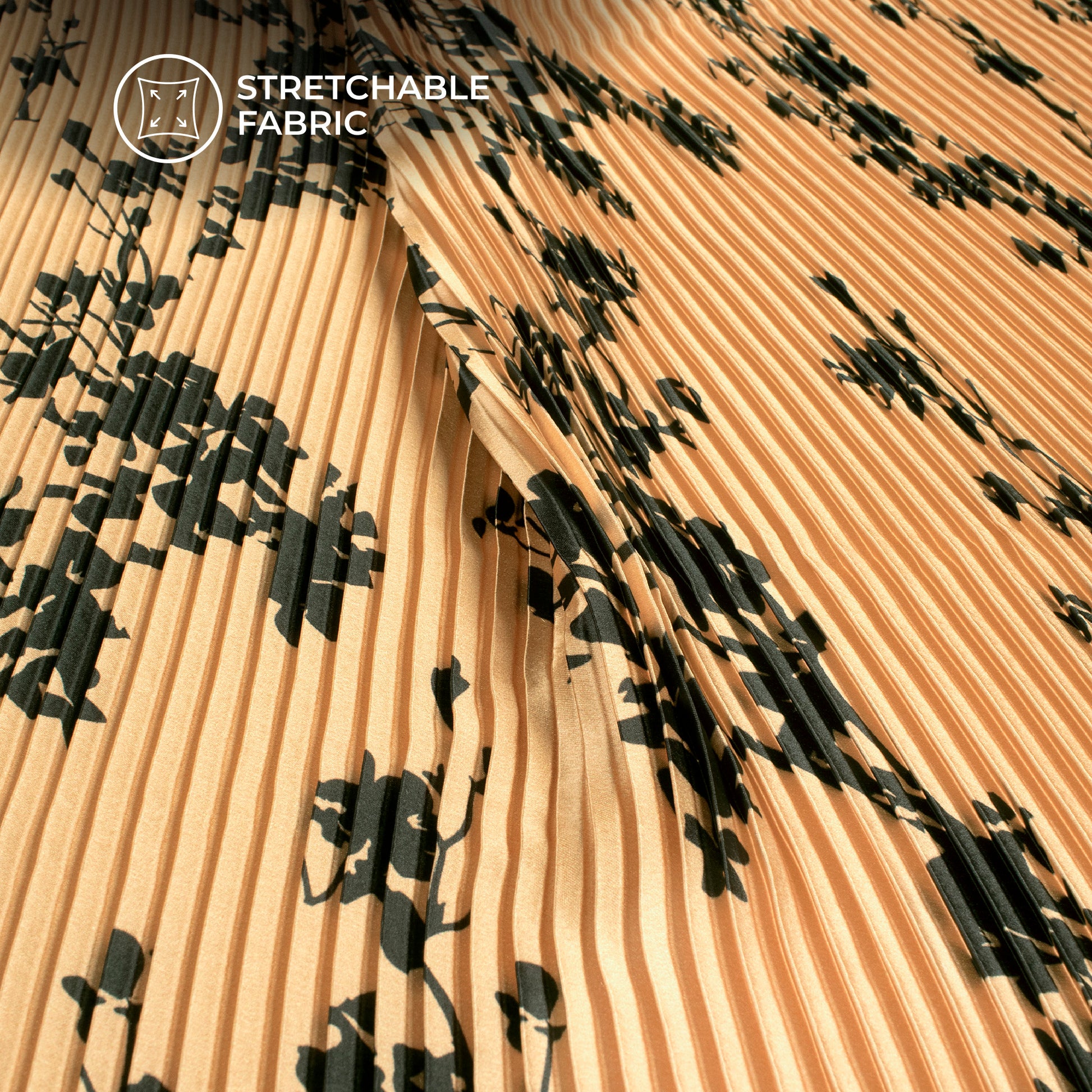 Copper Brown Floral Digital Print Japan Satin Pleated Fabric