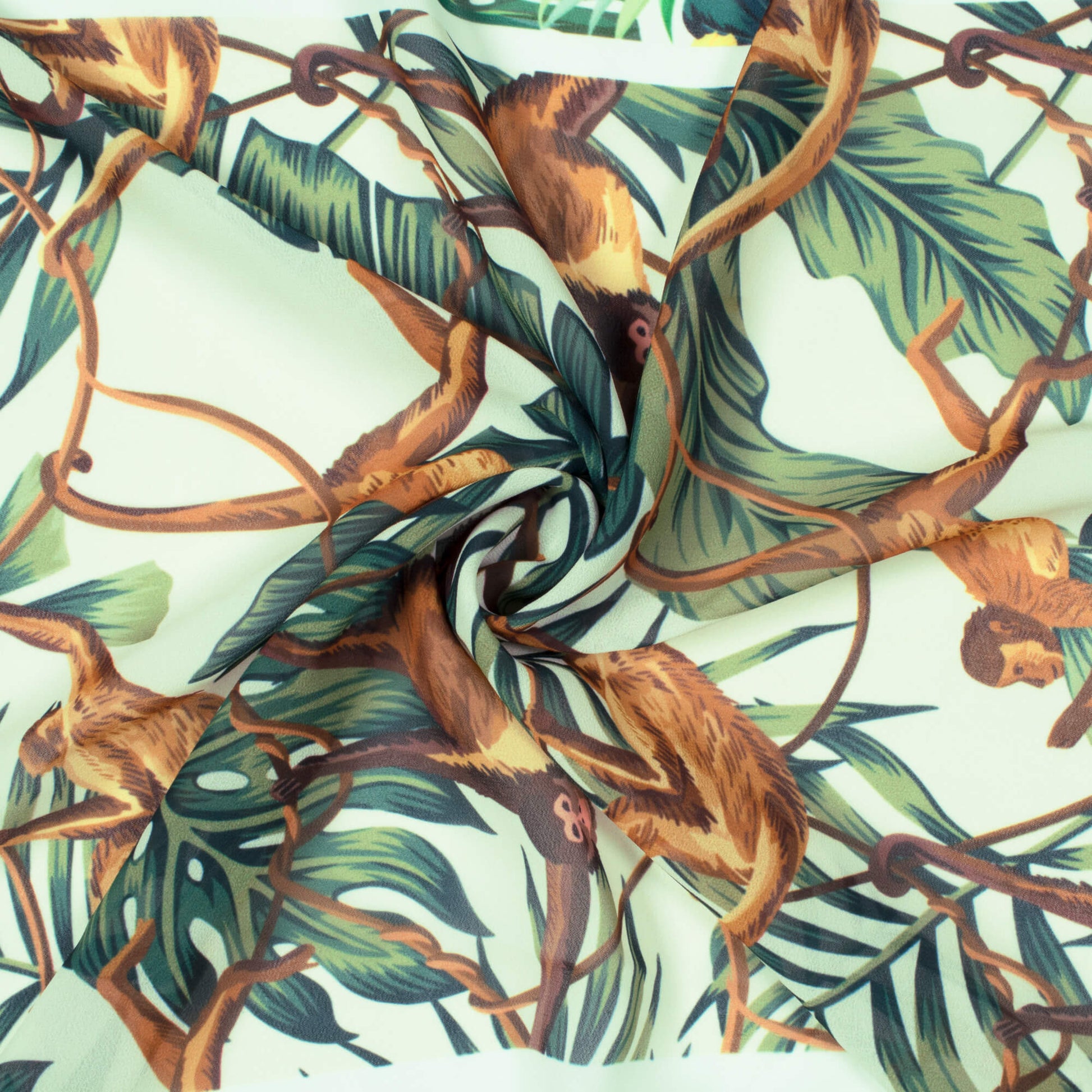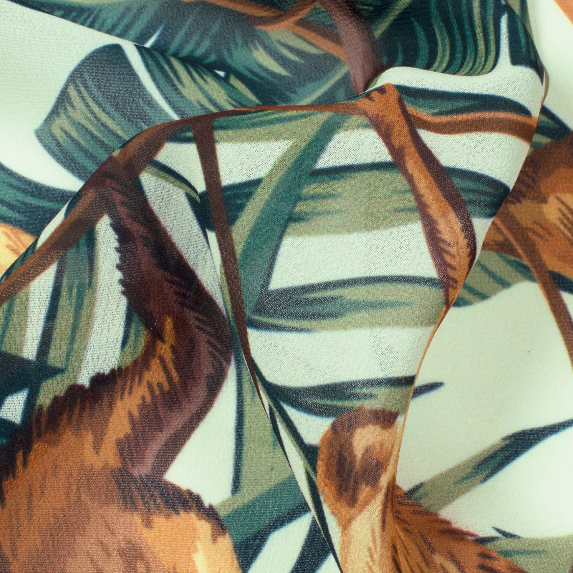Cream And Brown Tropical Pattern Digital Print Georgette Fabric