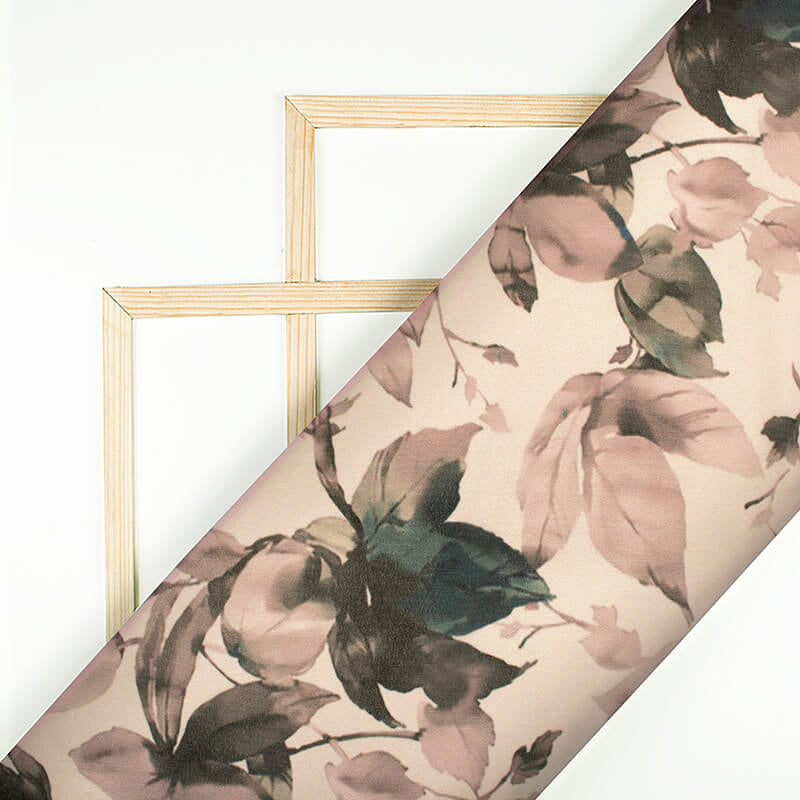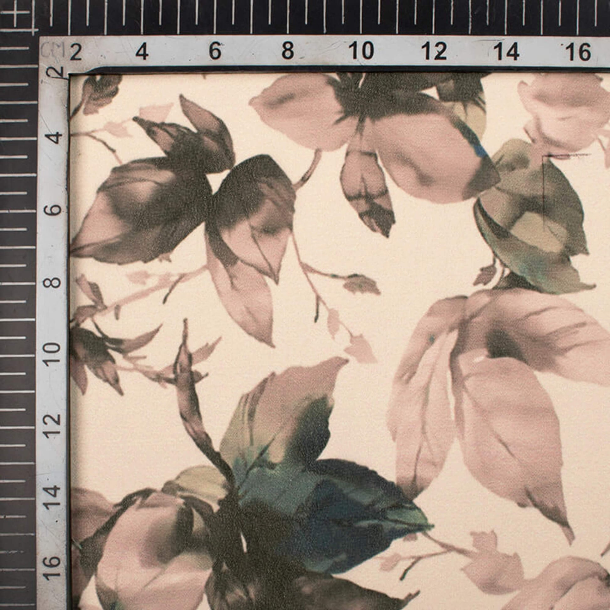 Cream And Heather Purple Floral Pattern Digital Print Georgette Fabric
