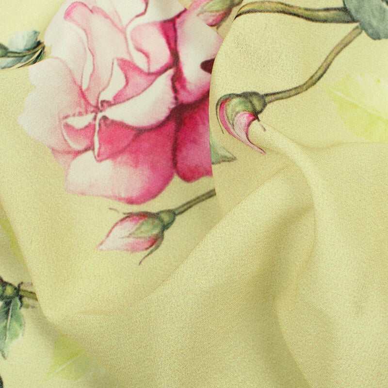 Cream And Rose Pink Floral Pattern Digital Print Georgette Fabric