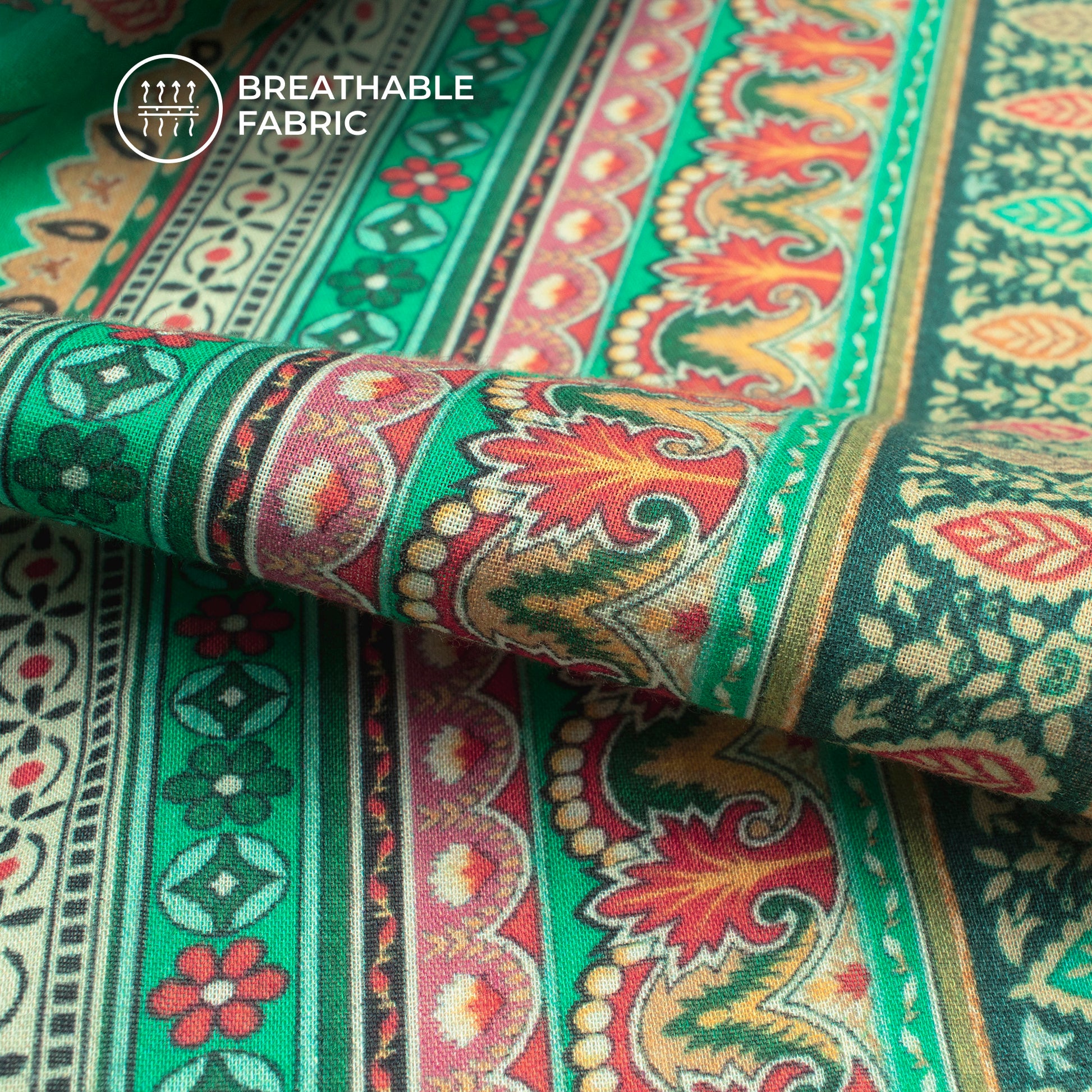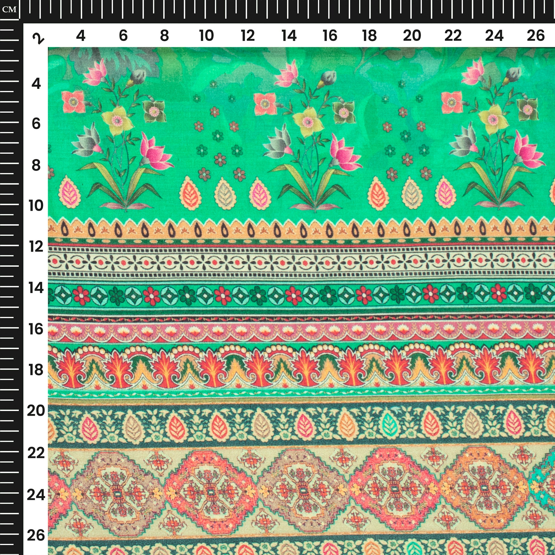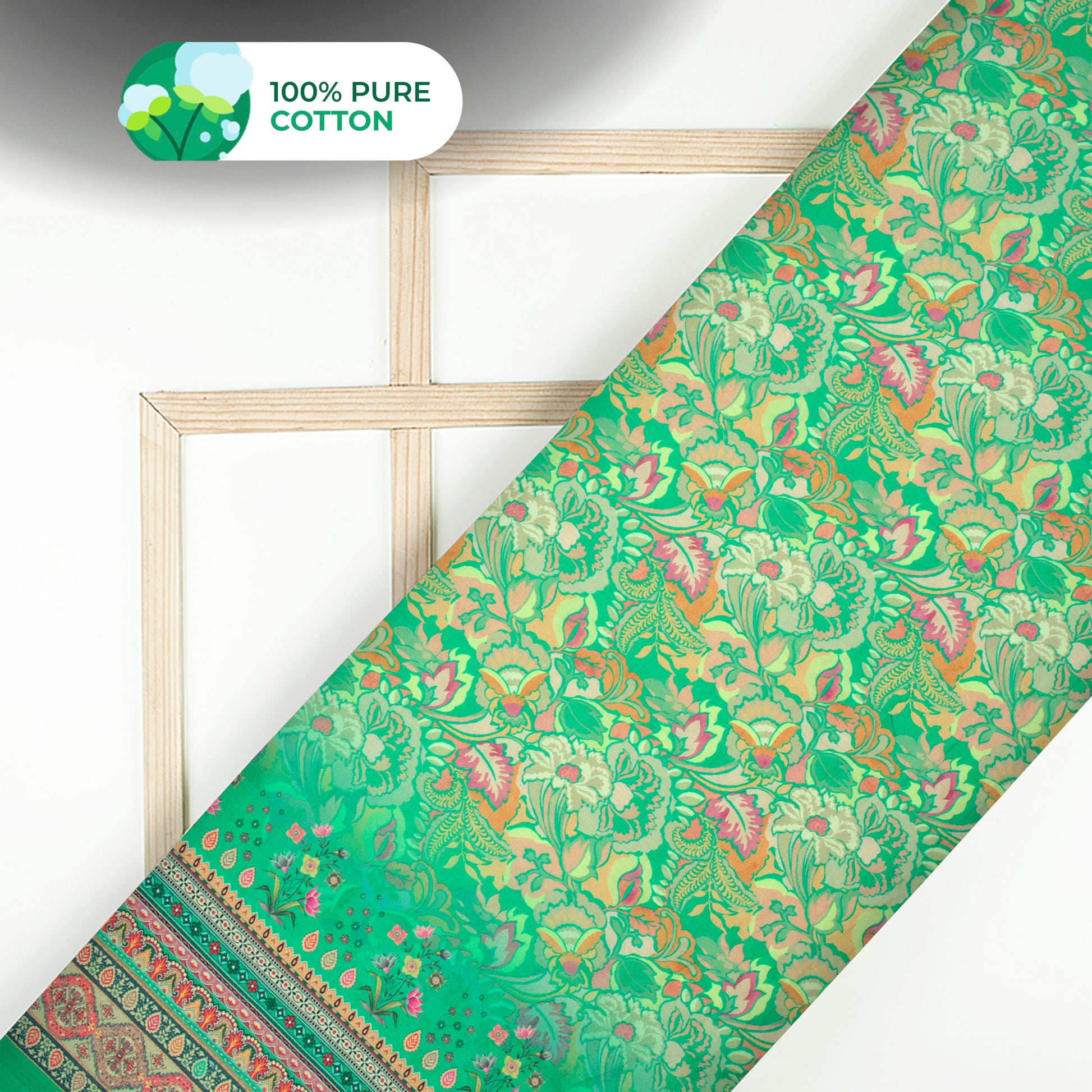 Creative Digital Print Mulmul Cotton Fabric - Floral, Designer Border