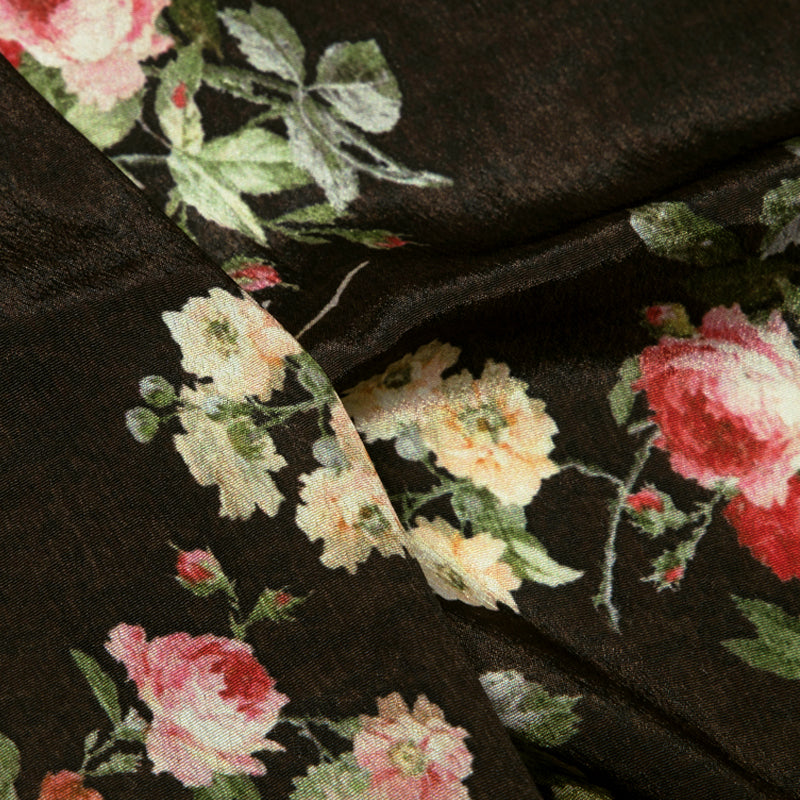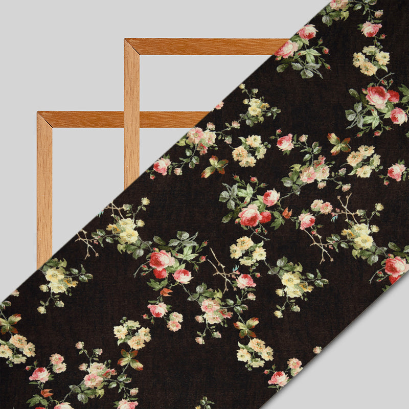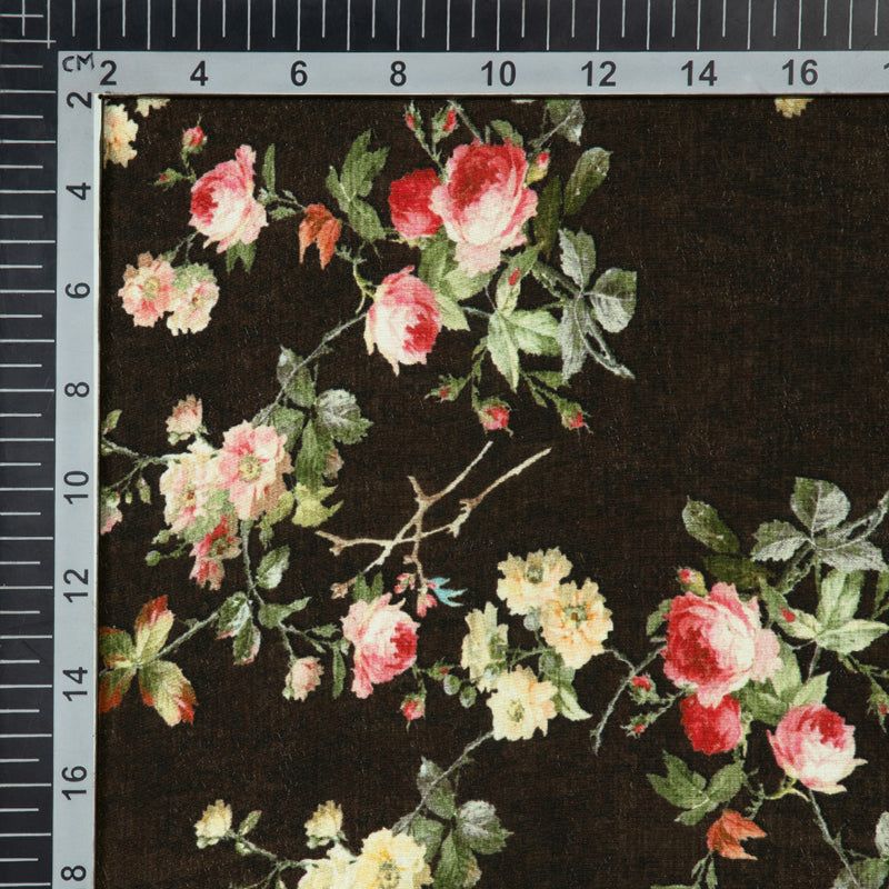 Dark Brown Floral Patten Digital Print Crepe Silk Fabric