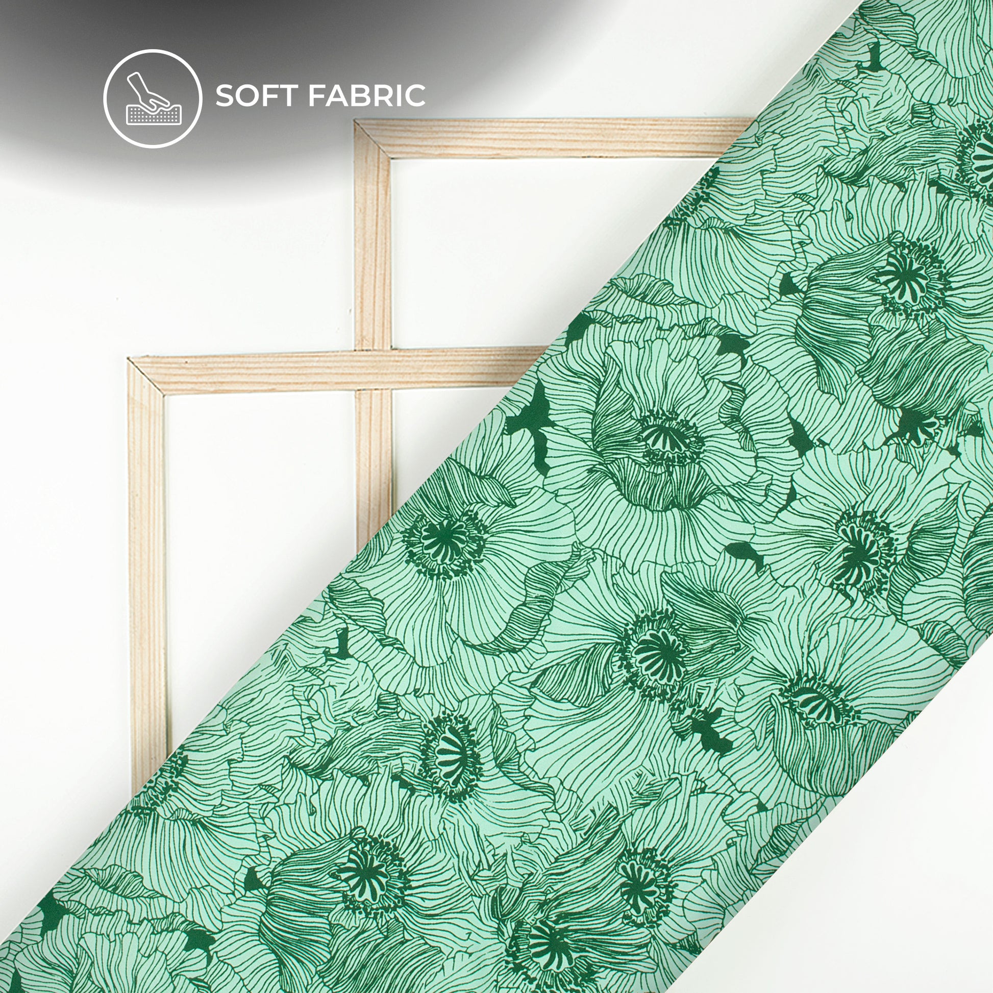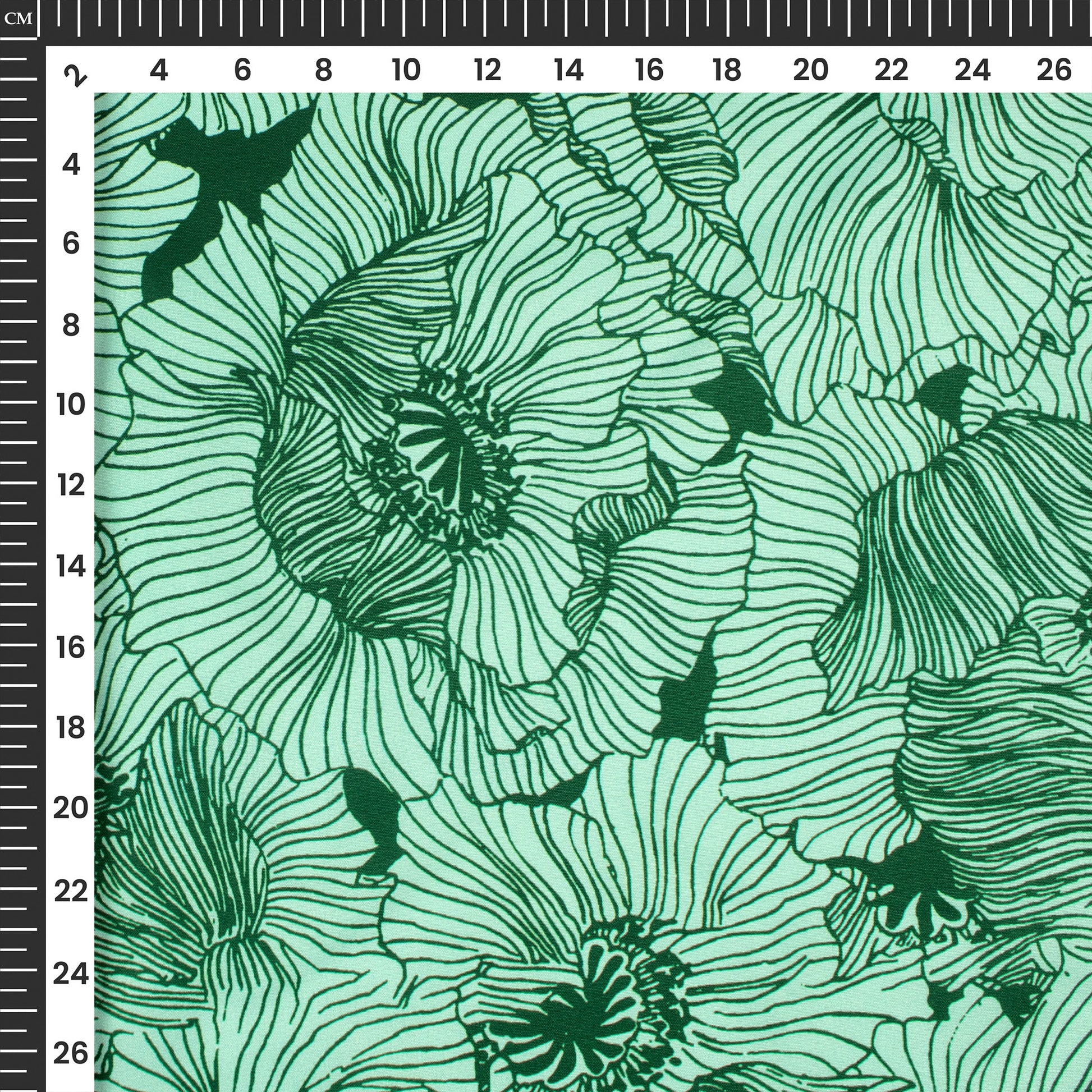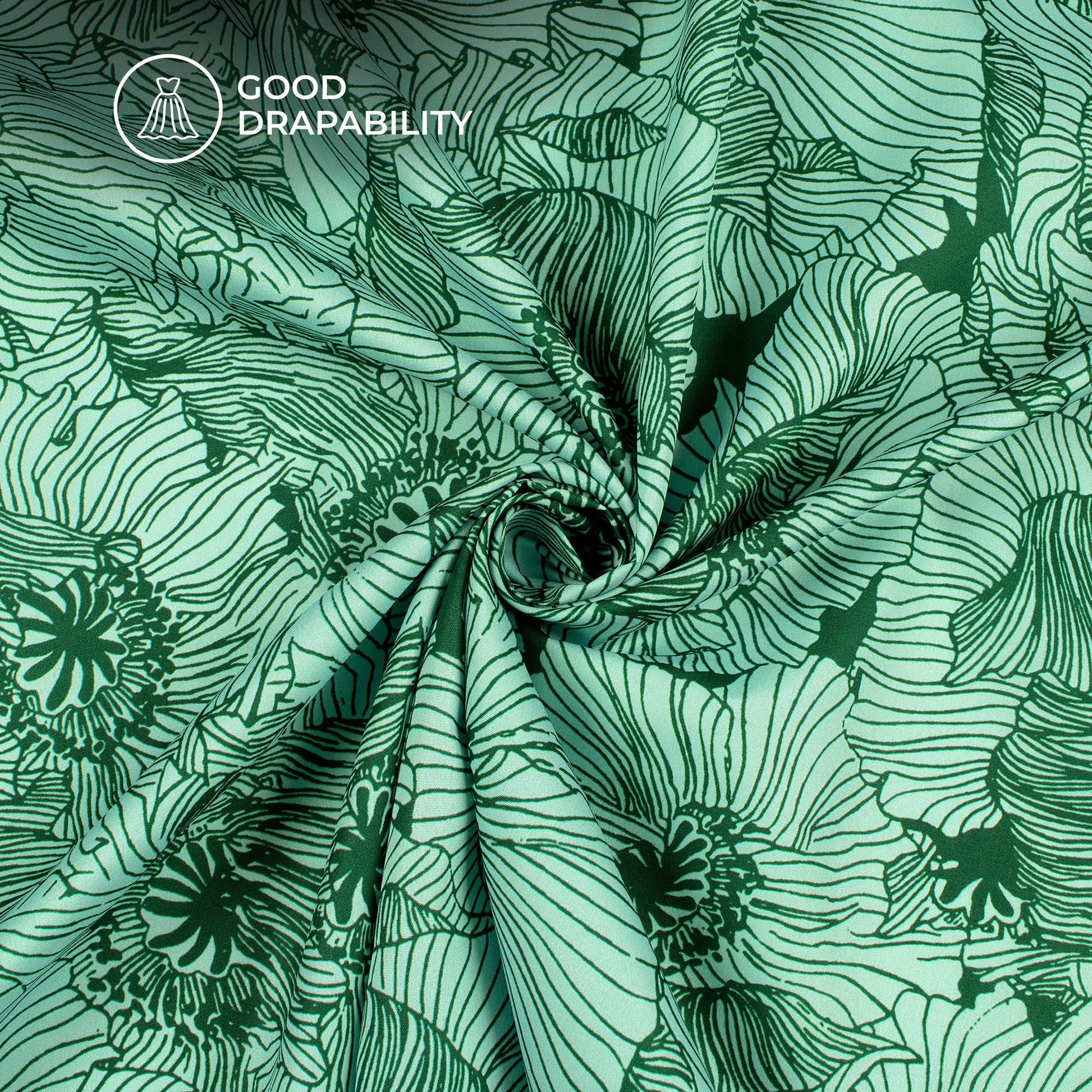 Dark Green Floral Digital Print Butter Crepe Fabric