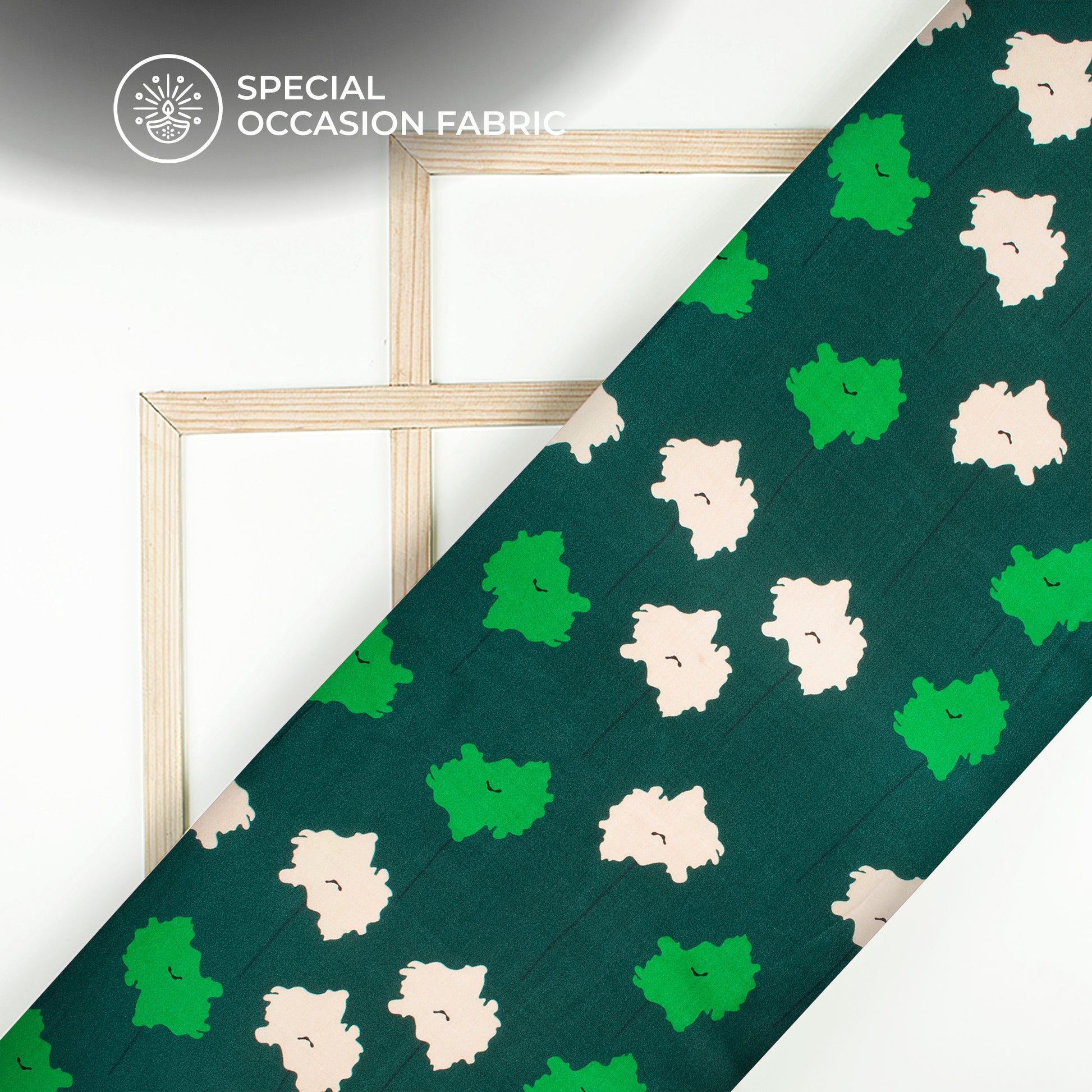 Dark Pine Green Abstract Digital Print Viscose Gaji Silk Fabric