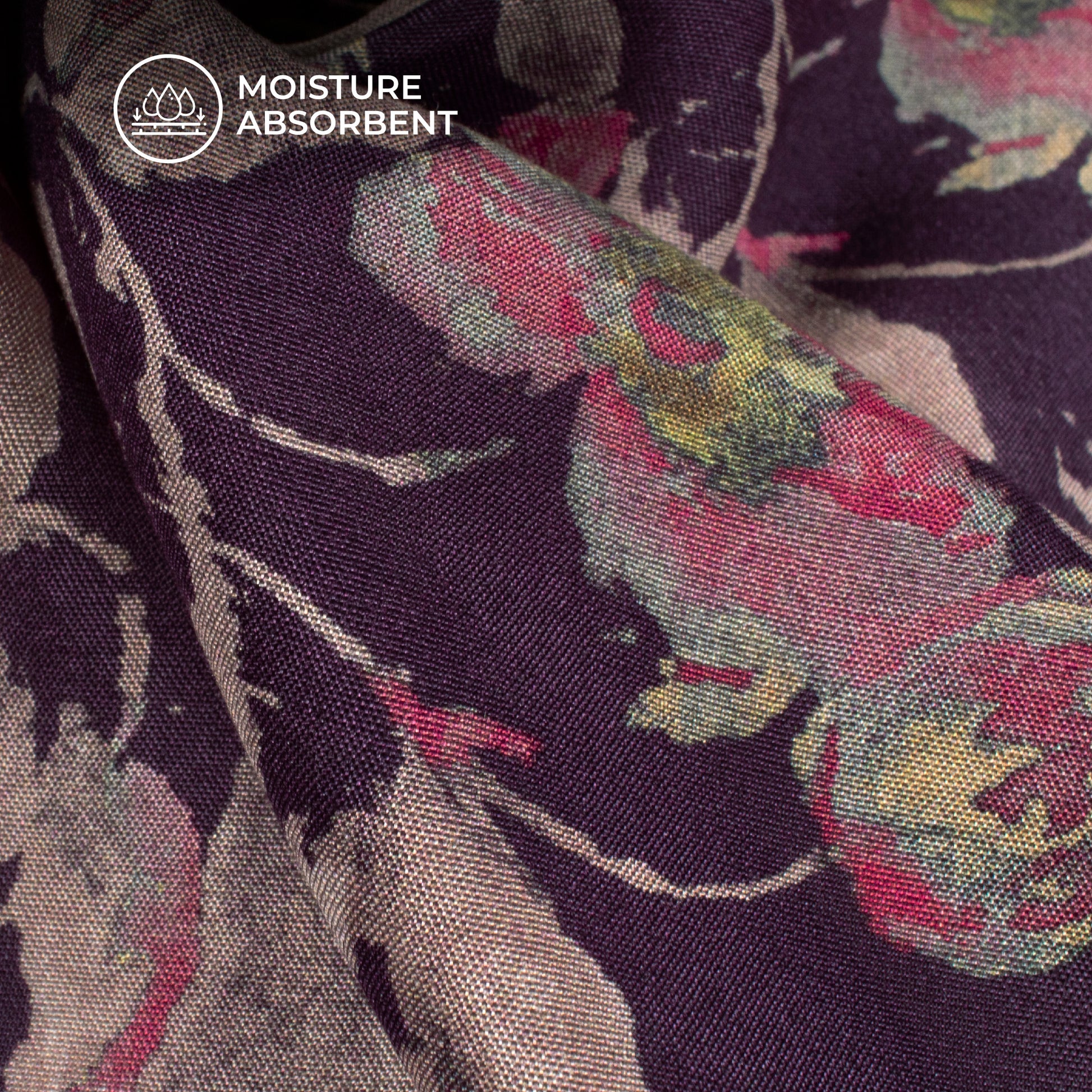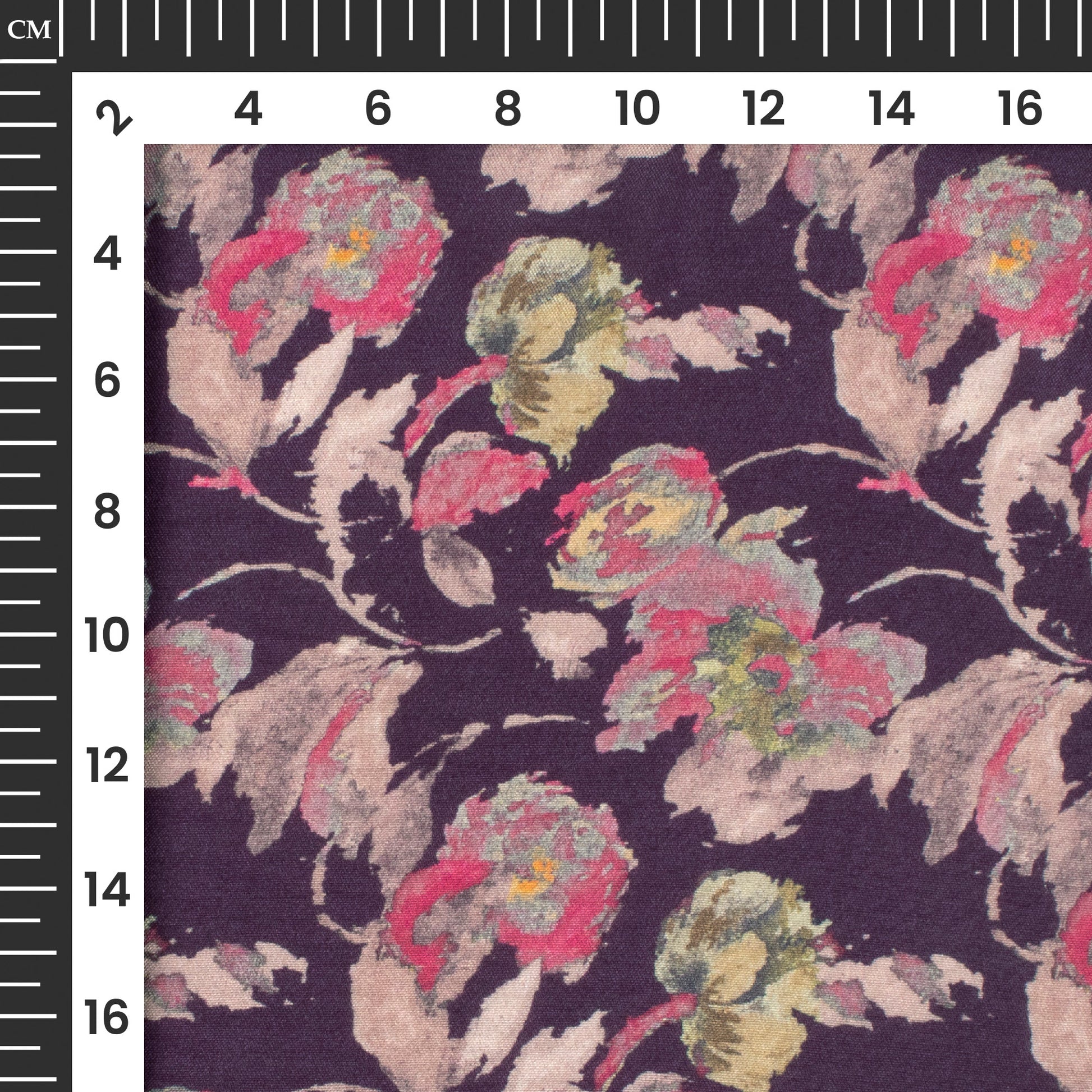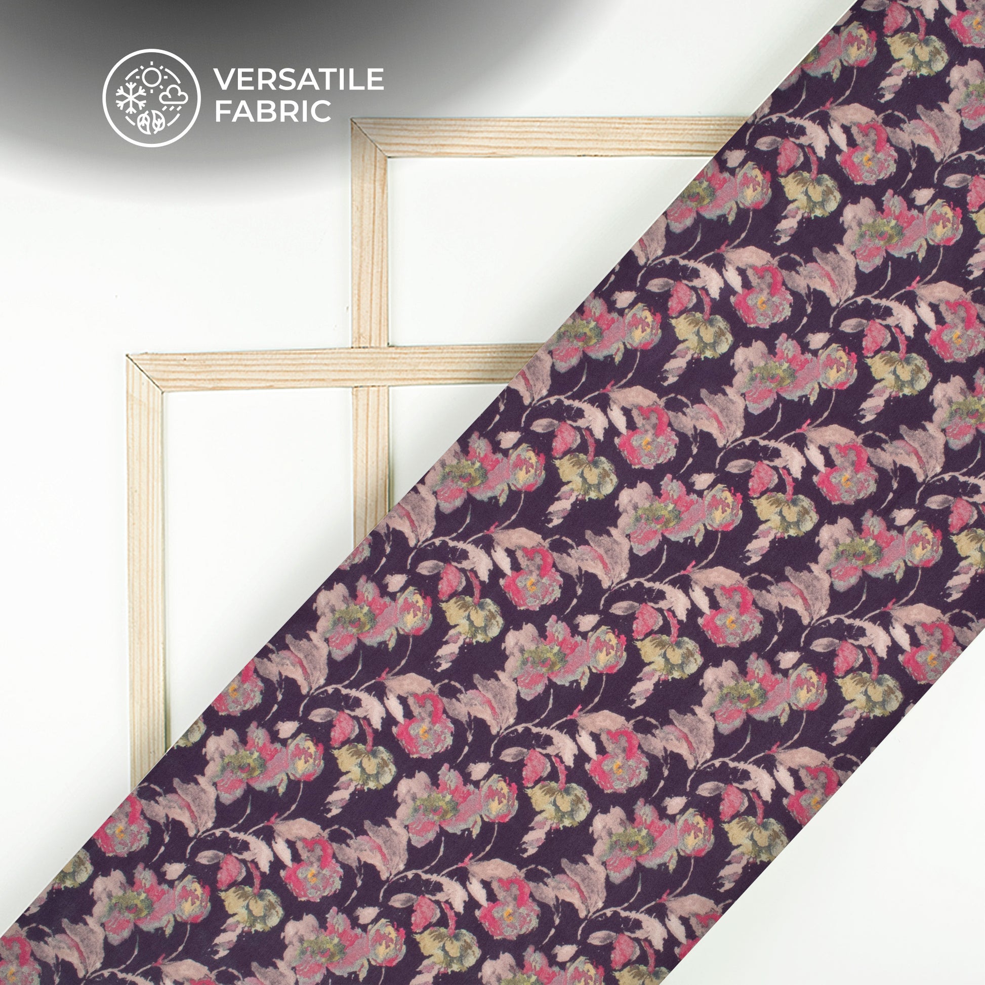 Dark Purple Floral Digital Print Viscose Muslin Fabric