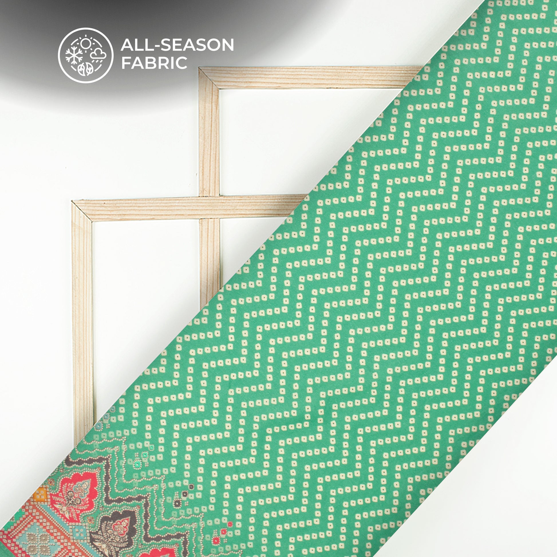 Emerald Green Bandhanii Digital Print Cotton Cambric Fabric