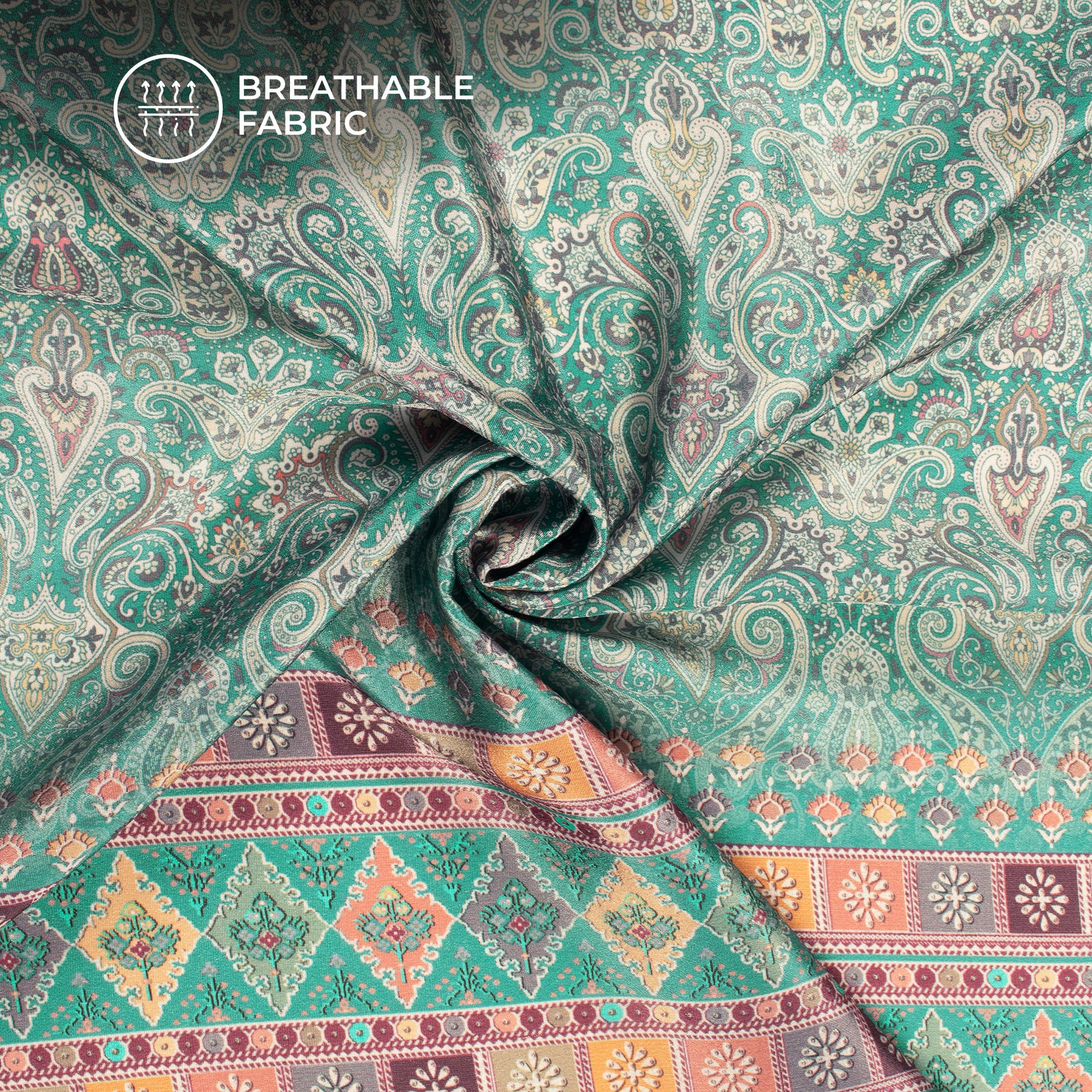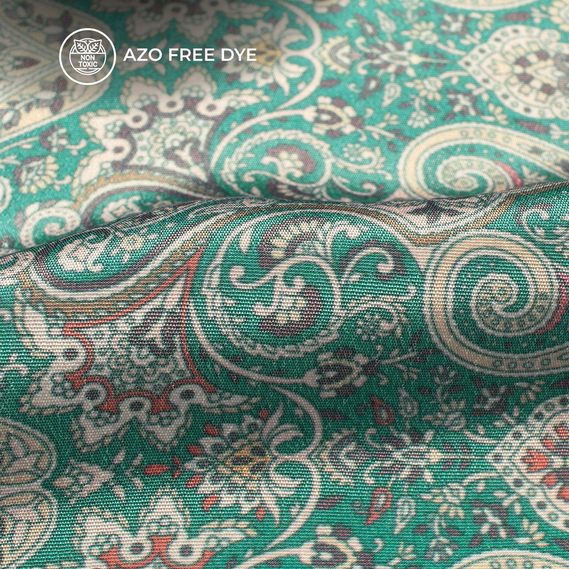 Emerald Green Paisley Digital Print Crepe Silk Fabric