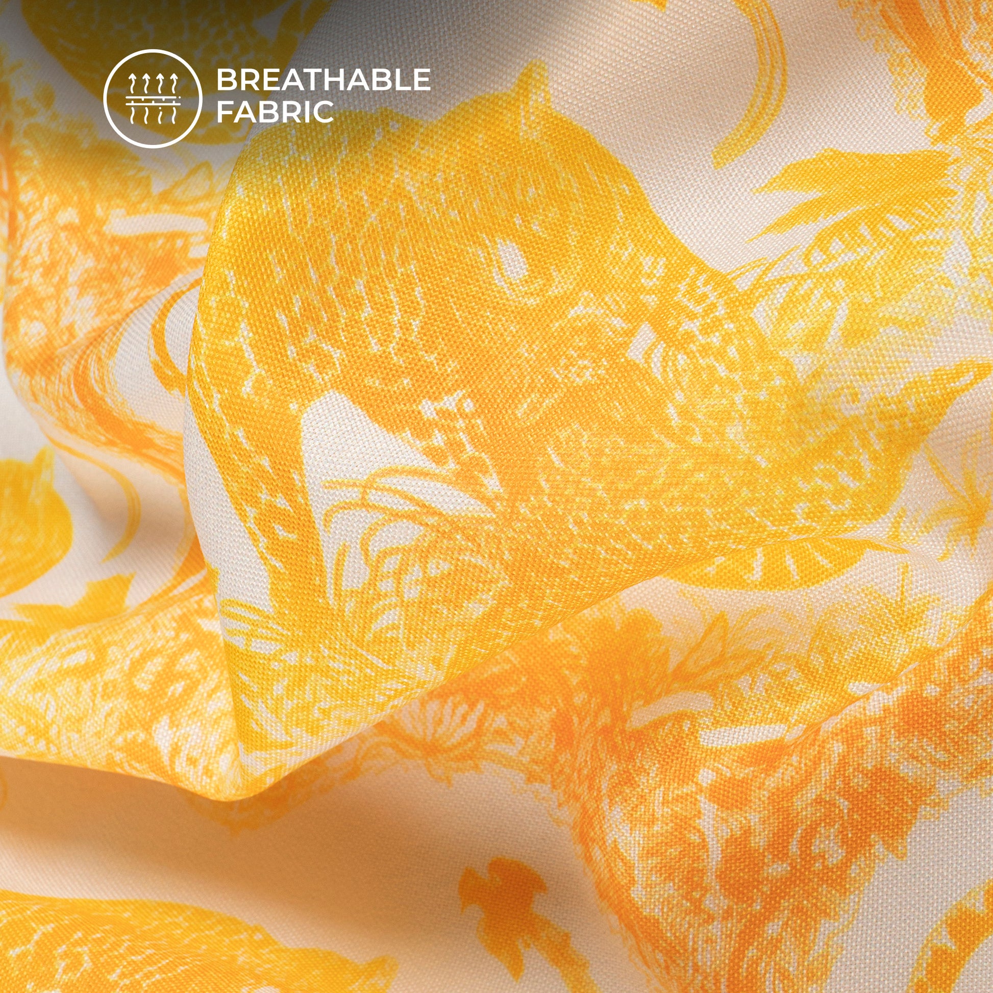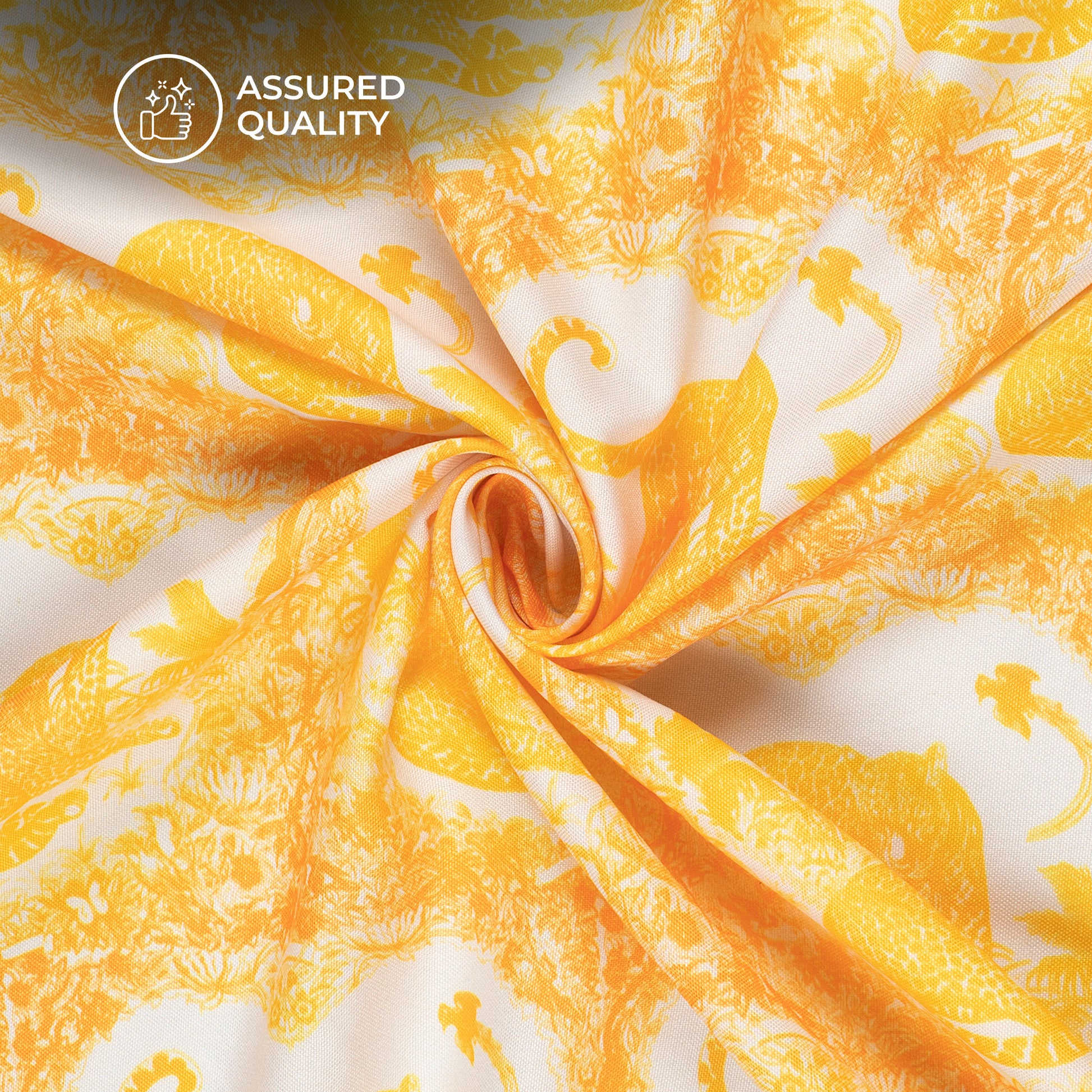 Enchanted Forest: Nature-Inspired Yellow Digital Print Rayon Fabric