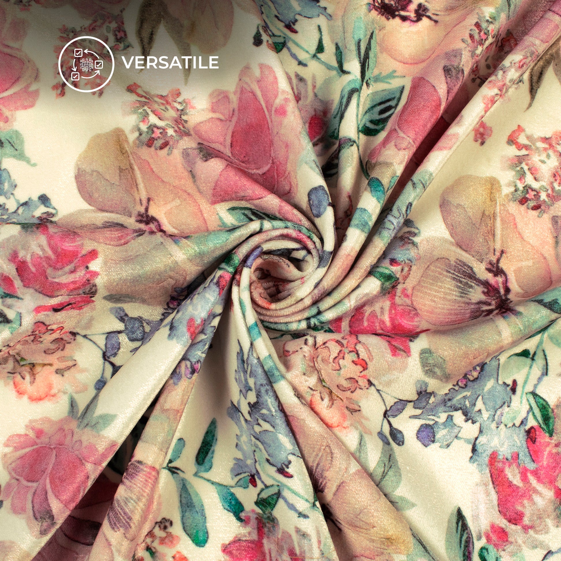 Enchanting Floral Digital Print Premium Velvet Fabric