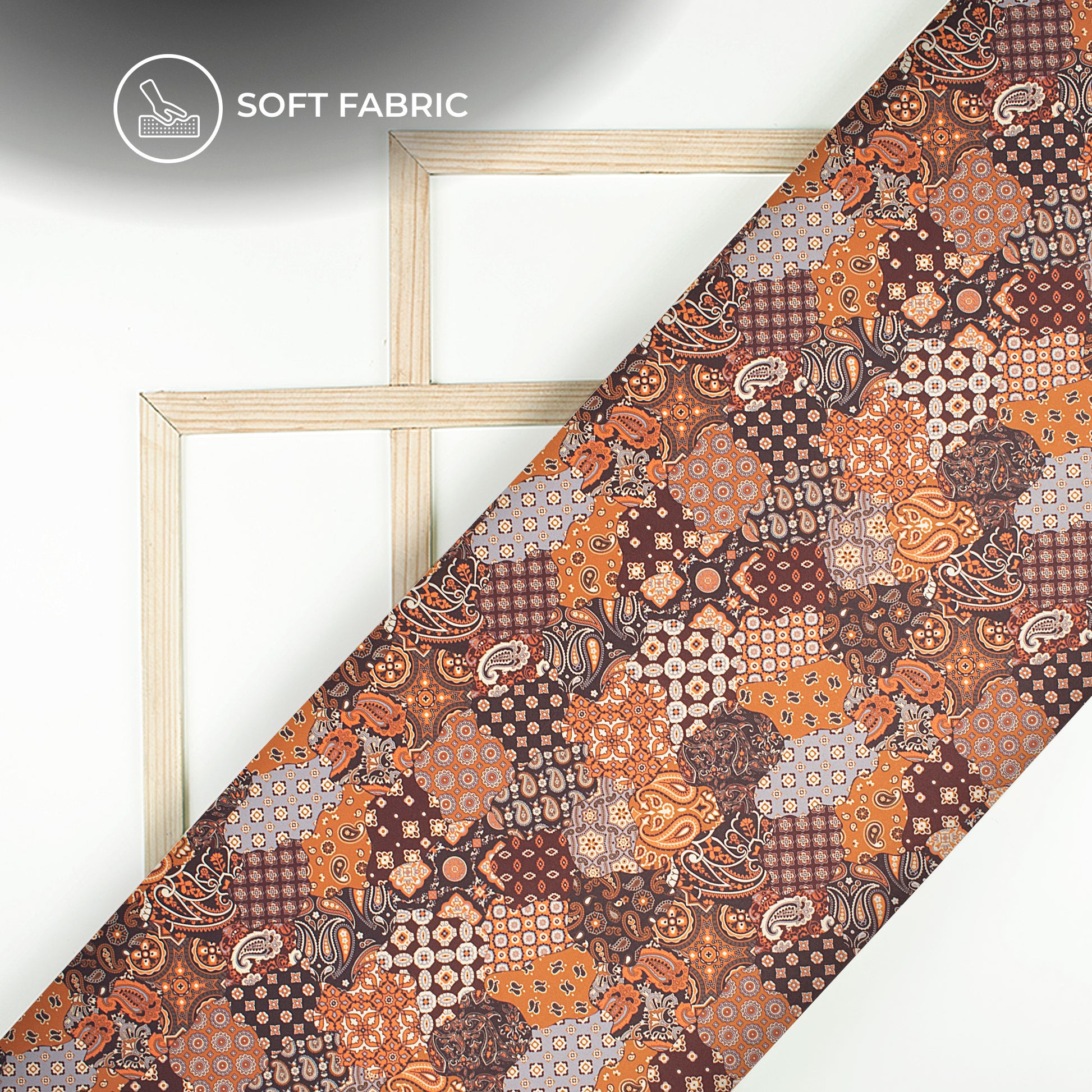 Ethnic Paisley Patchwork Digital Print Butter Crepe Fabric