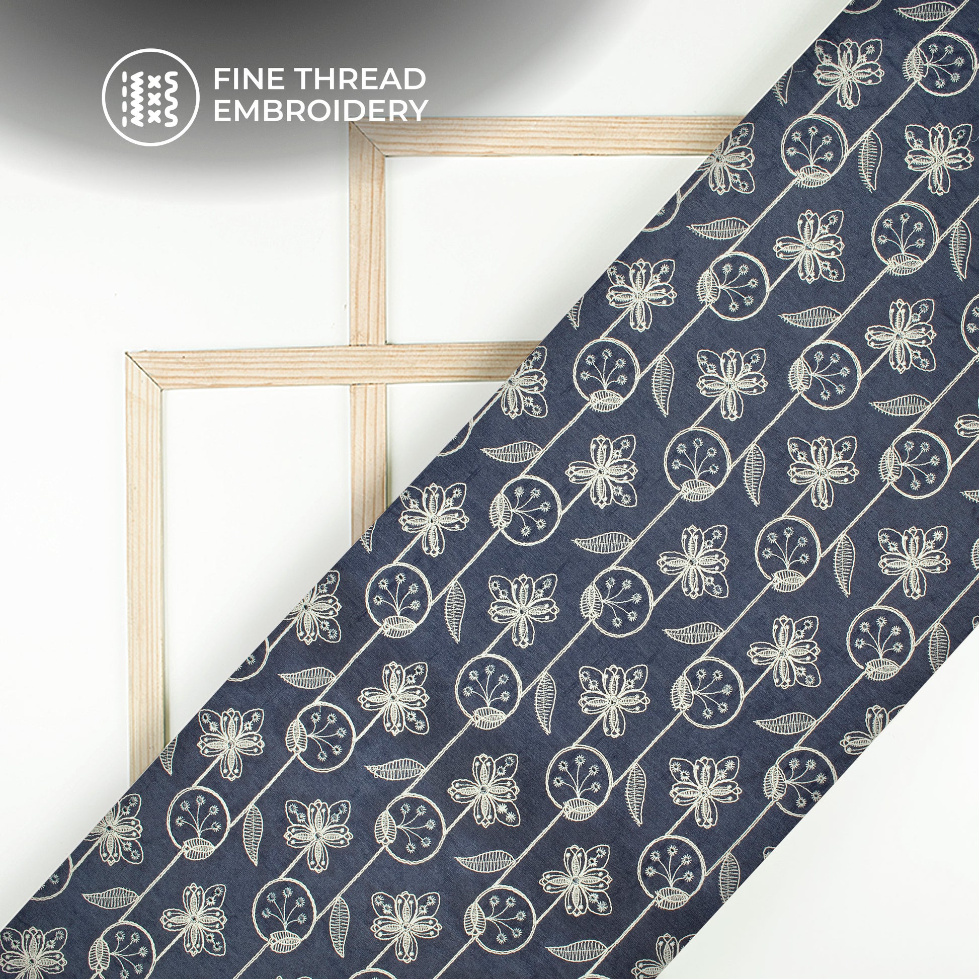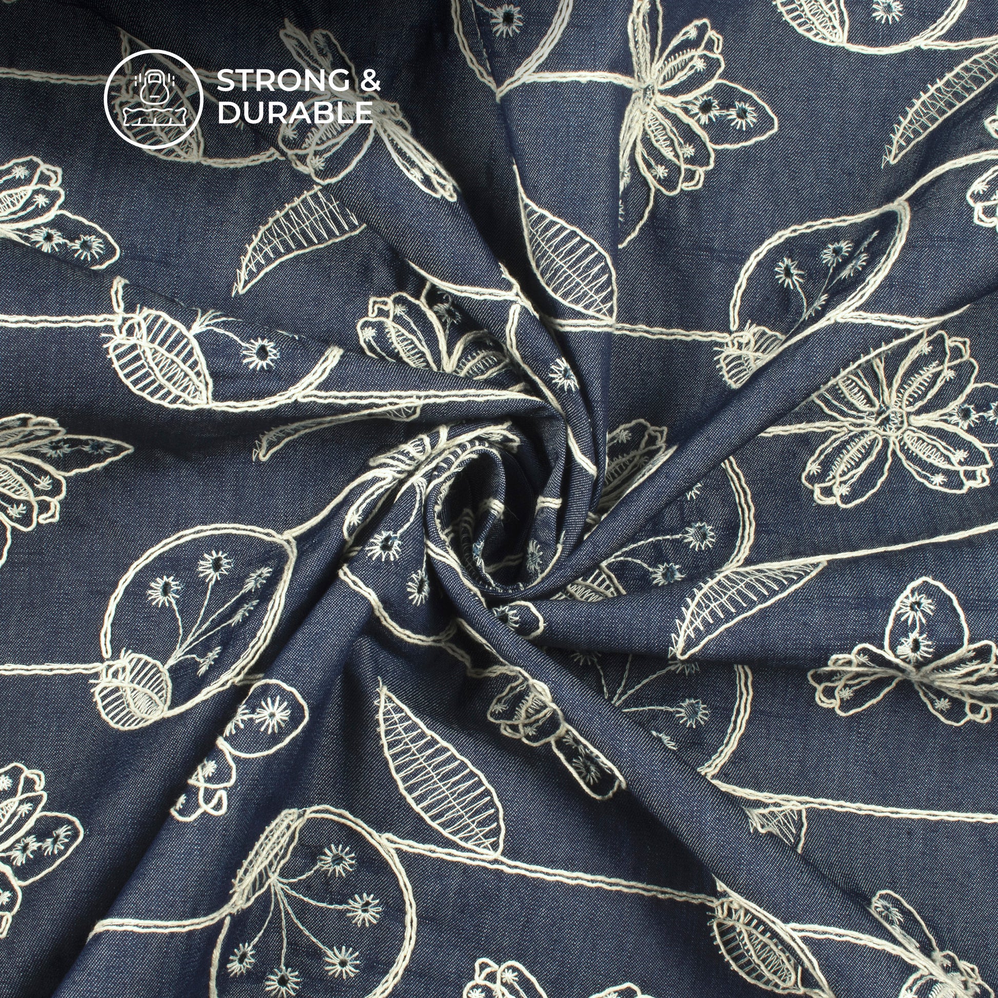 Exclusive Floral Embroidery Work Denim Fabric