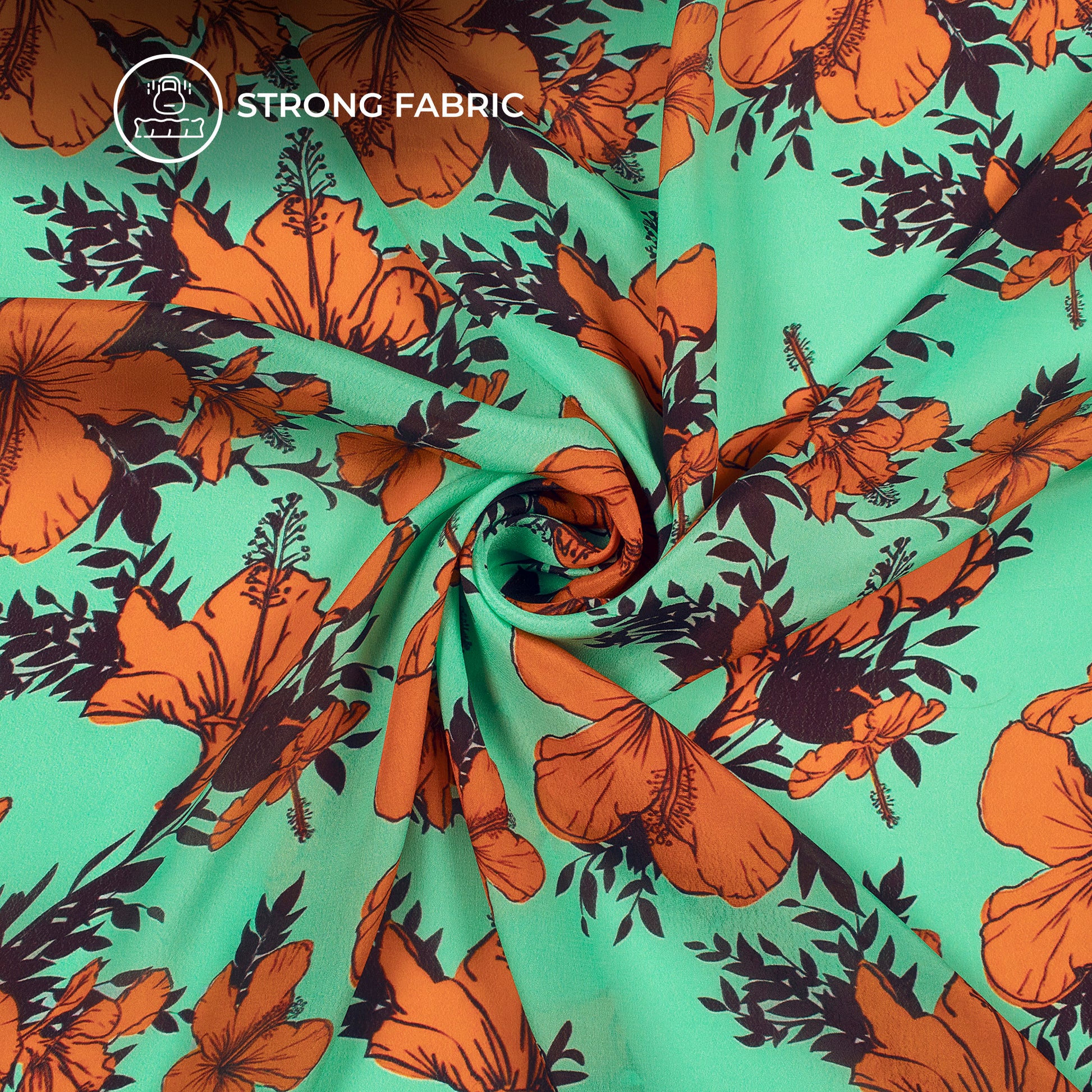 Fern Green Floral Digital Print Viscose Natural Crepe Fabric