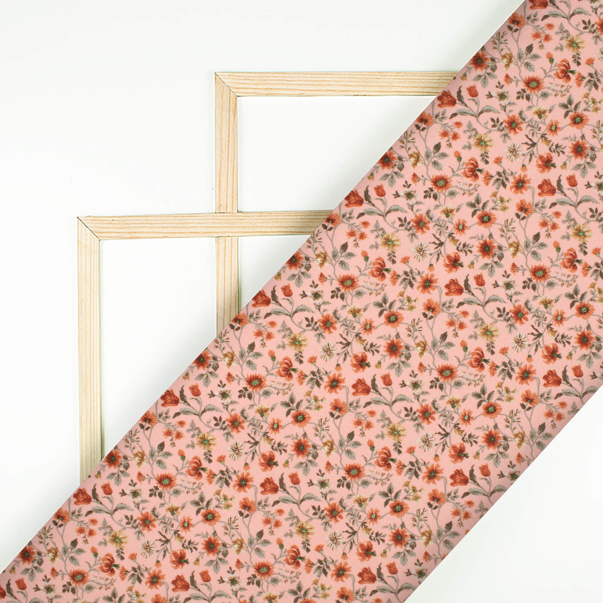 Flamingo Pink And Red Floral Pattern Digital Print Crepe Silk Fabric