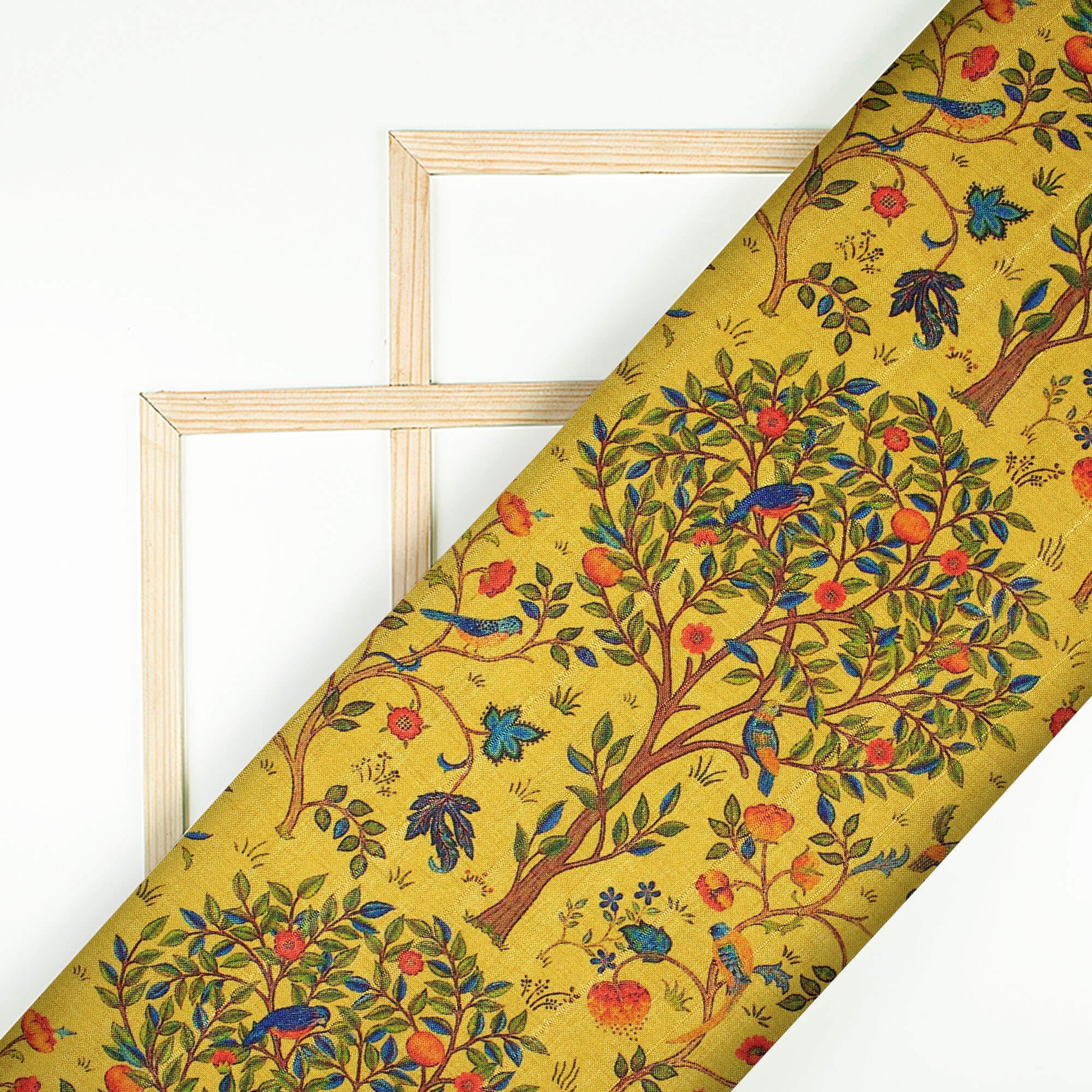 Fleaxen Yellow And Orange Madhuvanii Pattern Digital Print Art Tusser Silk Fabric