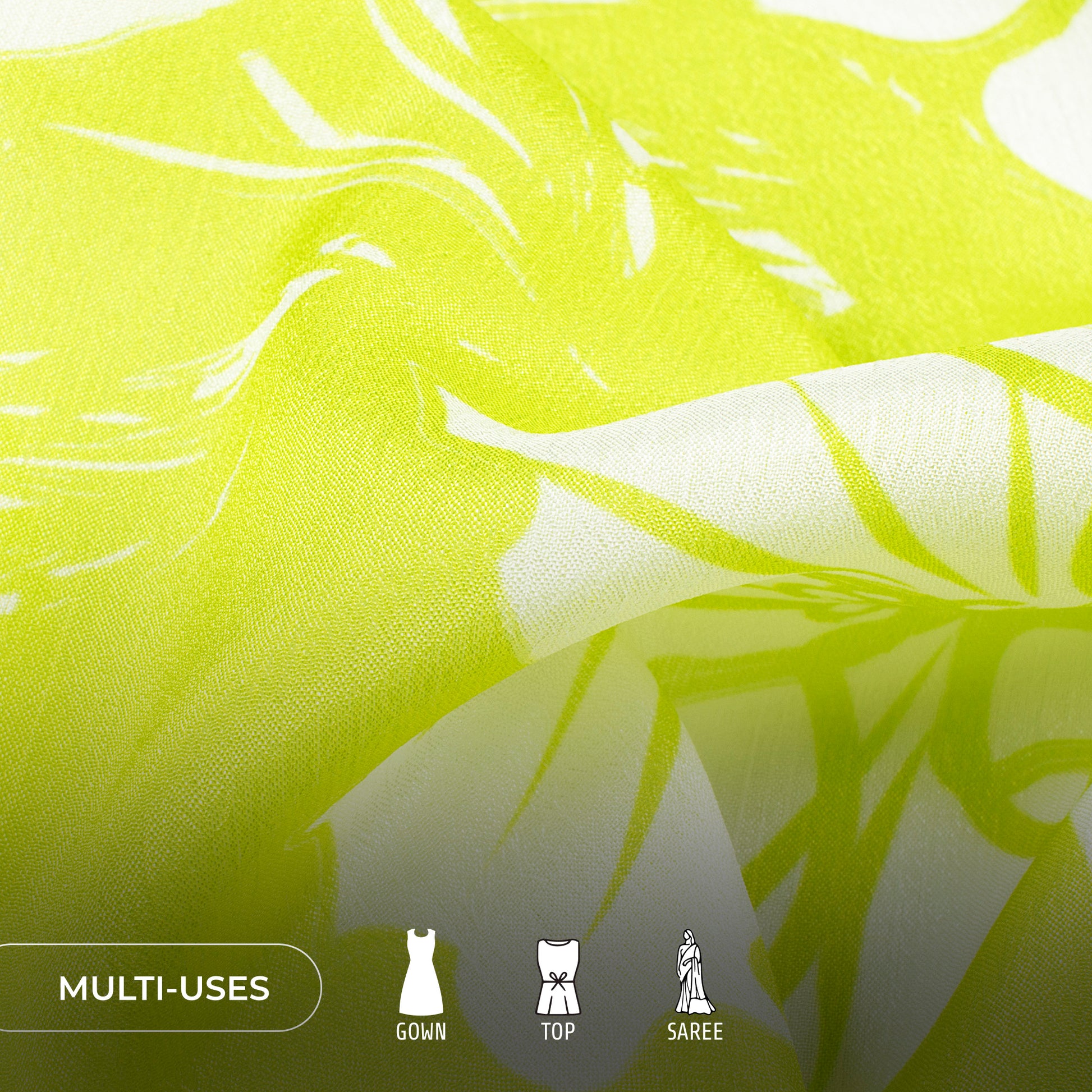 Chinnon Chiffon fabric is a strong and sheer fabric that is suitable for making everyday outfits. The Eco-friendly prints on this fabric make it a must-have in your wardrobe. The fabric is lightweight and has a great drapability, keeping you comfortable all day long. Carrying a subtle sheen & flowy fall, Chinnon Chiffon fabric is suitable for all designing flings, be it a gown, skirt, dress, lehenga, saree, & more.