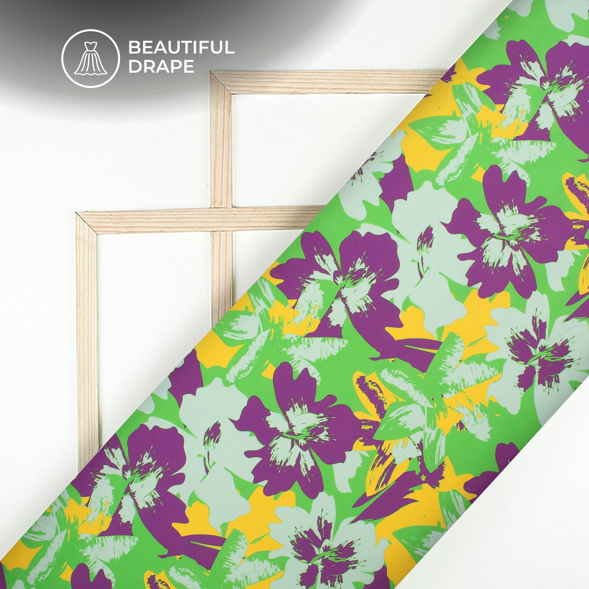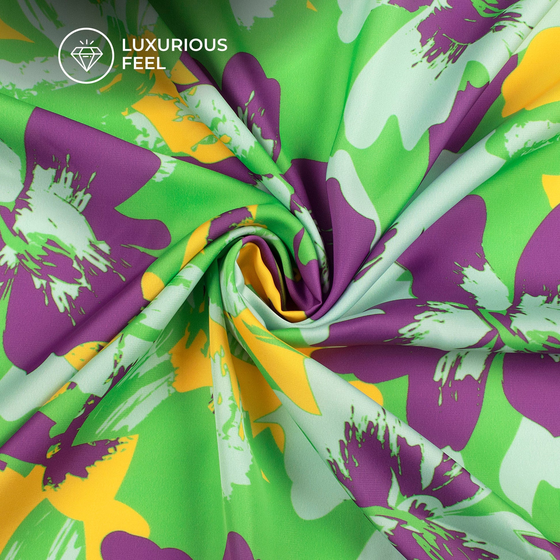 Floral Fusion: Graceful Digital Print Imported Satin Fabric