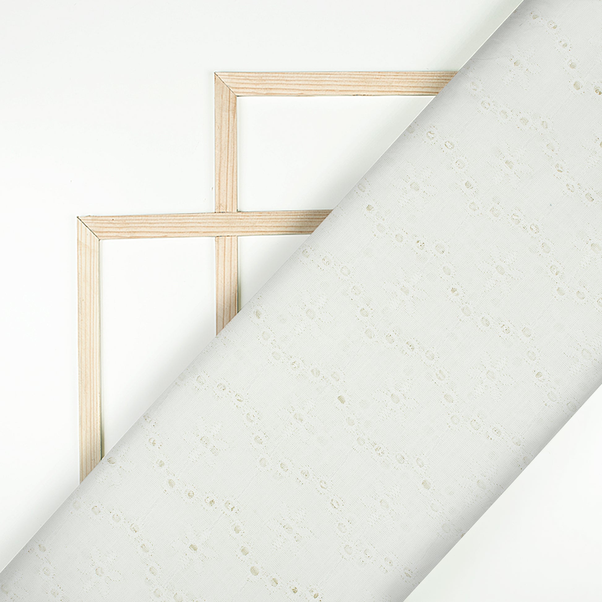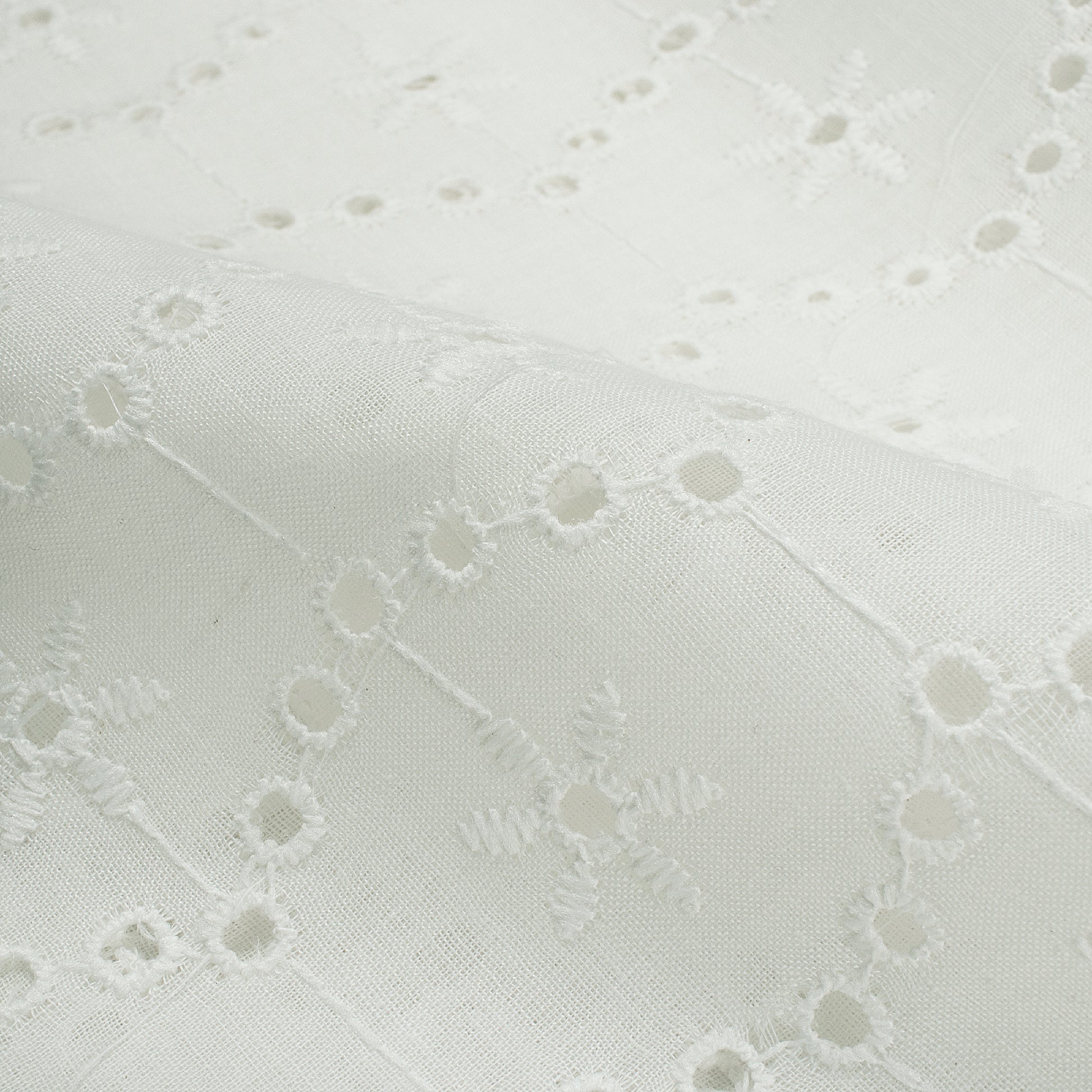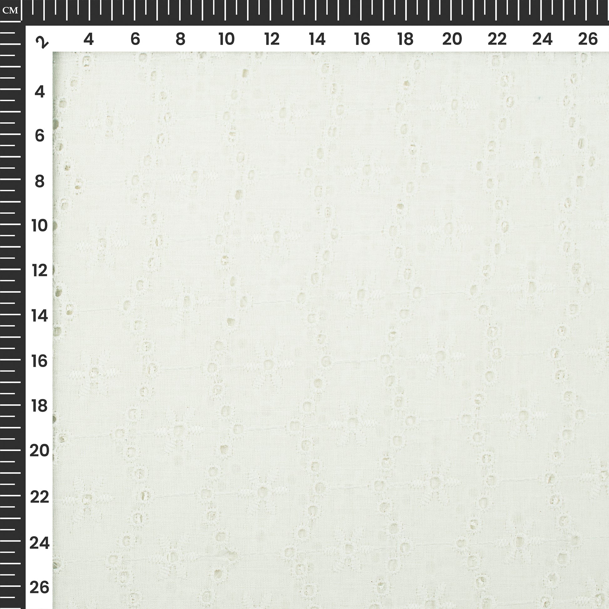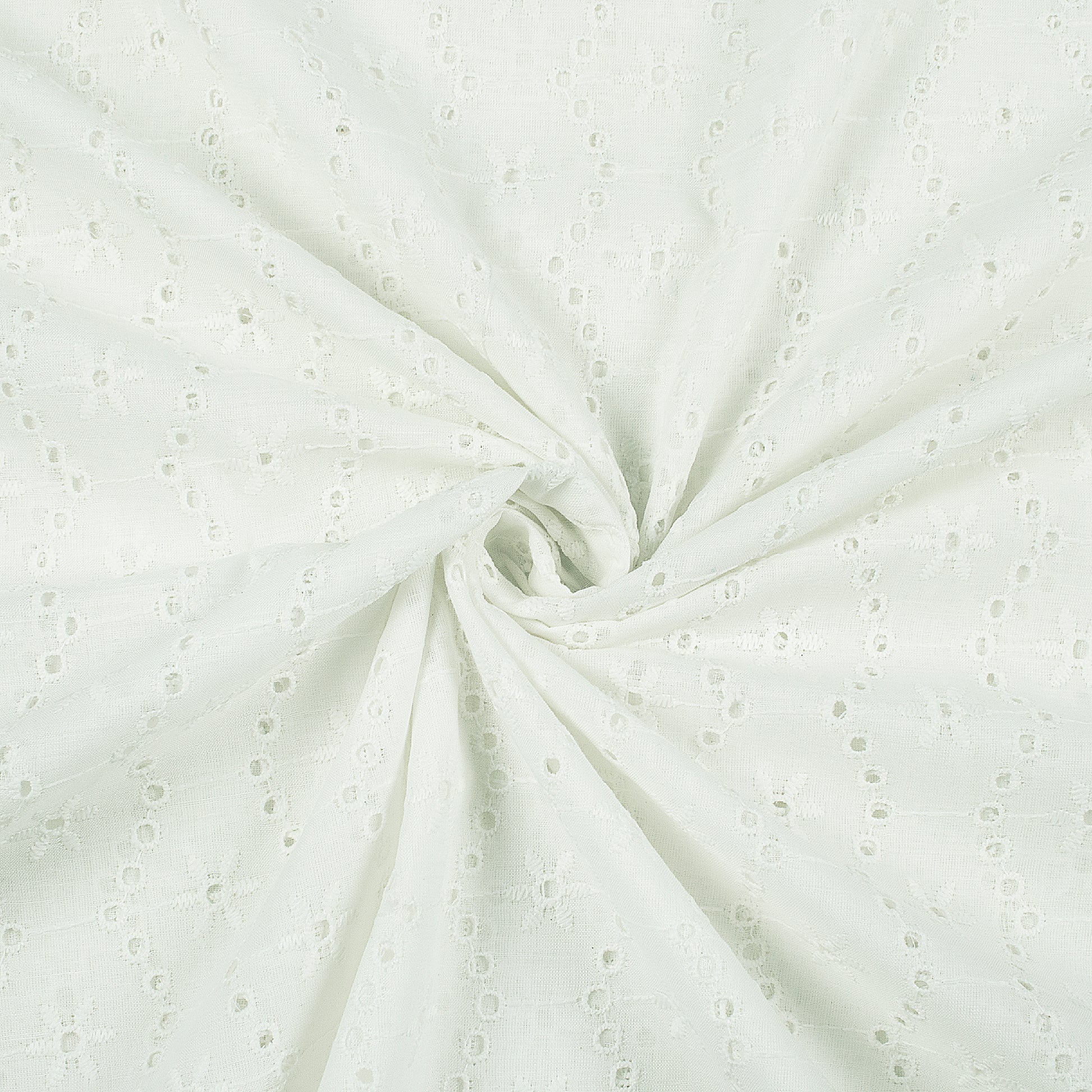 Floral White Premium Schiffli Embroidery Dyeable Cotton Fabric (Width 52 Inches)