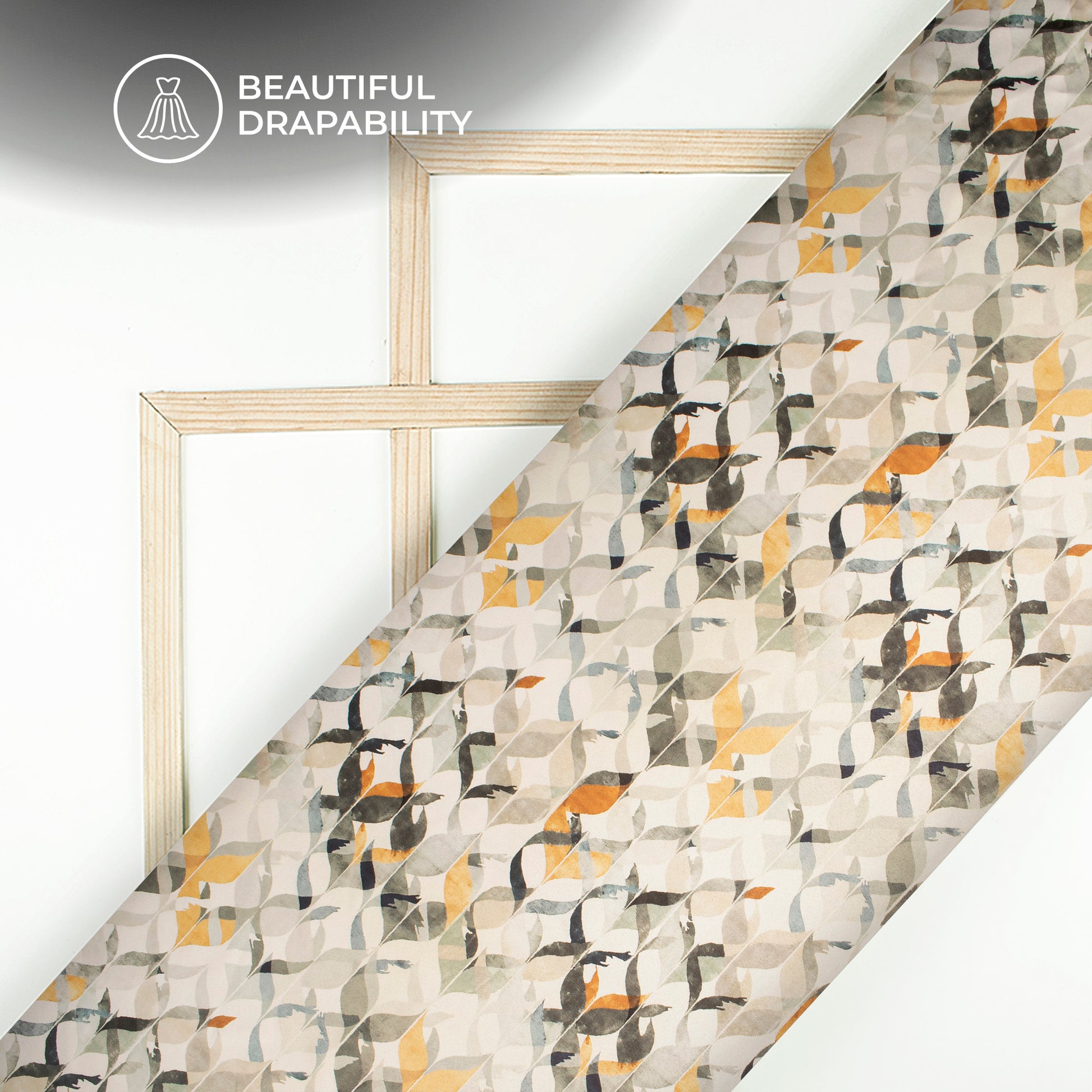 Forest Green Geometric Digital Print Charmeuse Satin Fabric (Width 58 Inches)