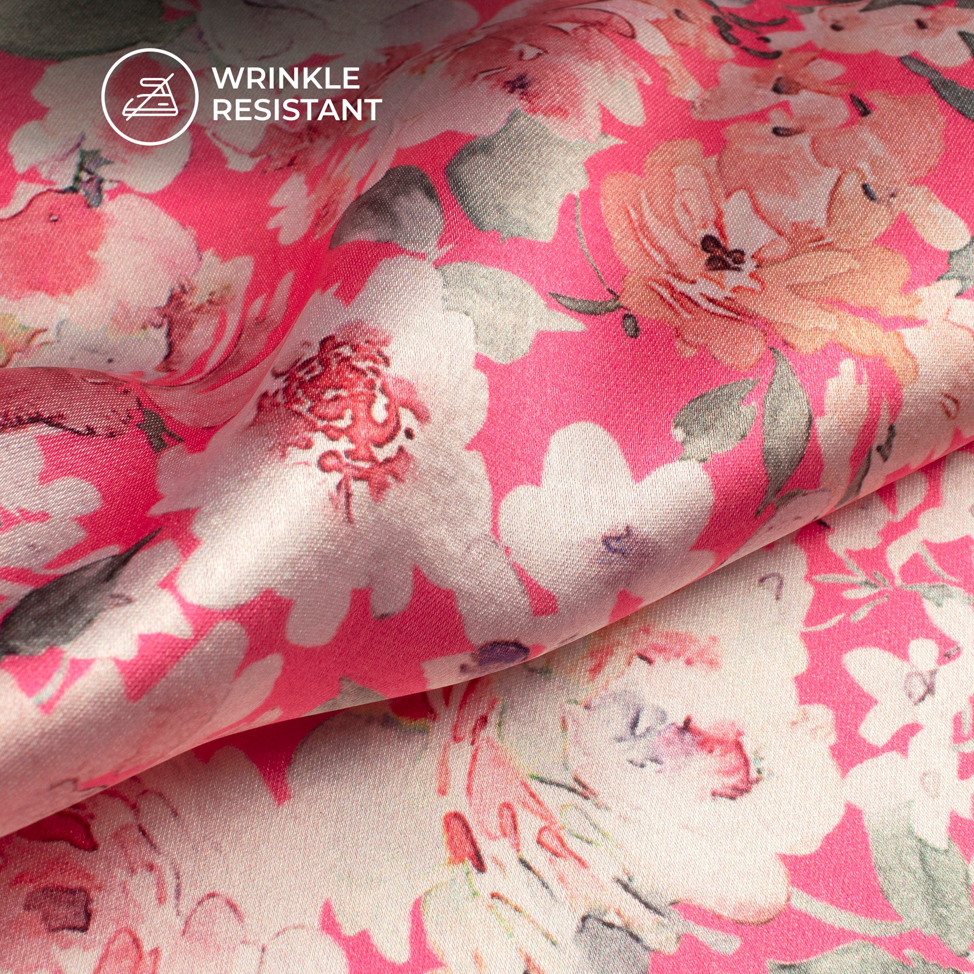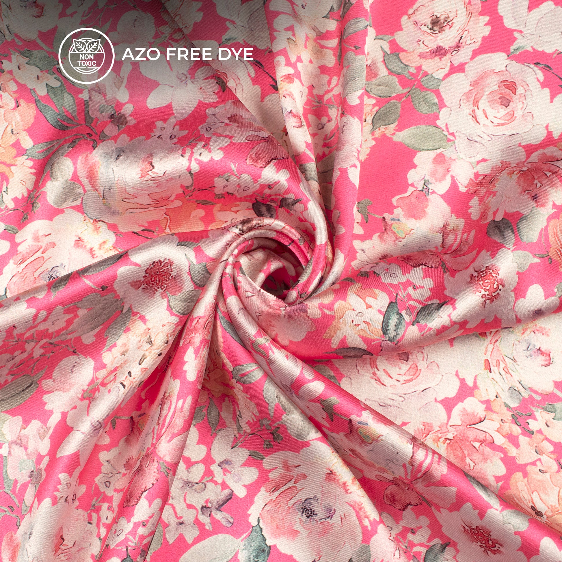 Fuscia Pink Floral Digital Print Japan Satin Fabric