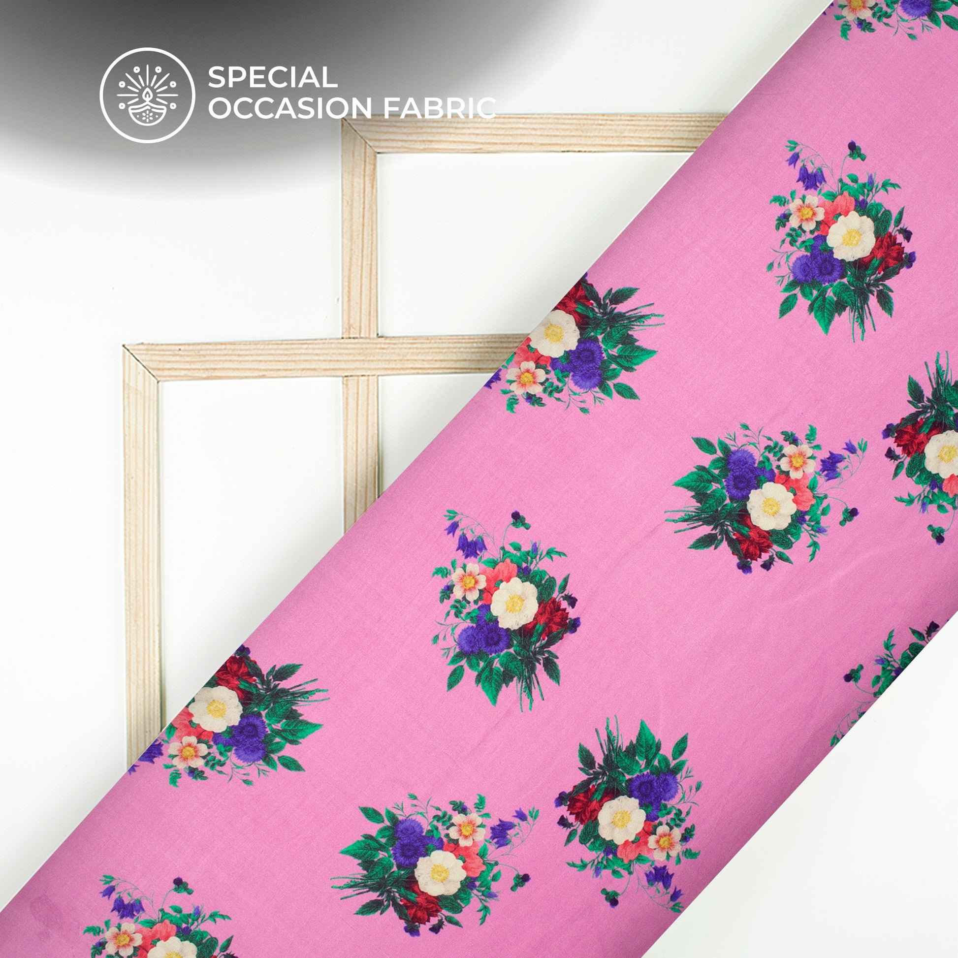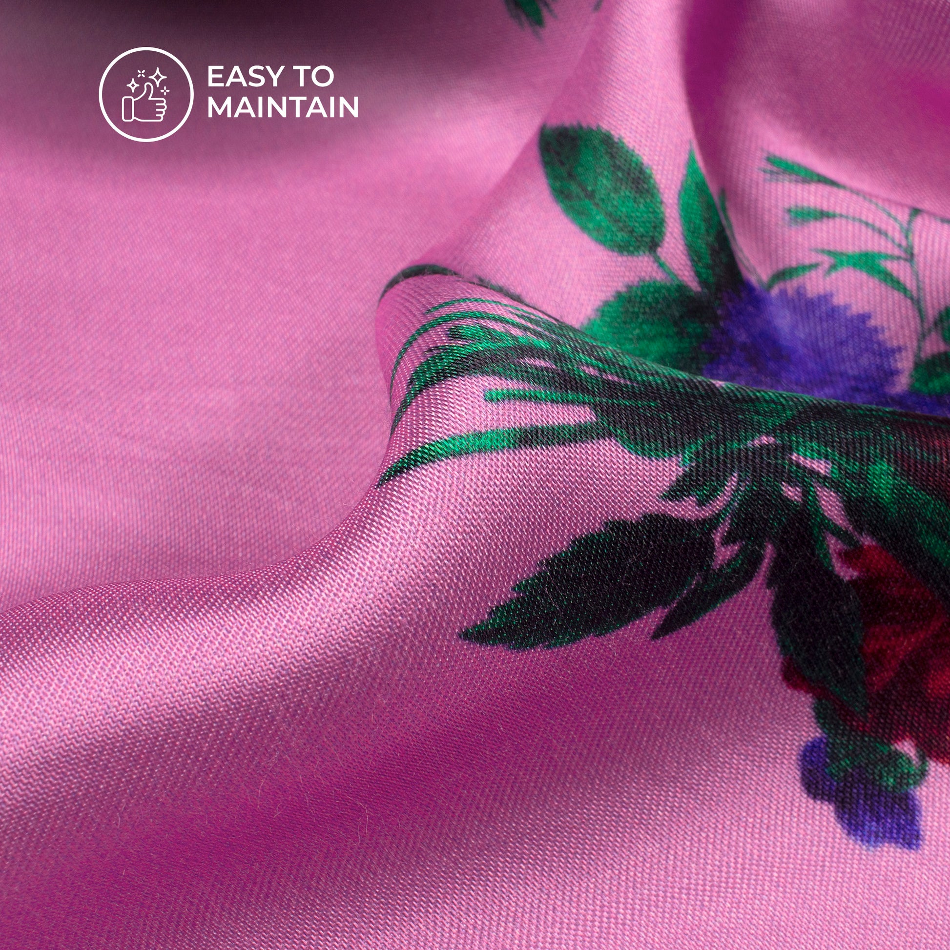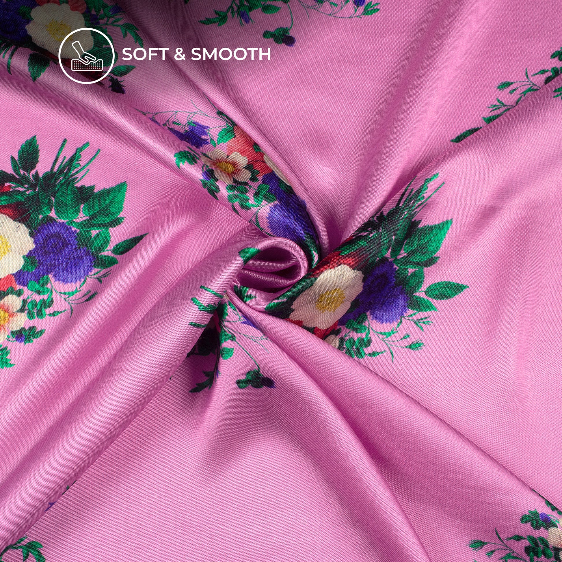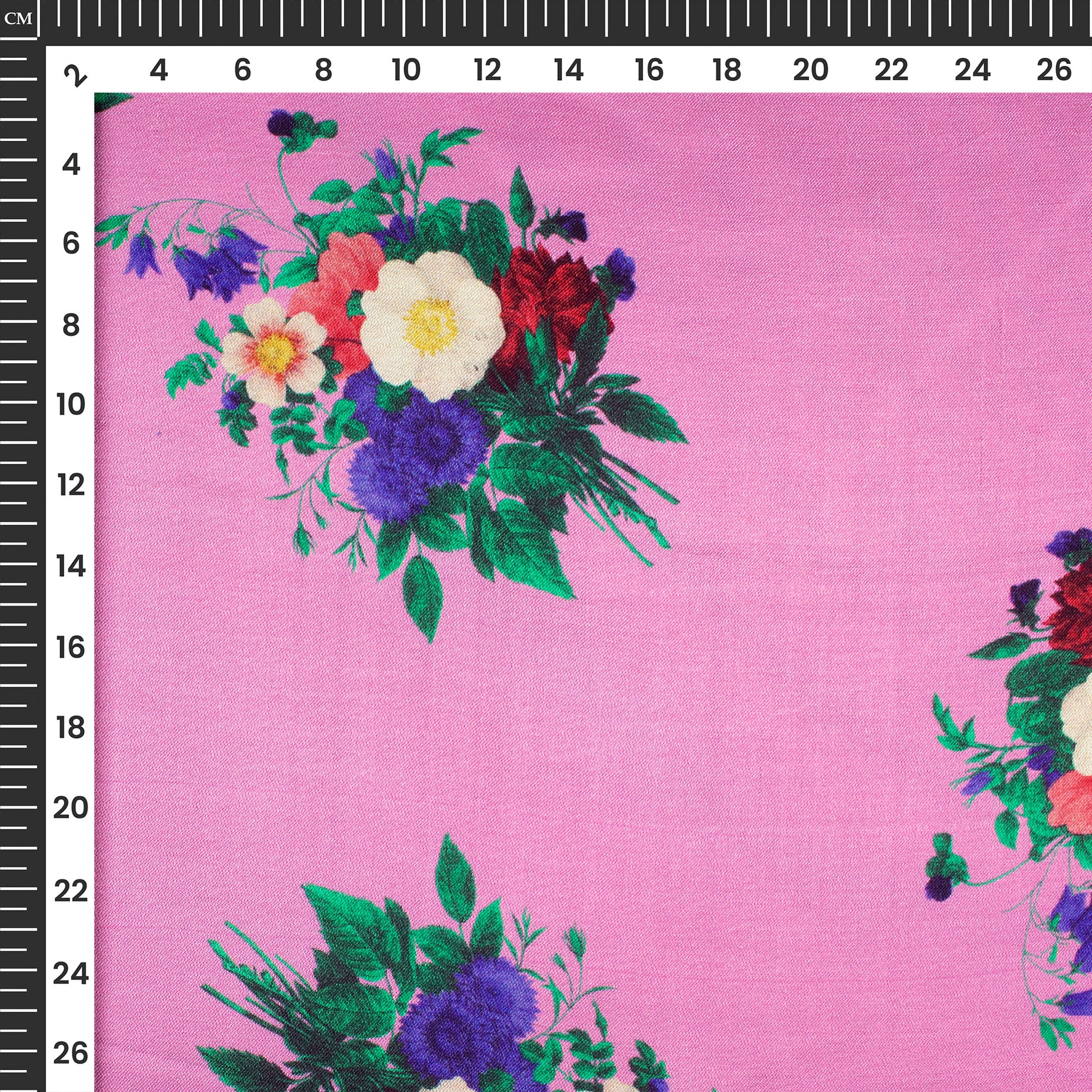Fuscia Pink Floral Digital Print Viscose Gaji Silk Fabric