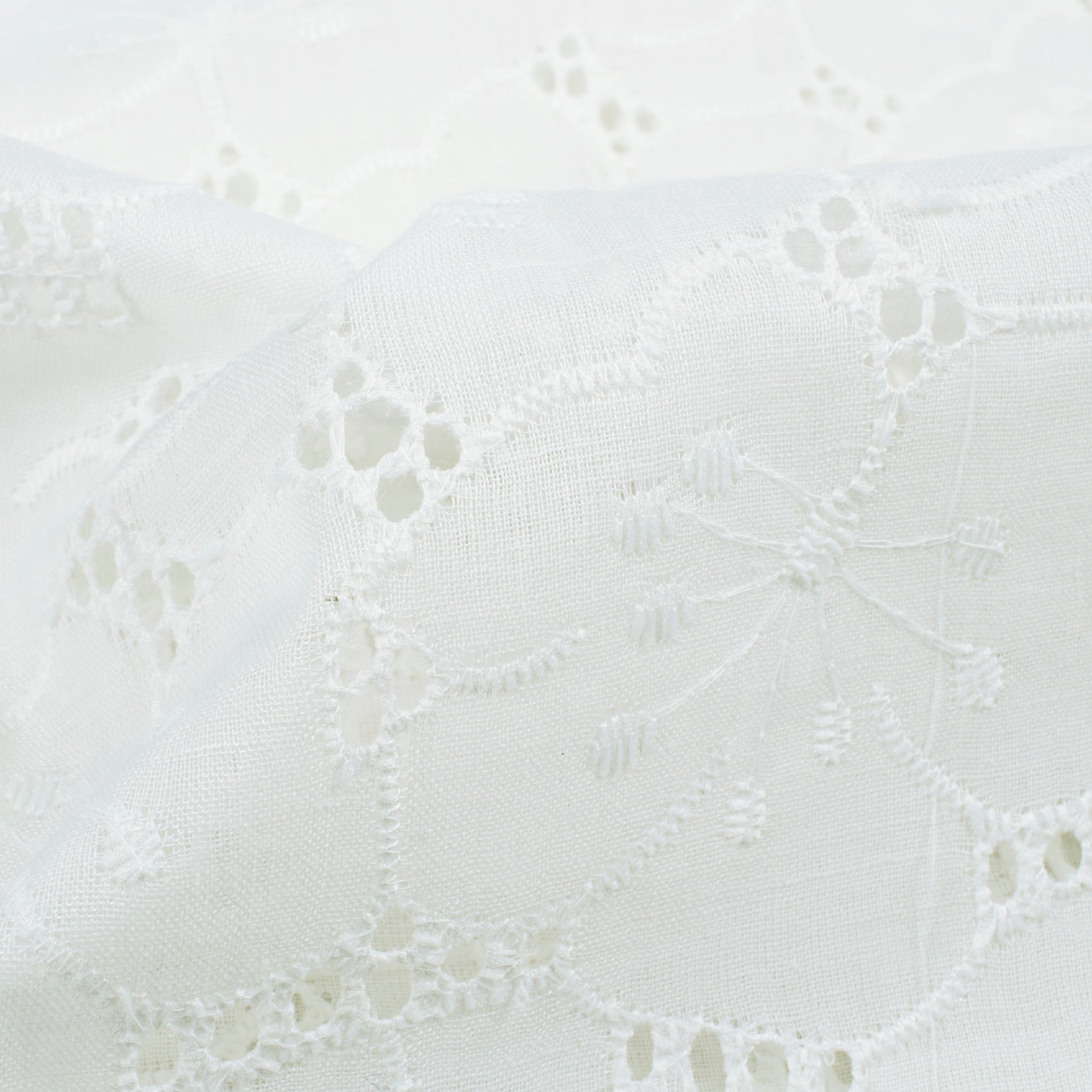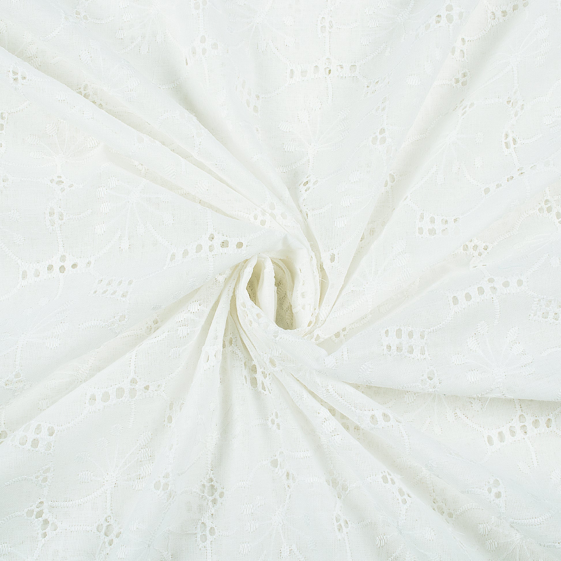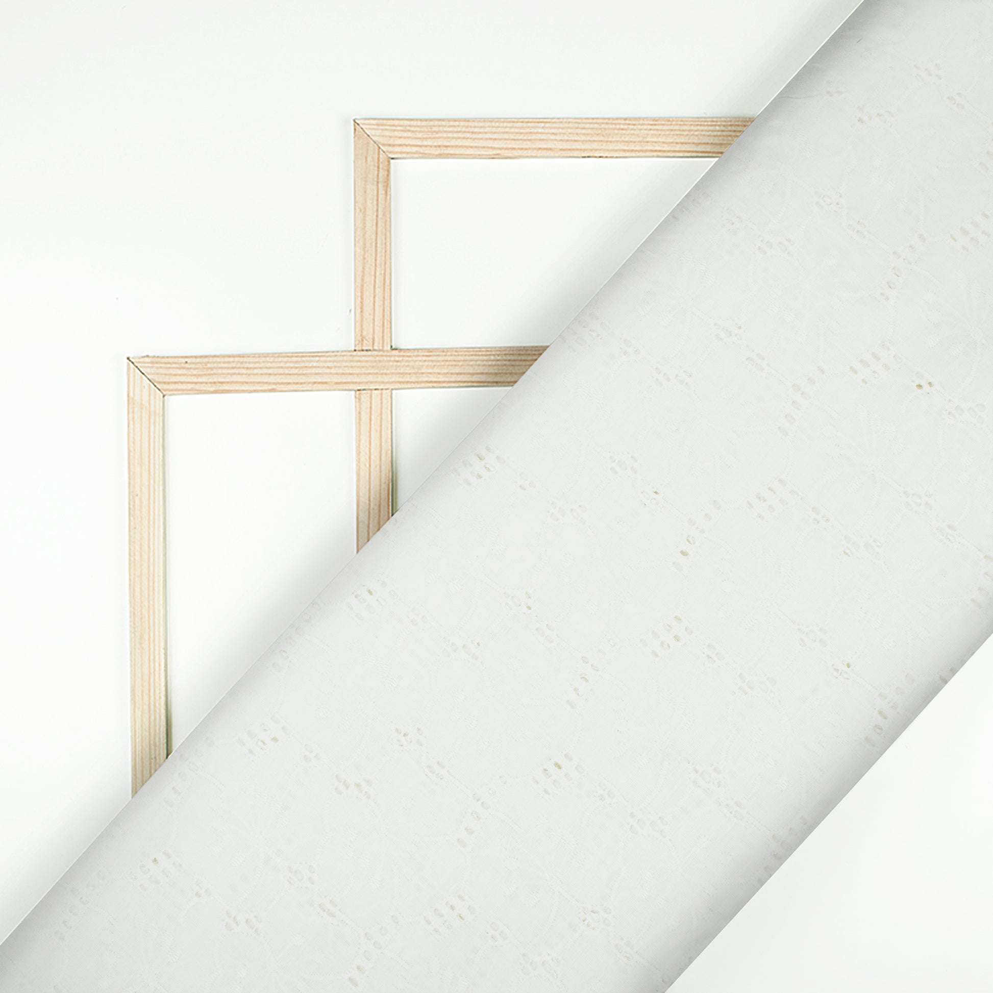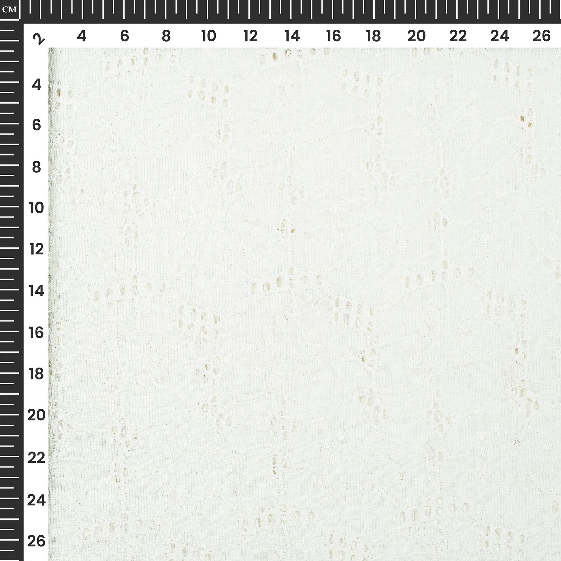 Geo Floral White Premium Schiffli Embroidery Dyeable Cotton Fabric (Width 52 Inches)