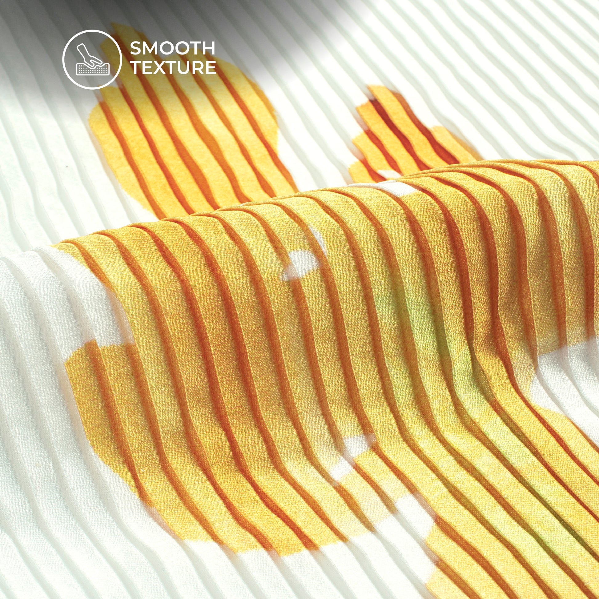 Gold White Floral Digital Print Japan Satin Pleated Fabric