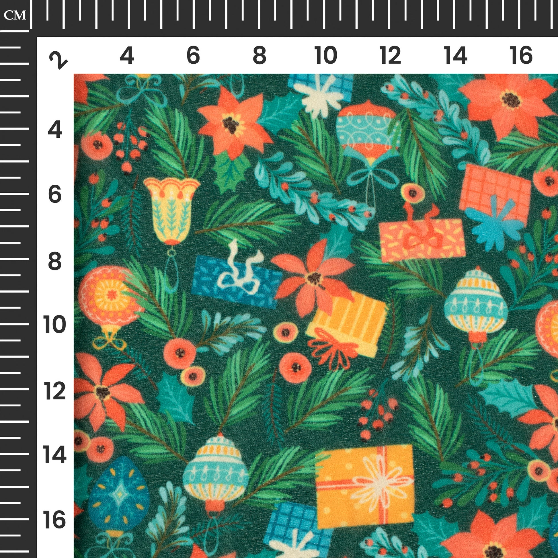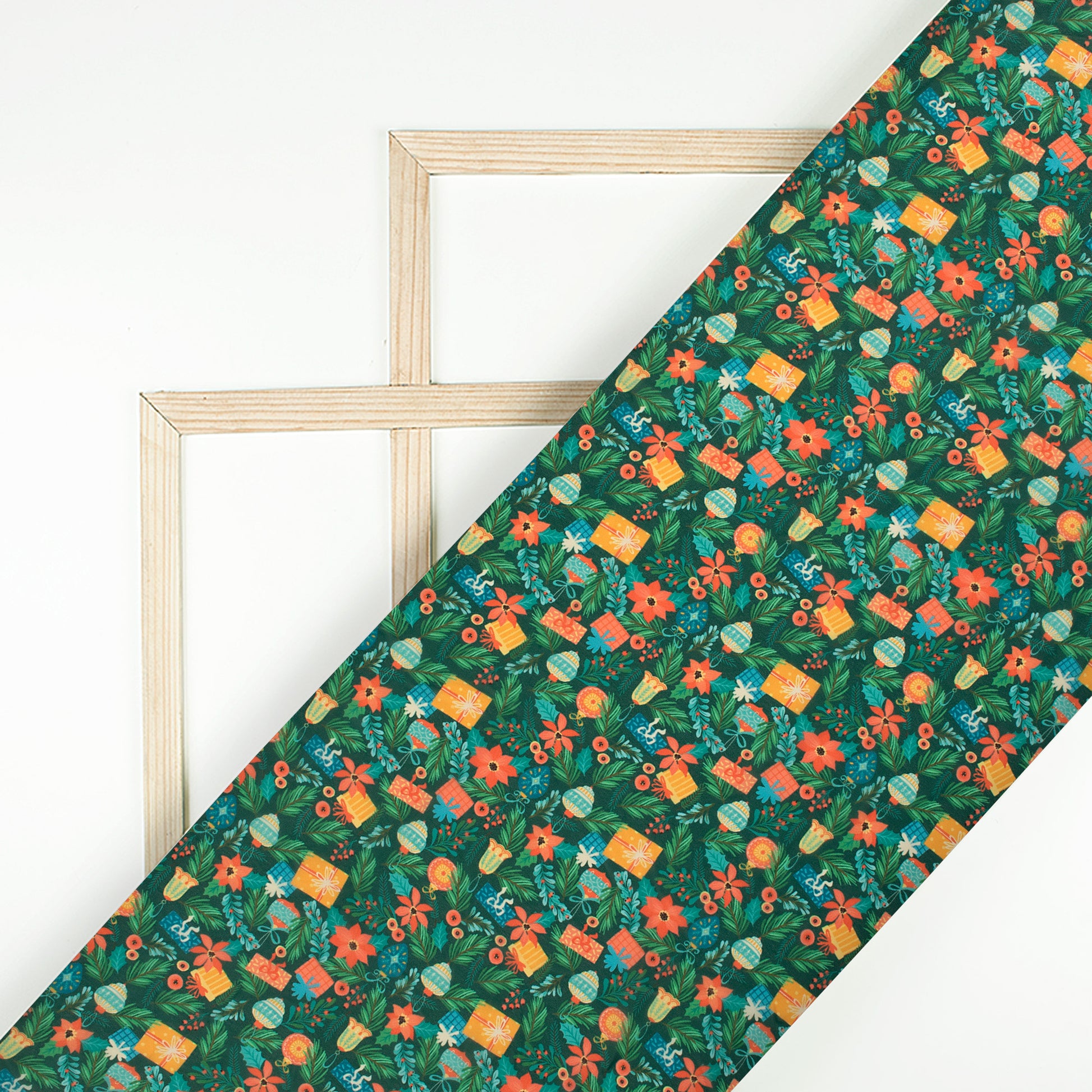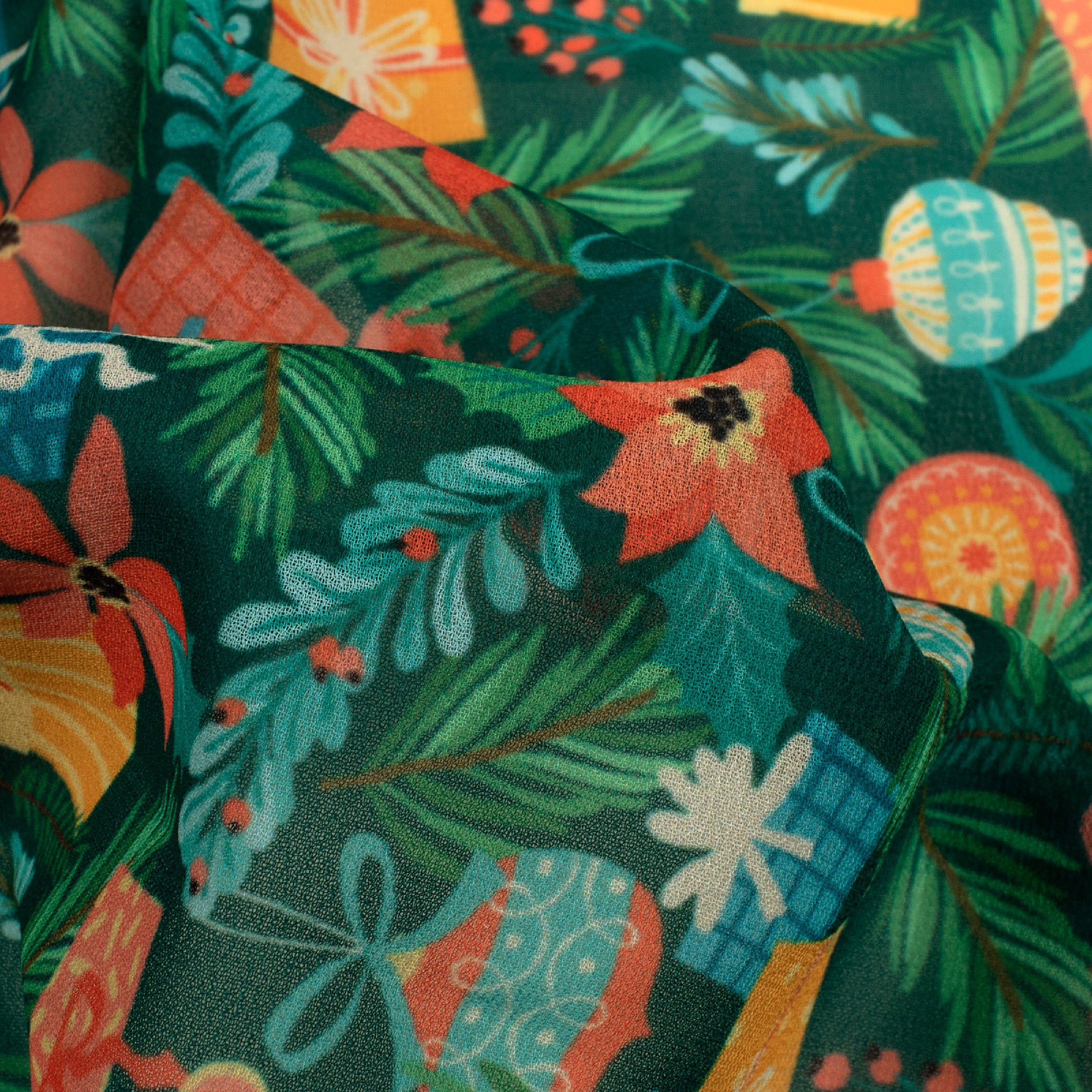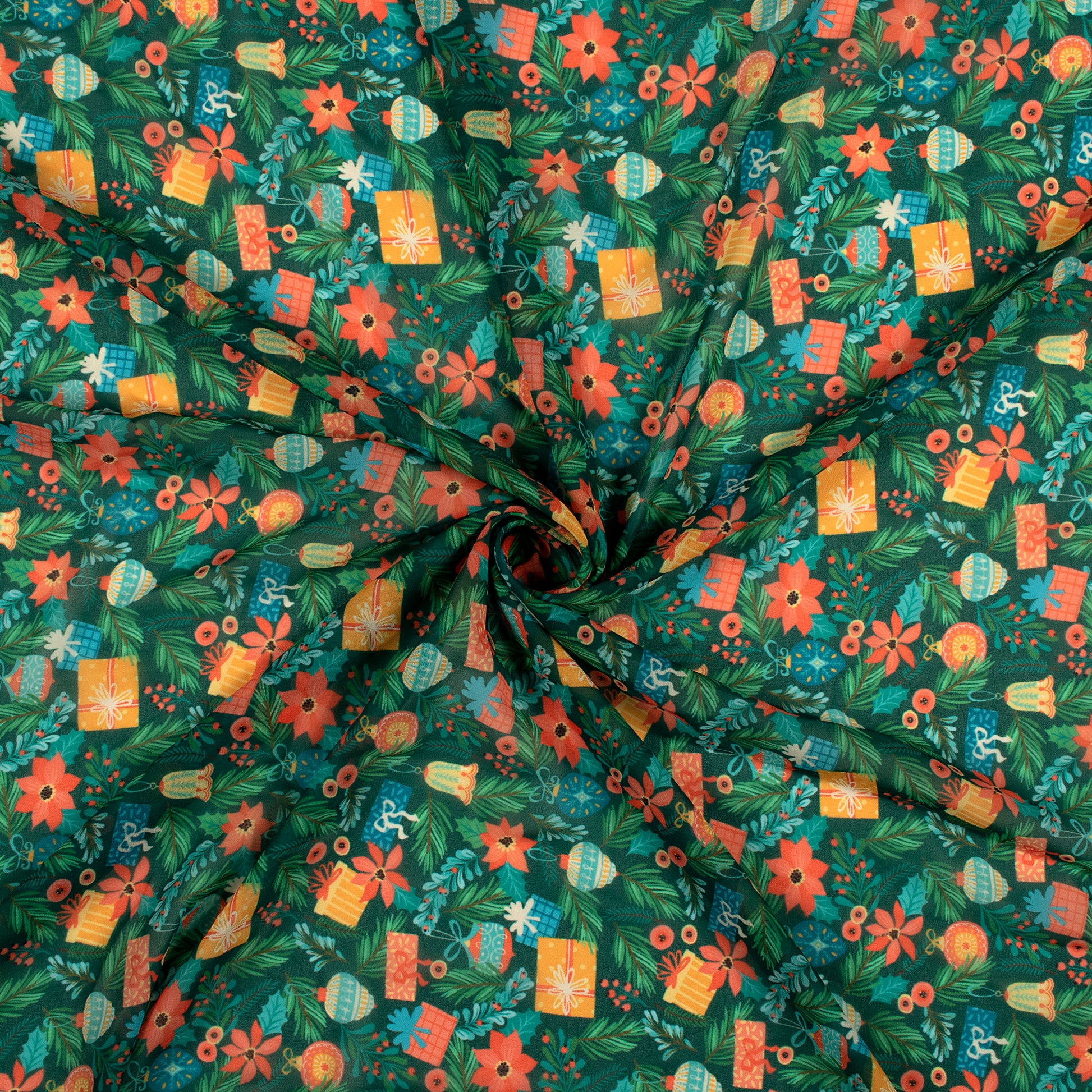 Green And Honey Yellow Christmas Pattern Digital Print Georgette Fabric