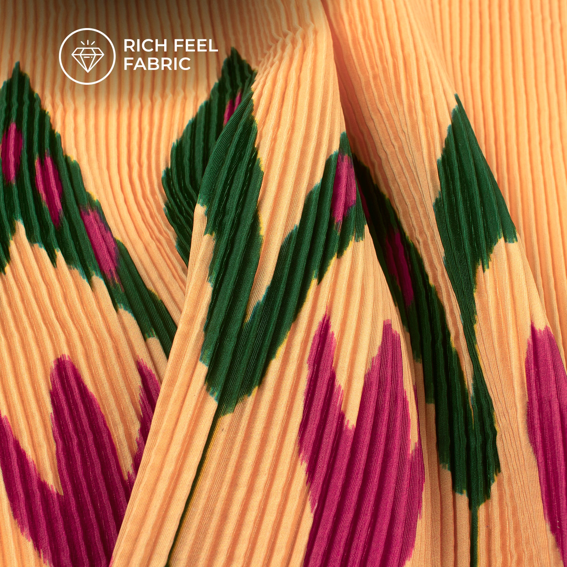 Honey Orange Floral Digital Print French Crepe Pleated Fabric