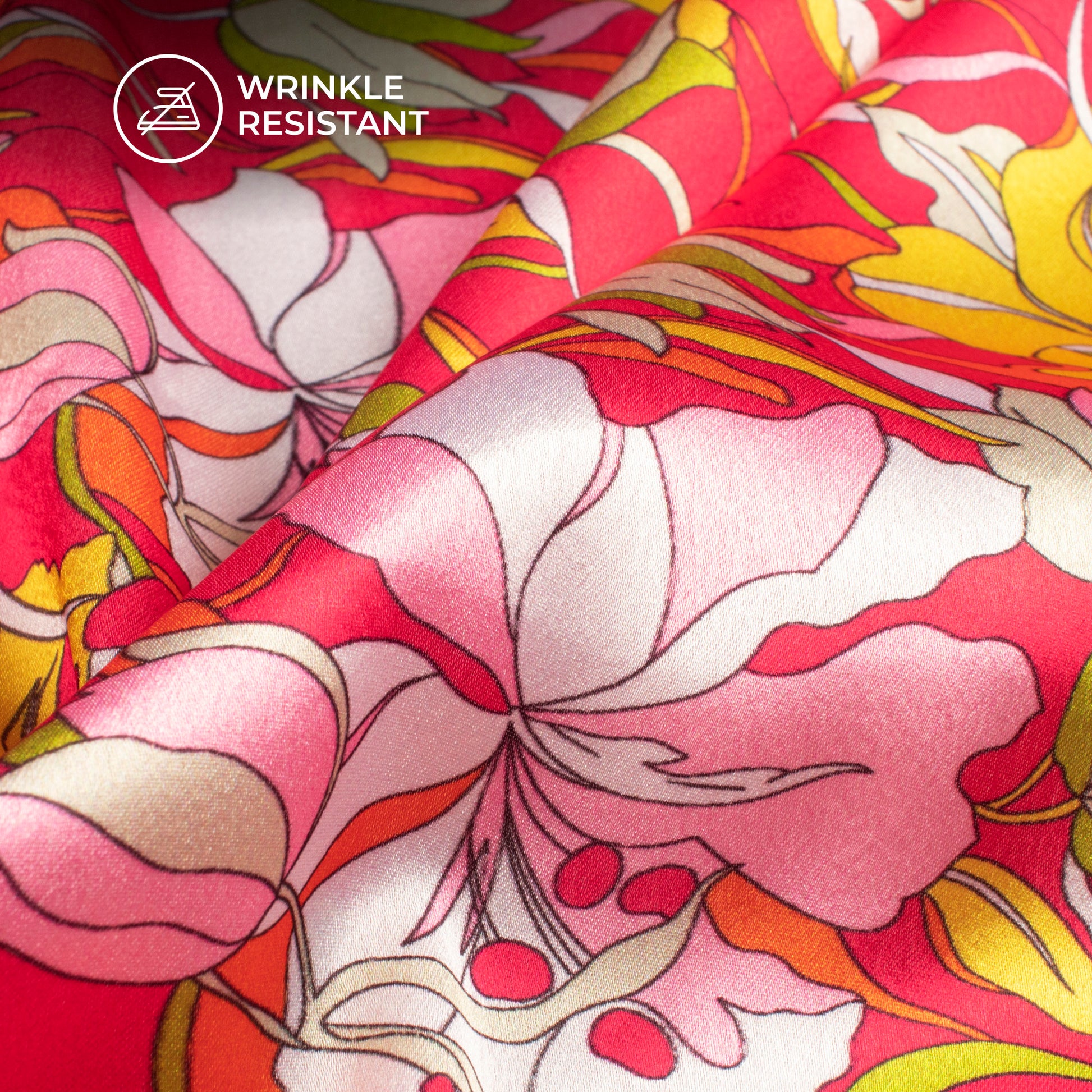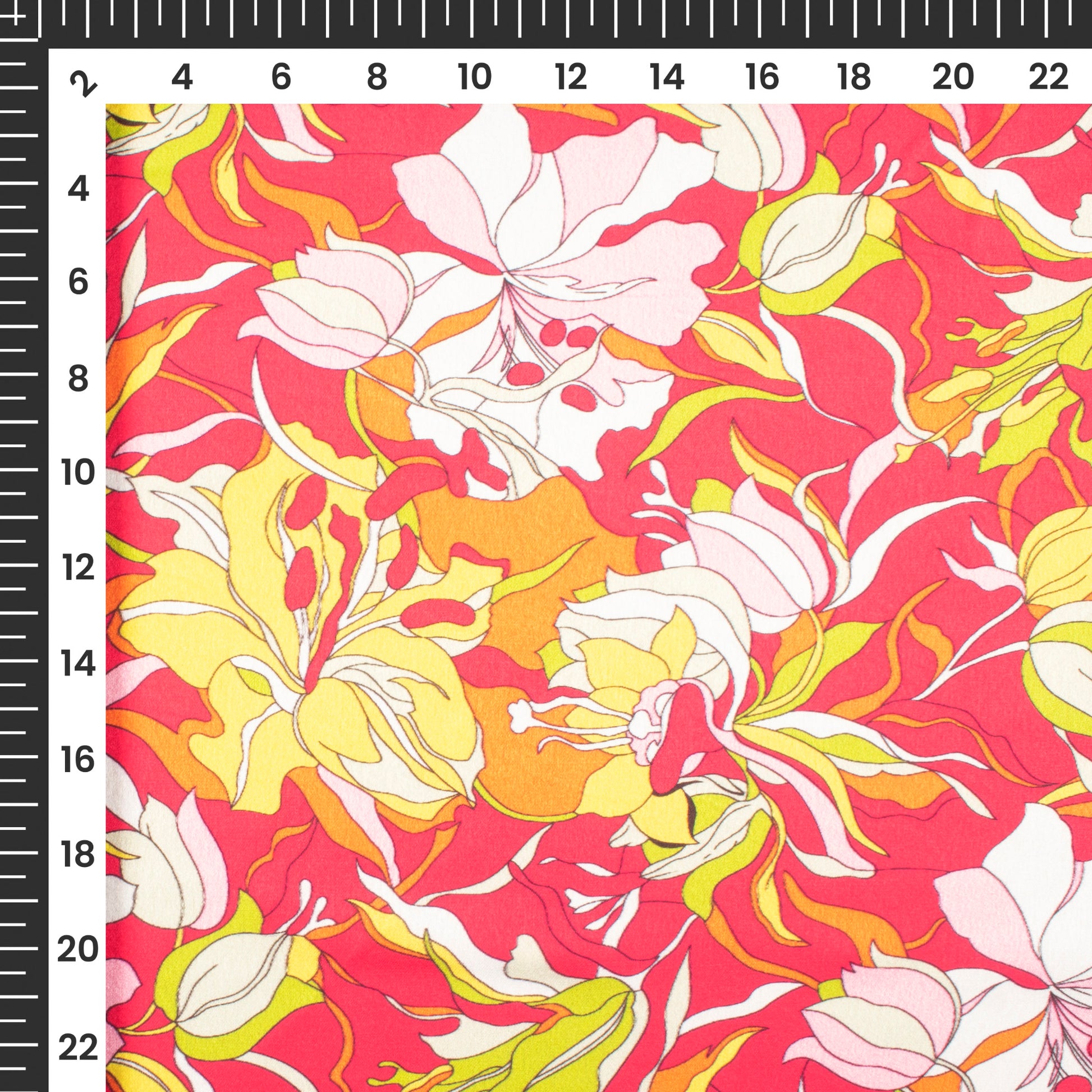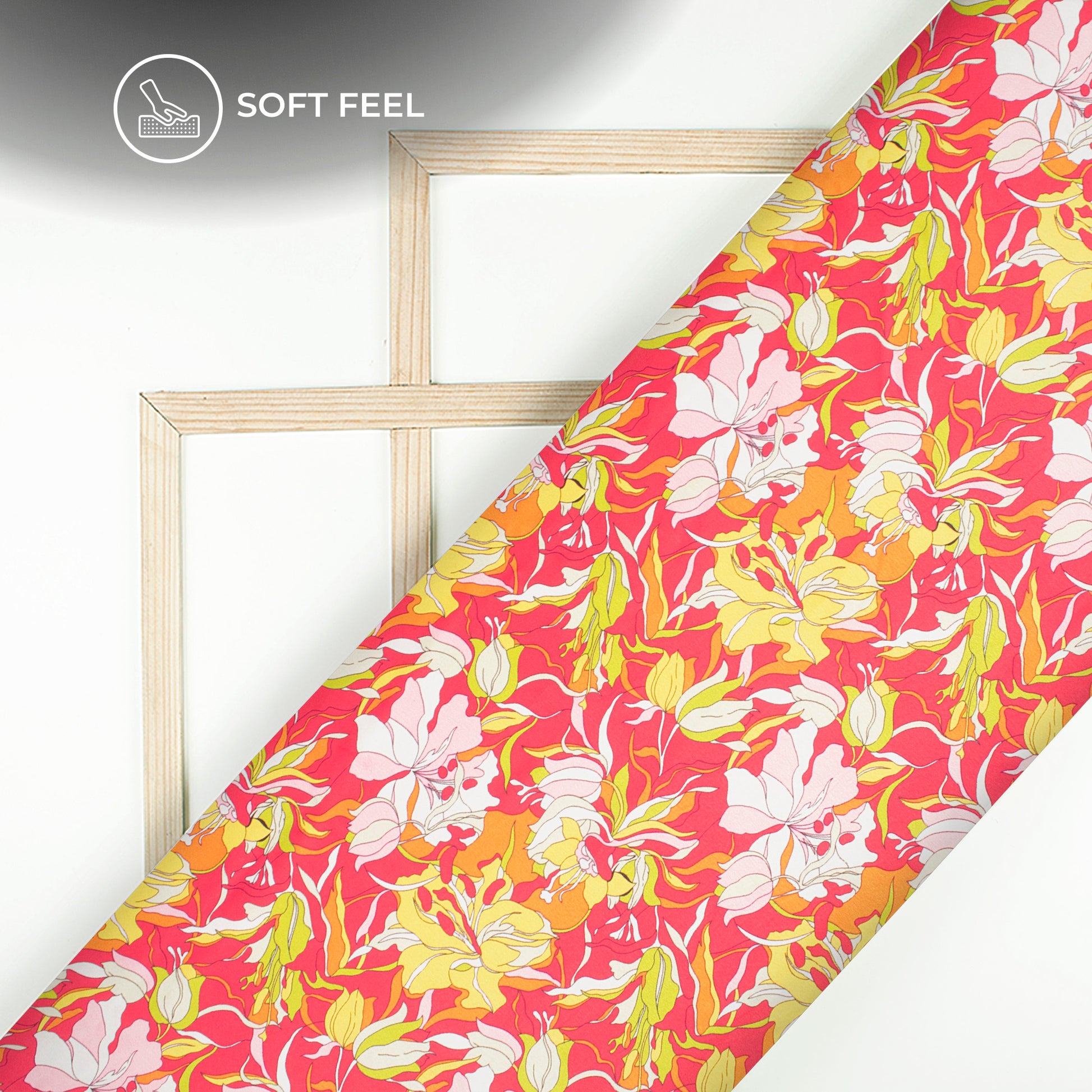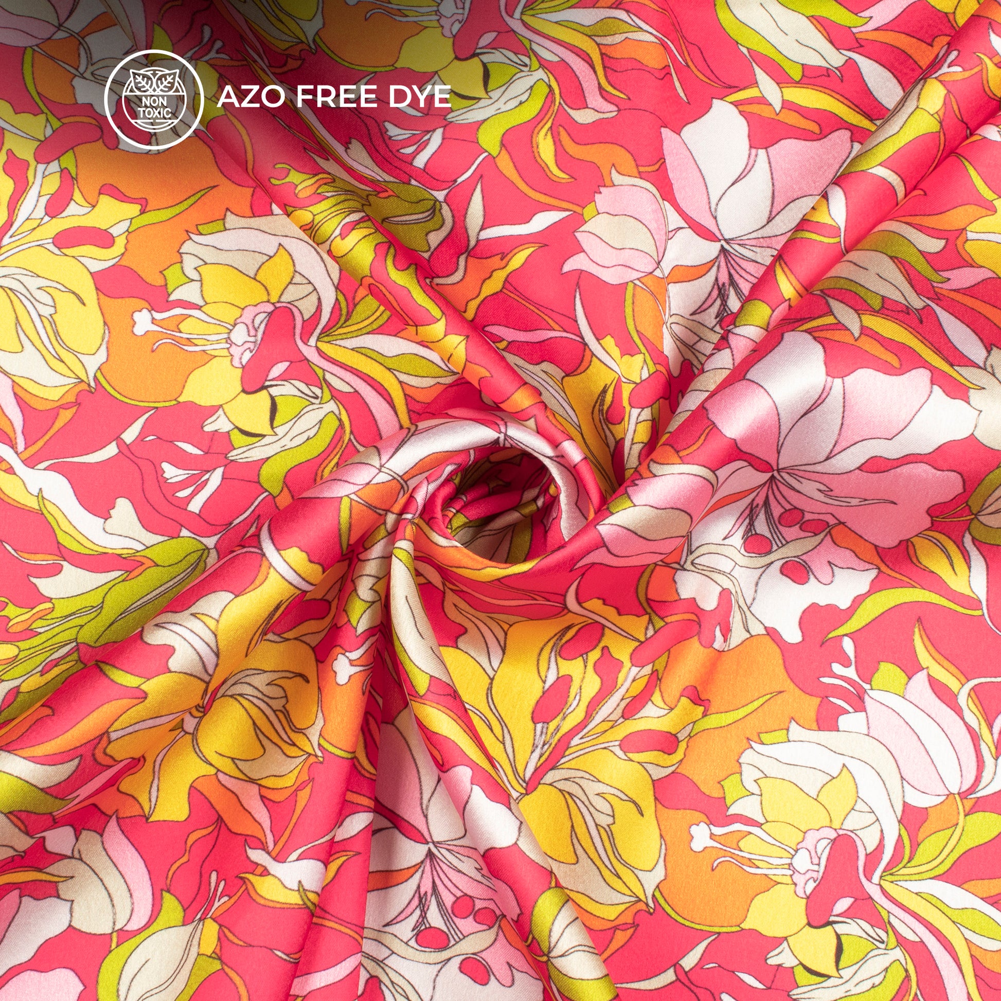 Hot Pink And Yellow Abstract Floral Digital Print Japan Satin Fabric