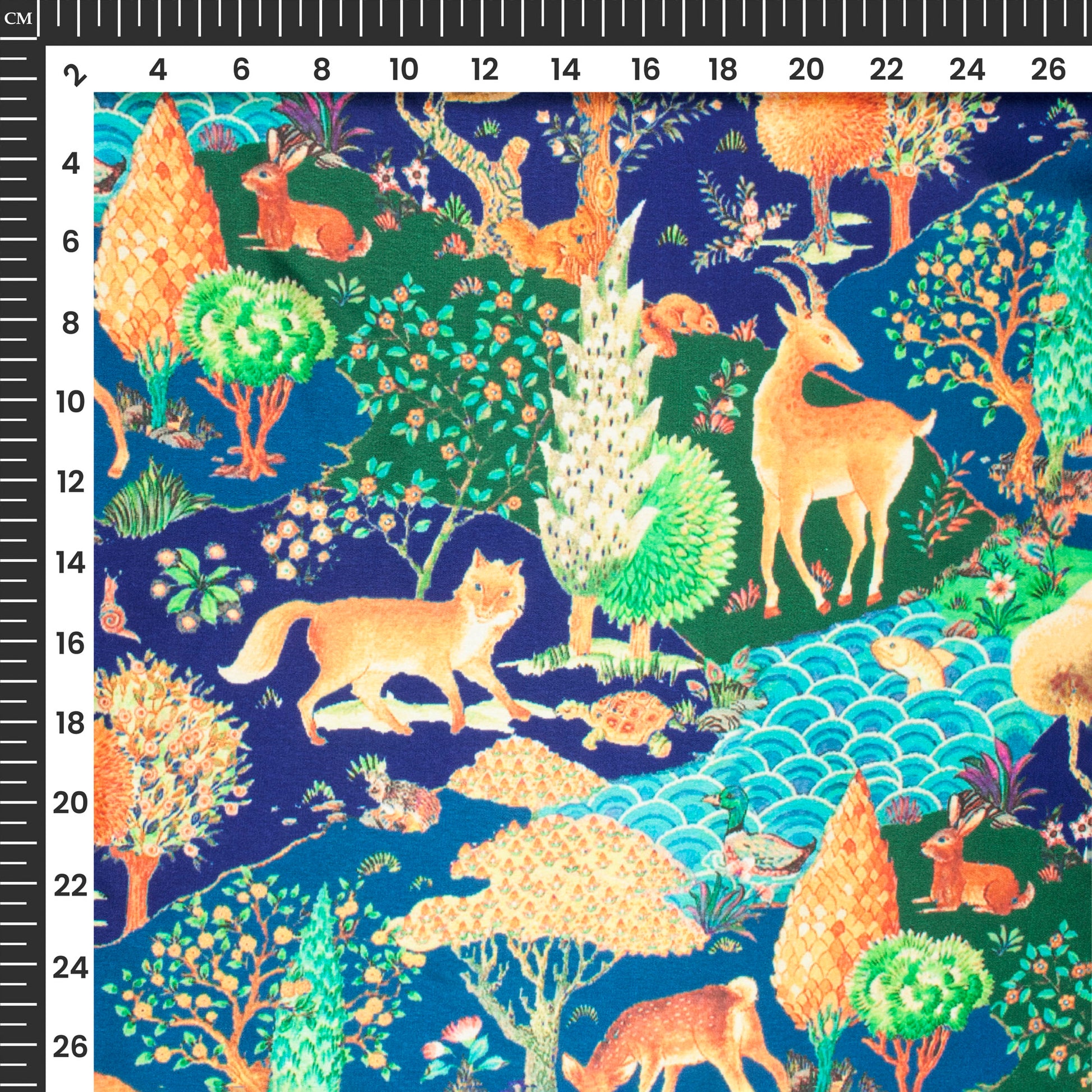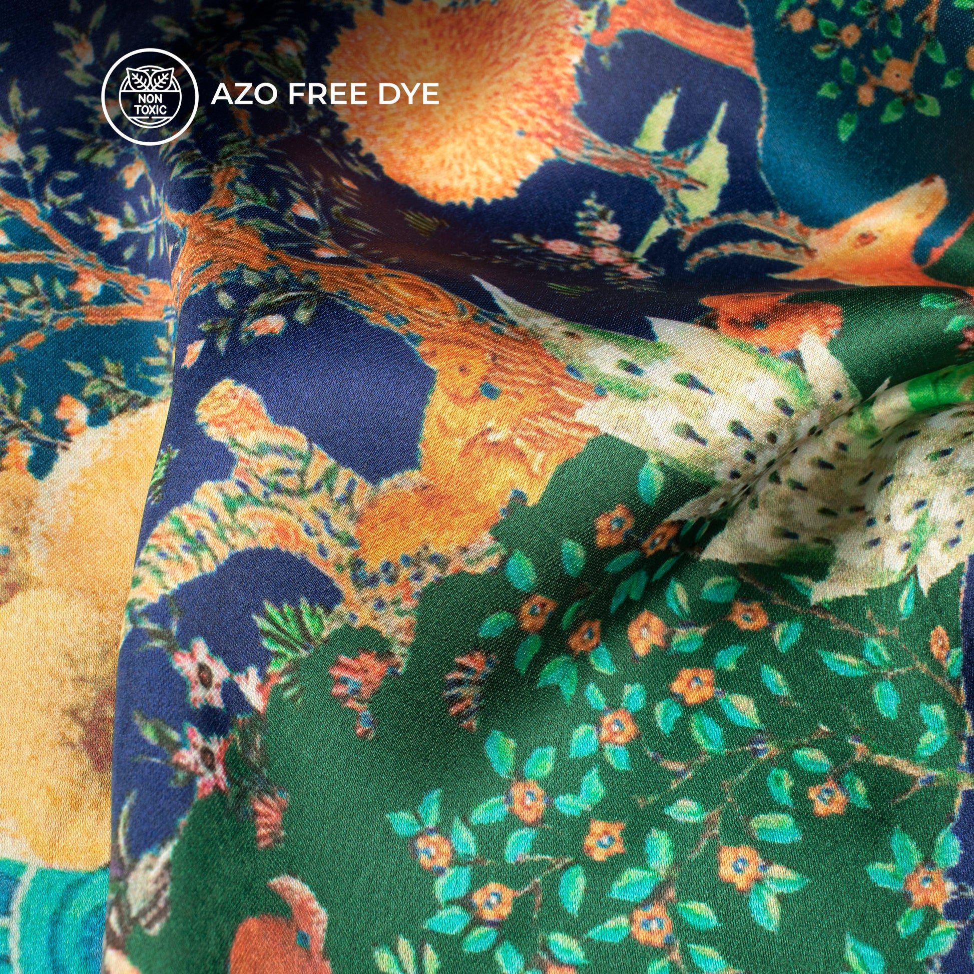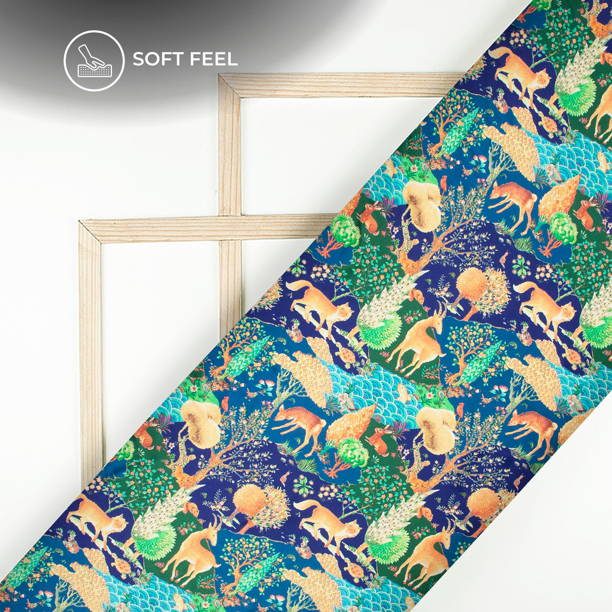 Jungle Harmony: Exclusive Blue Digital Print Japan Satin Fabric
