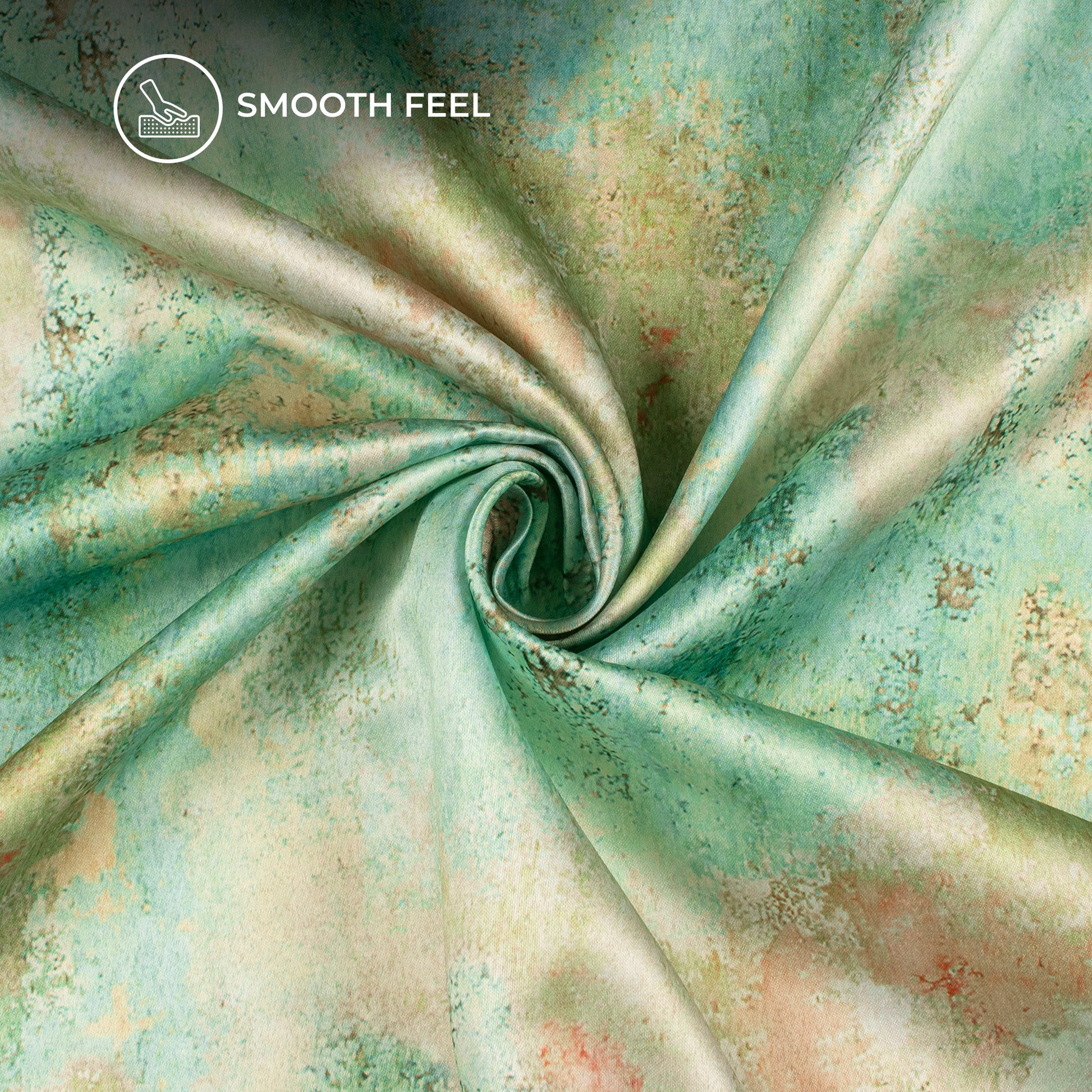 Light Green Abstract Digital Print Charmeuse Satin Fabric (Width 58 Inches)