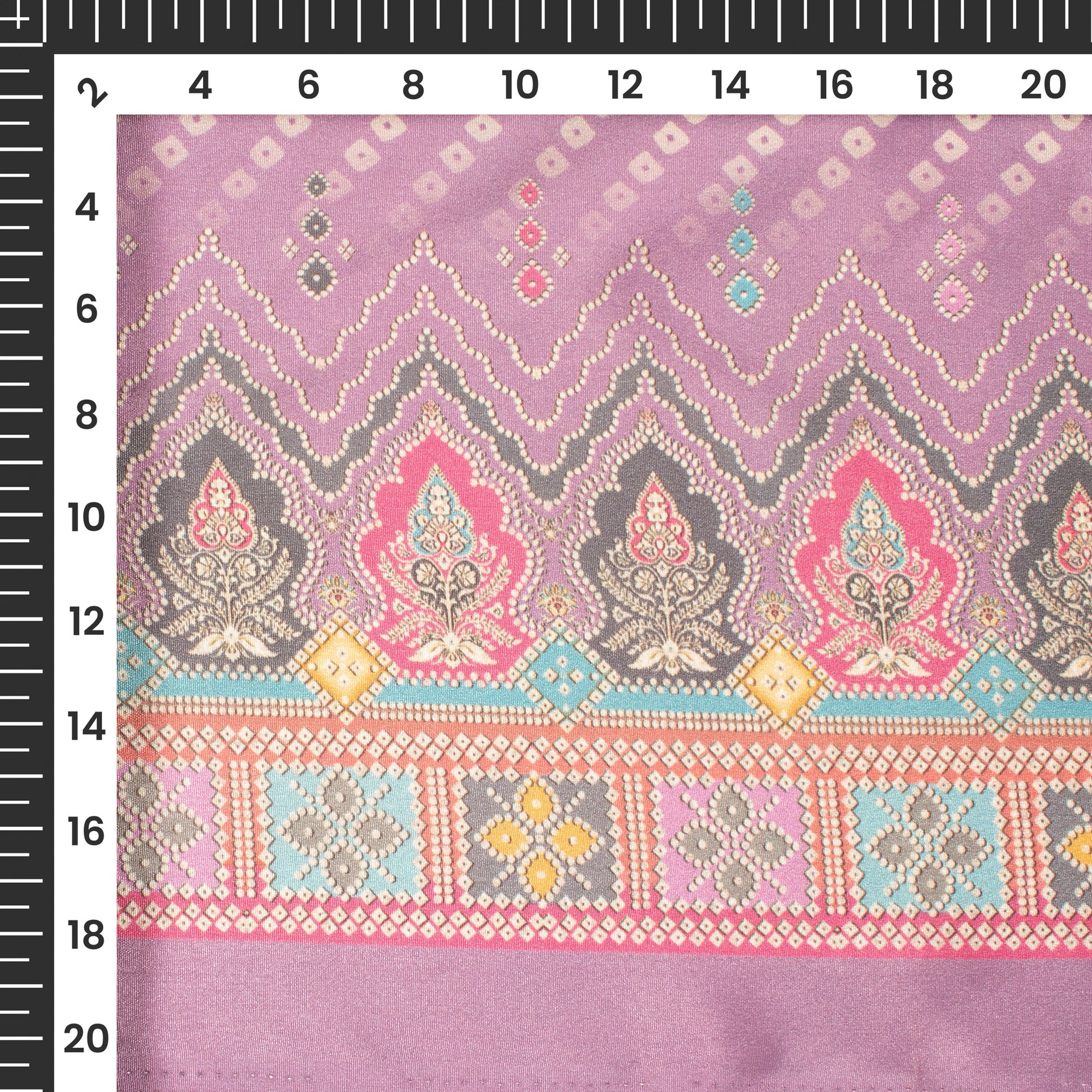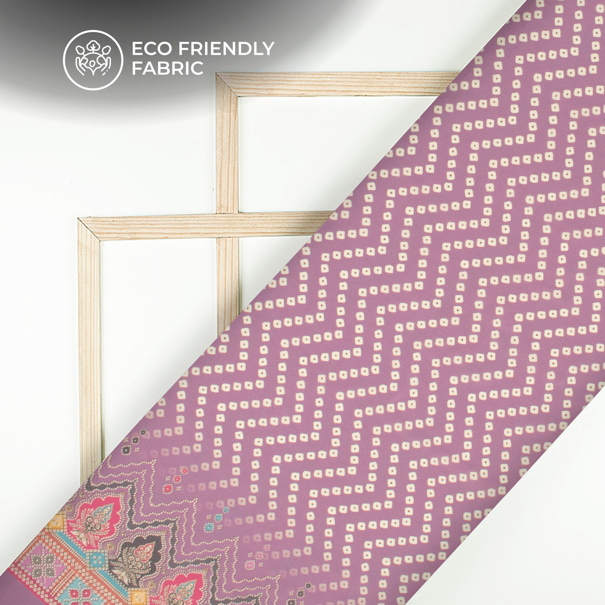 Lilac Purple Bandhanii Digital Print Crepe Silk Fabric