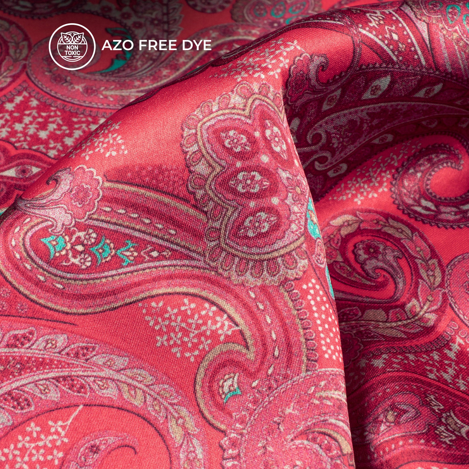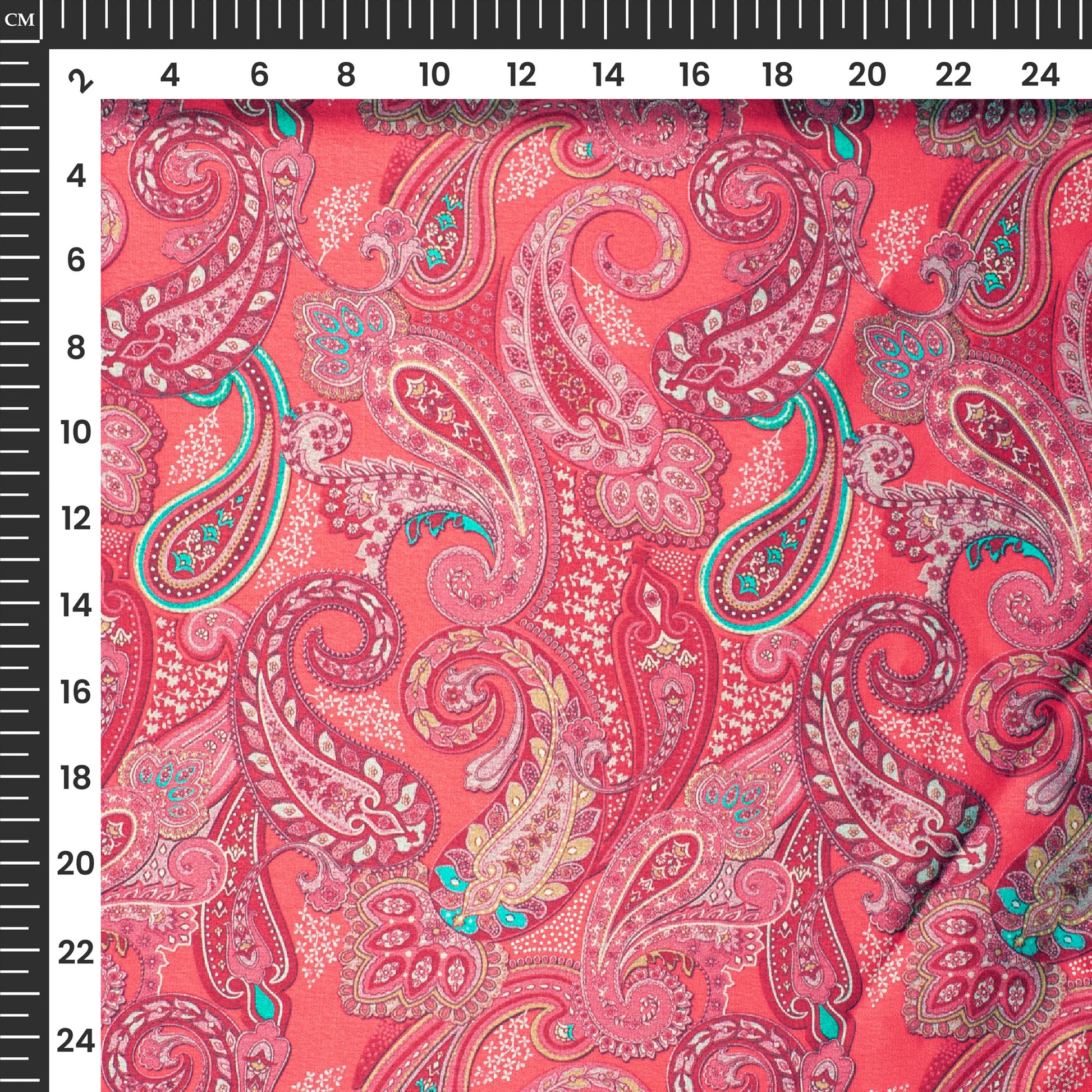 Luxe Paisley: Premium Pink Digital Print Japan Satin Fabric