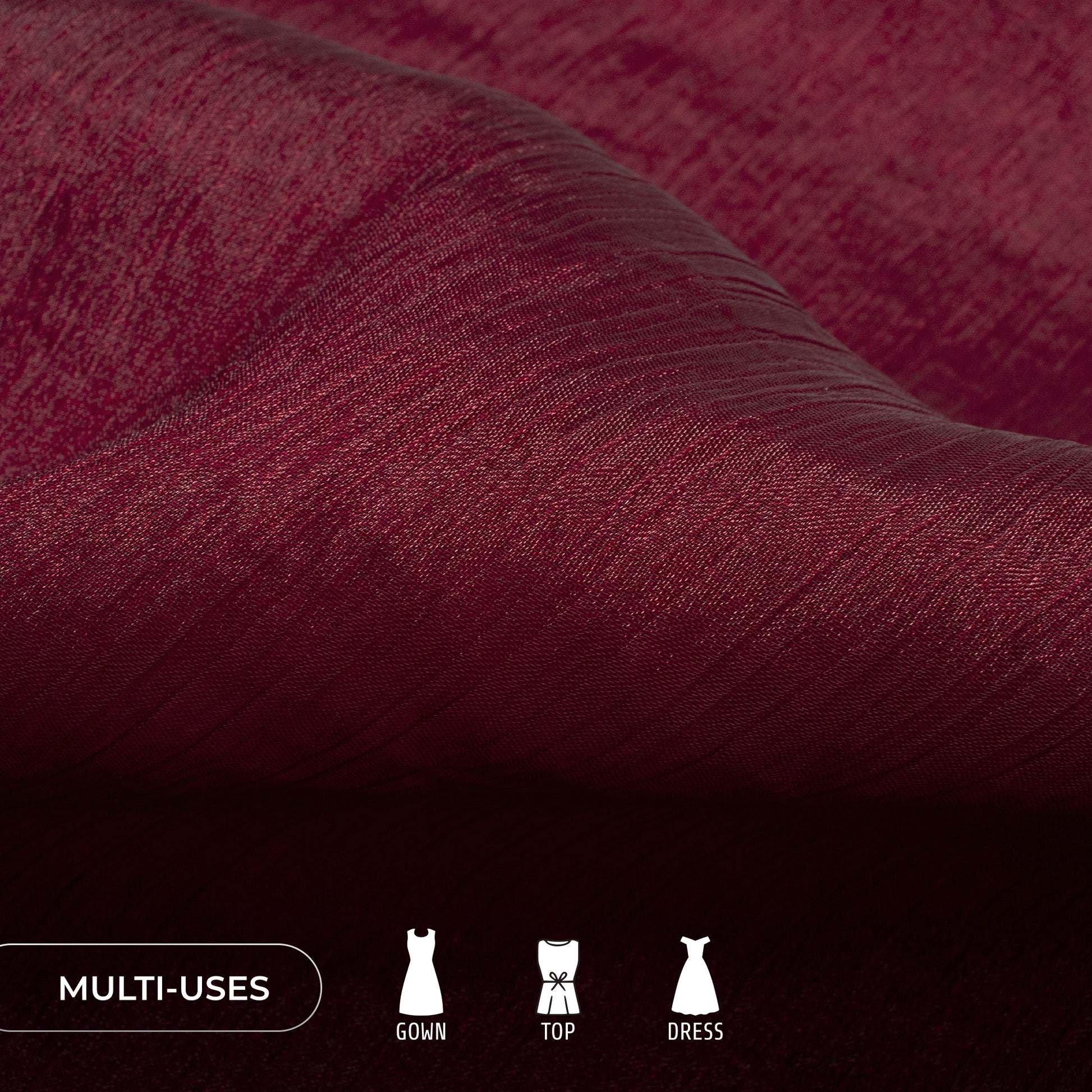 Luxurious Berry Red Crushed Metallic Soft Tissue Slub Fabric