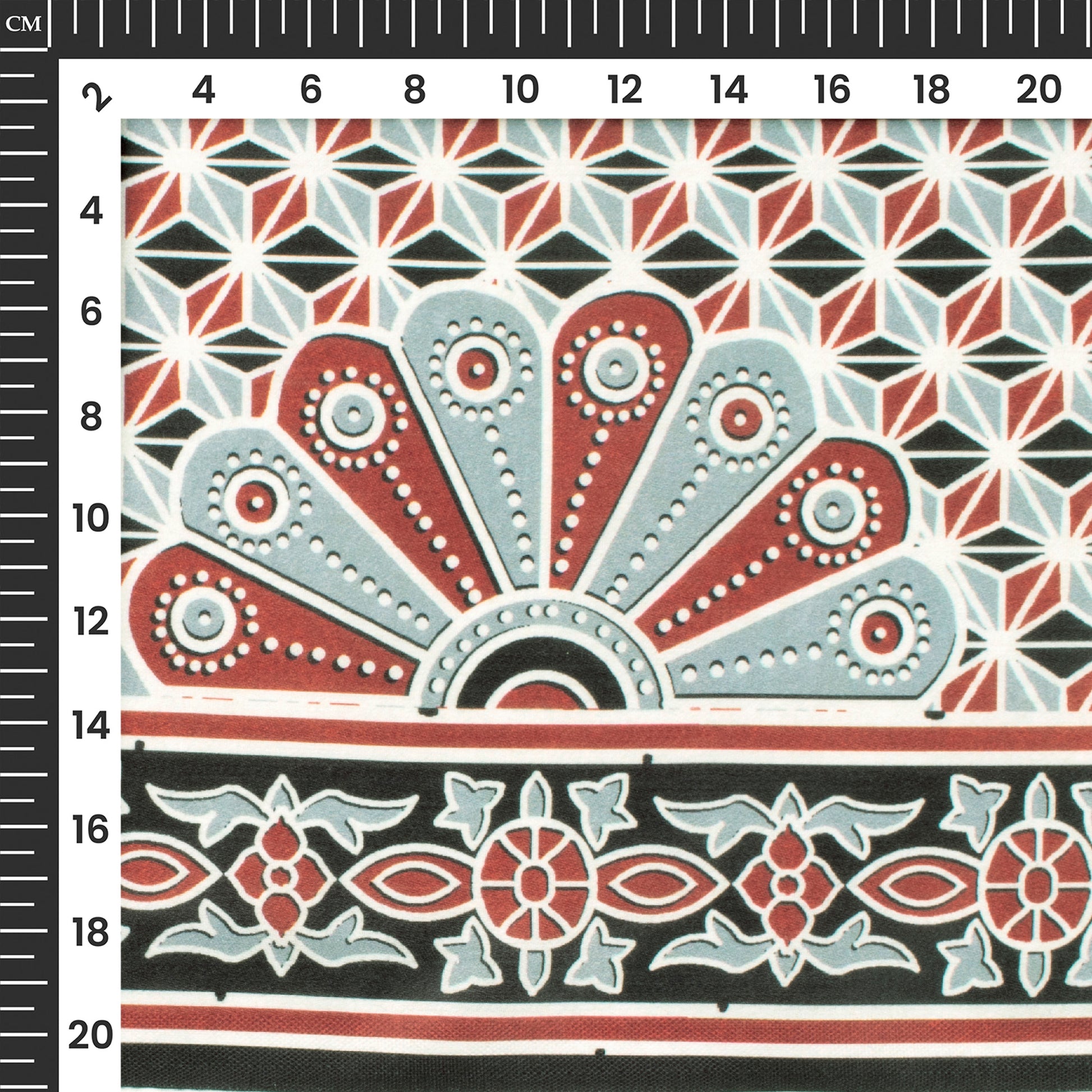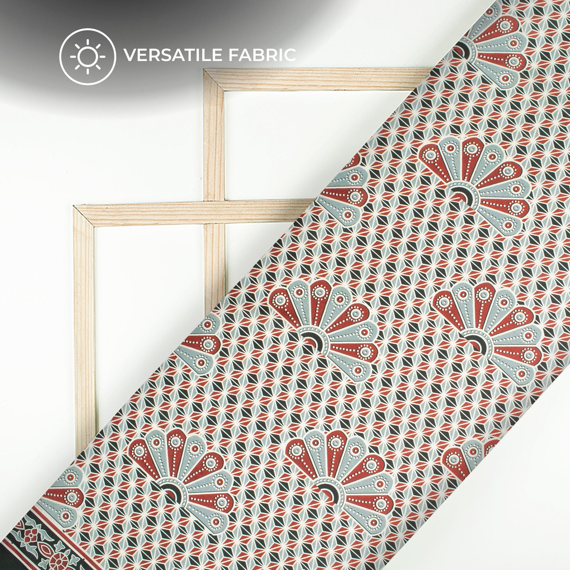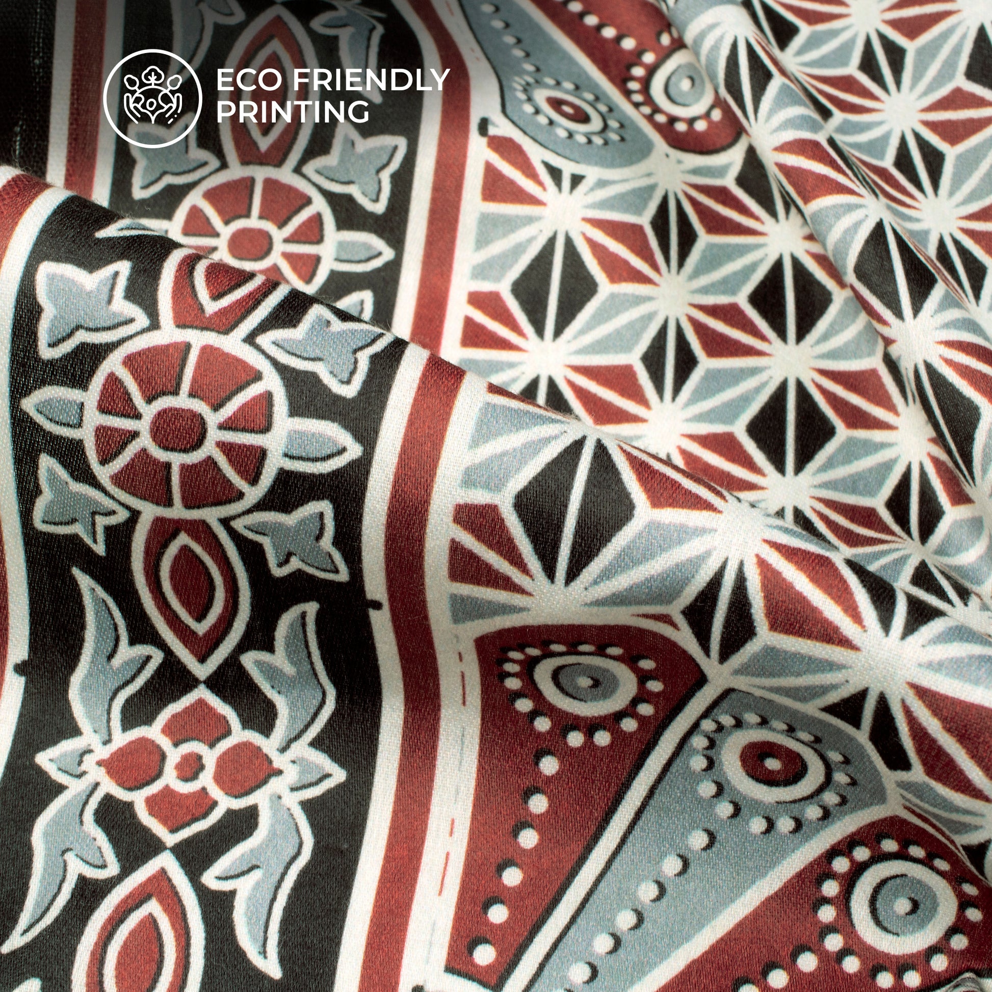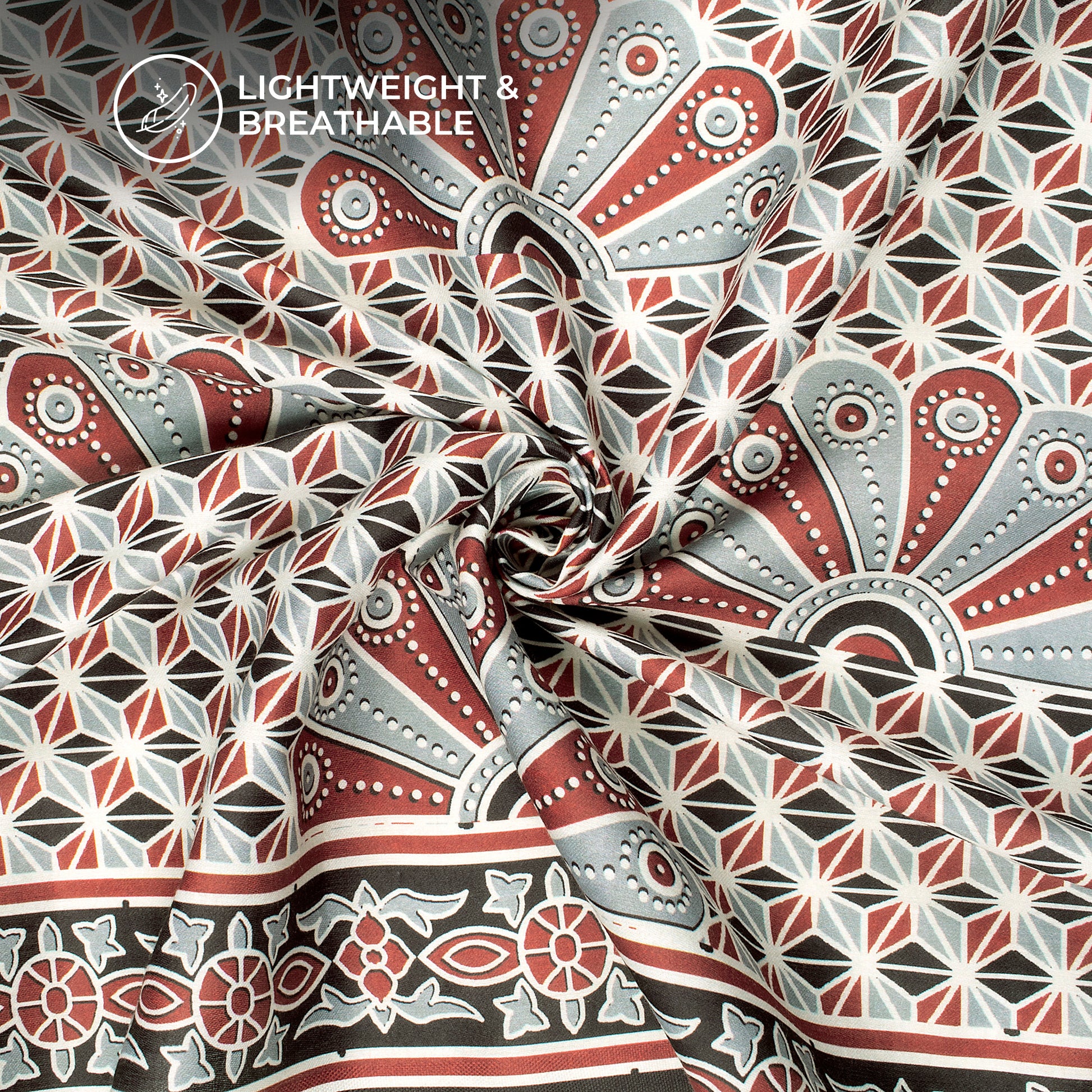 Maroon And Grey Ajarakh Inspierd Digital Print Poly Glazed Cotton Fabric