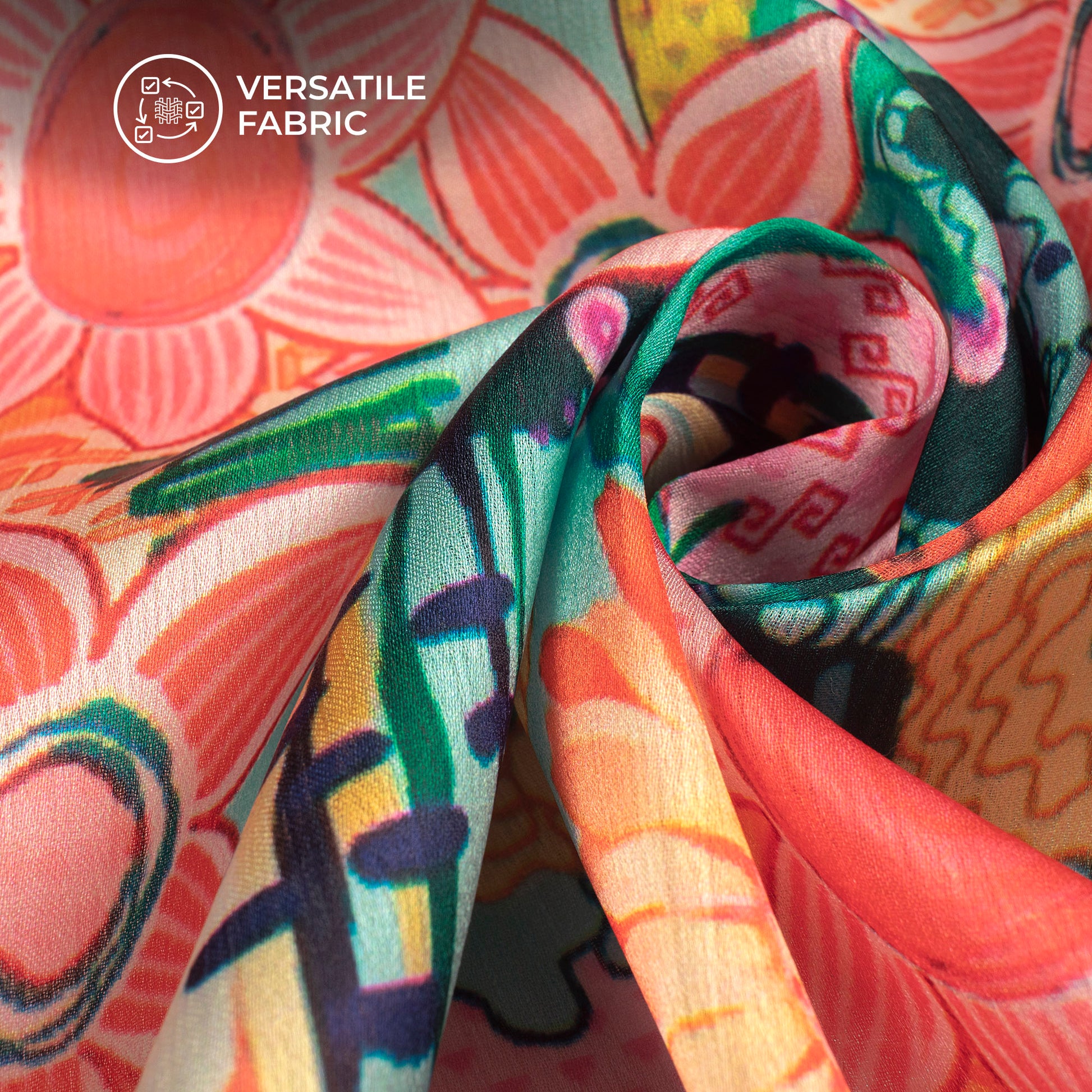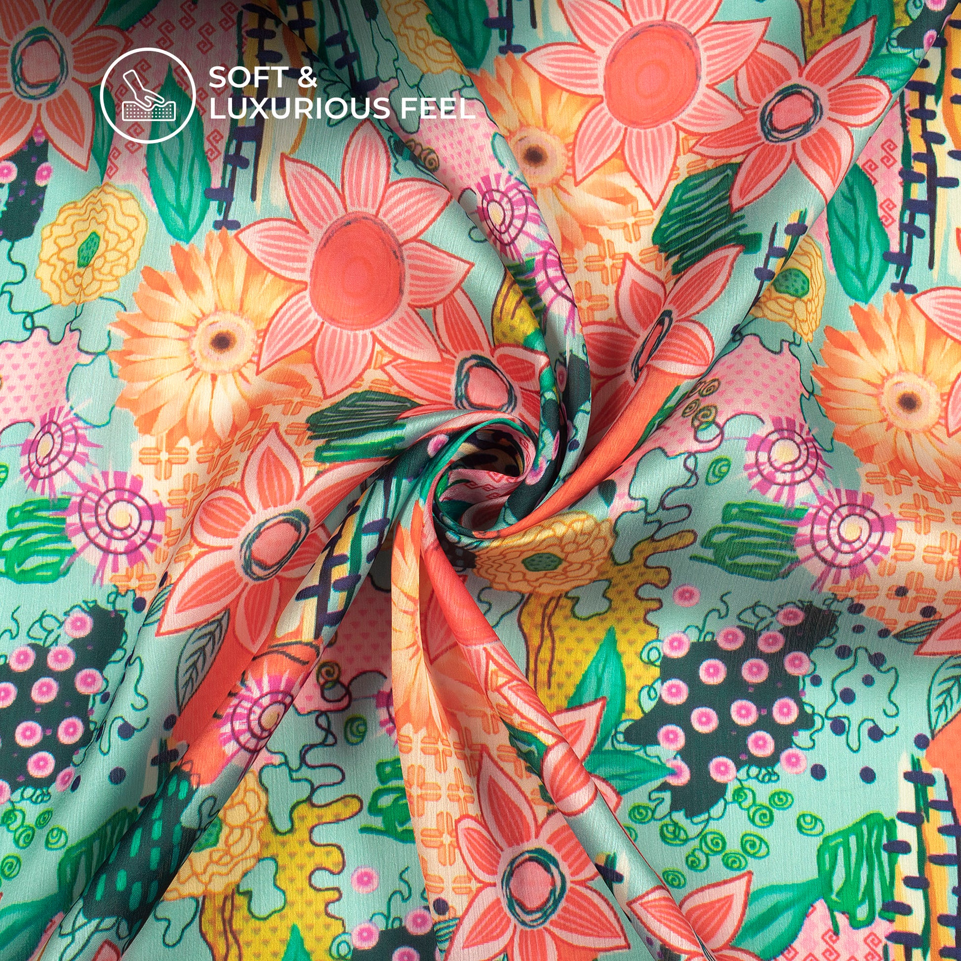 Chiffon Satin is a highly celebrated fabric in the fashion world. It has got a silky texture and gorgeous luster to it. Take your pick from a wide array of digital prints featuring bandhani, leheriya, shibori, ombre, and many more. Let your creative juices flowing and develop beautiful ensembles like suits, kurta, sarees, blouses, shirts, maxi, and more. There is no limit when you have such pretty colors and prints..
