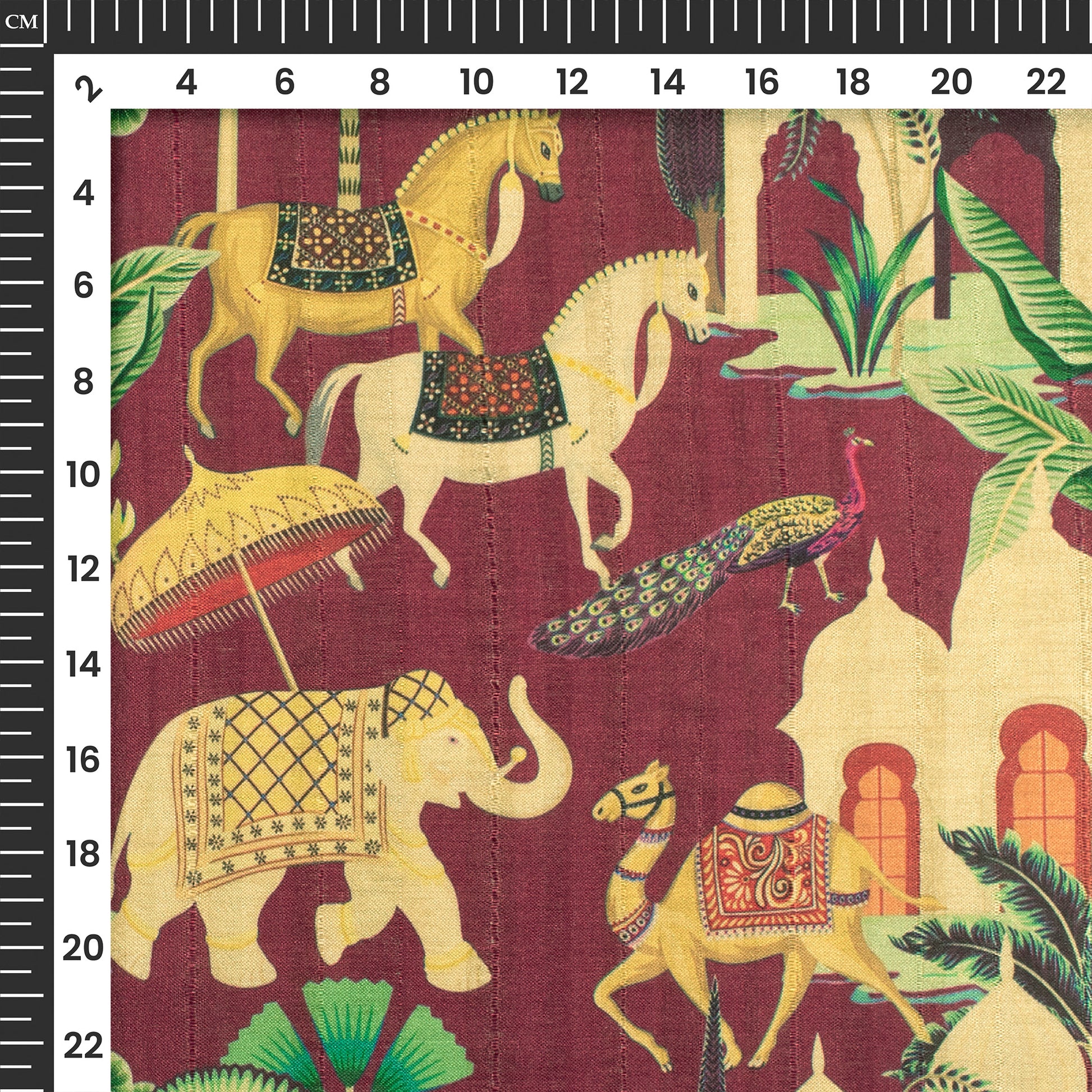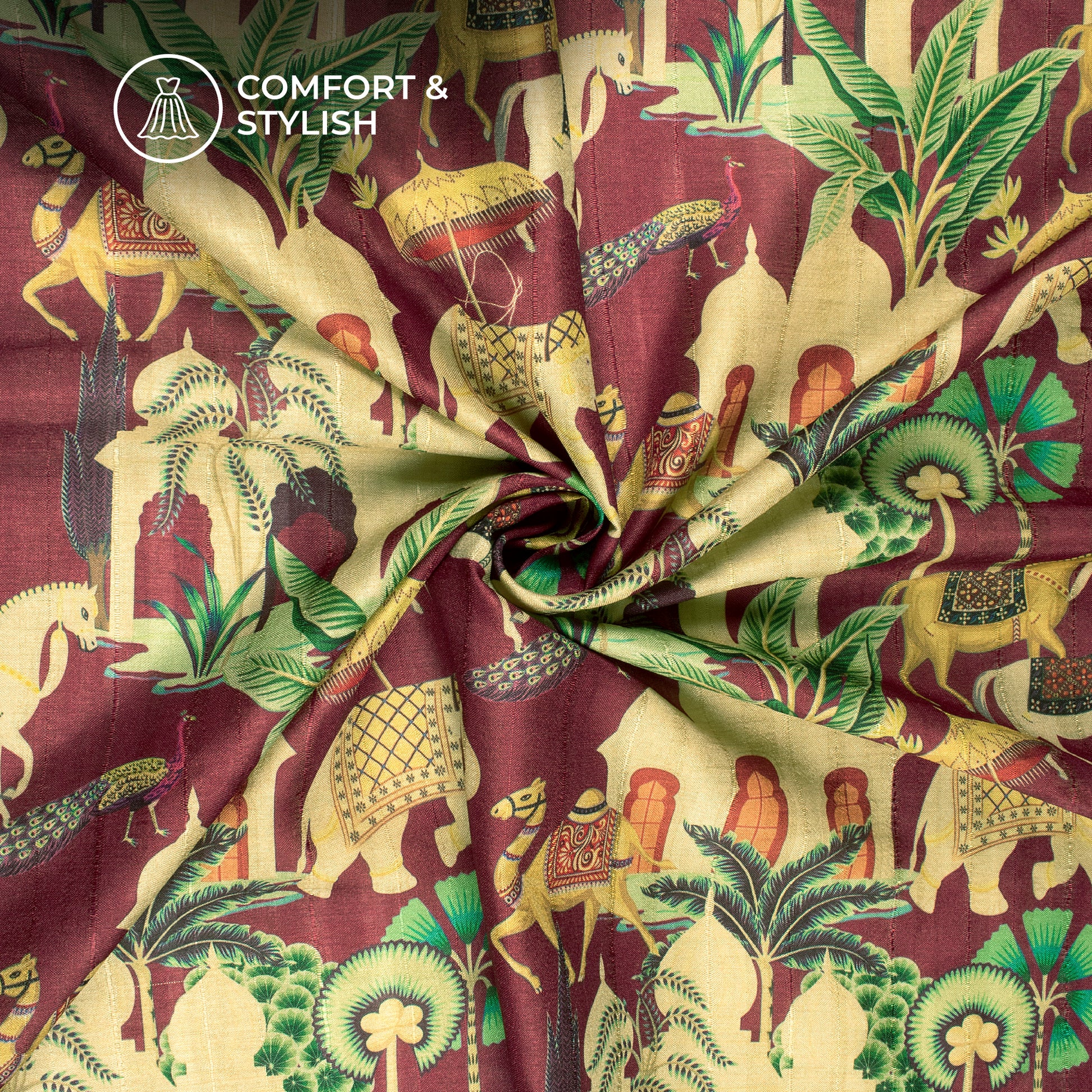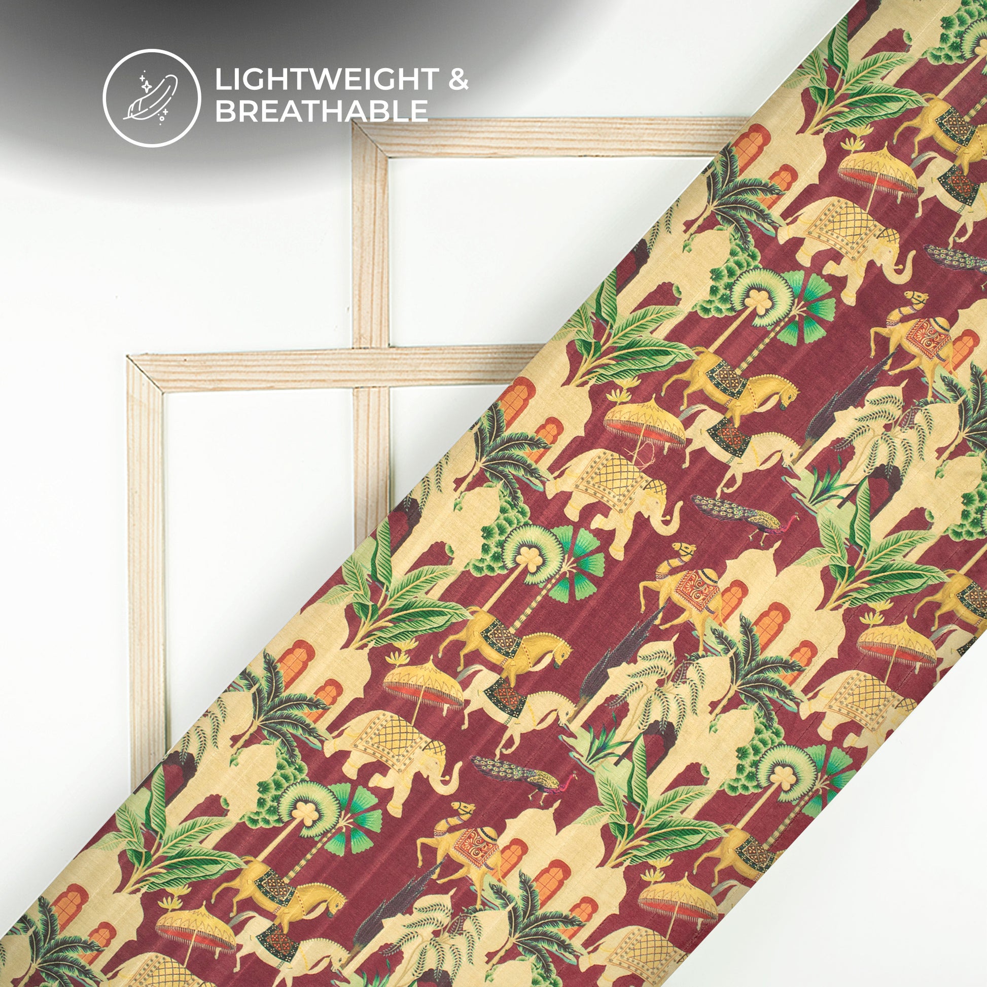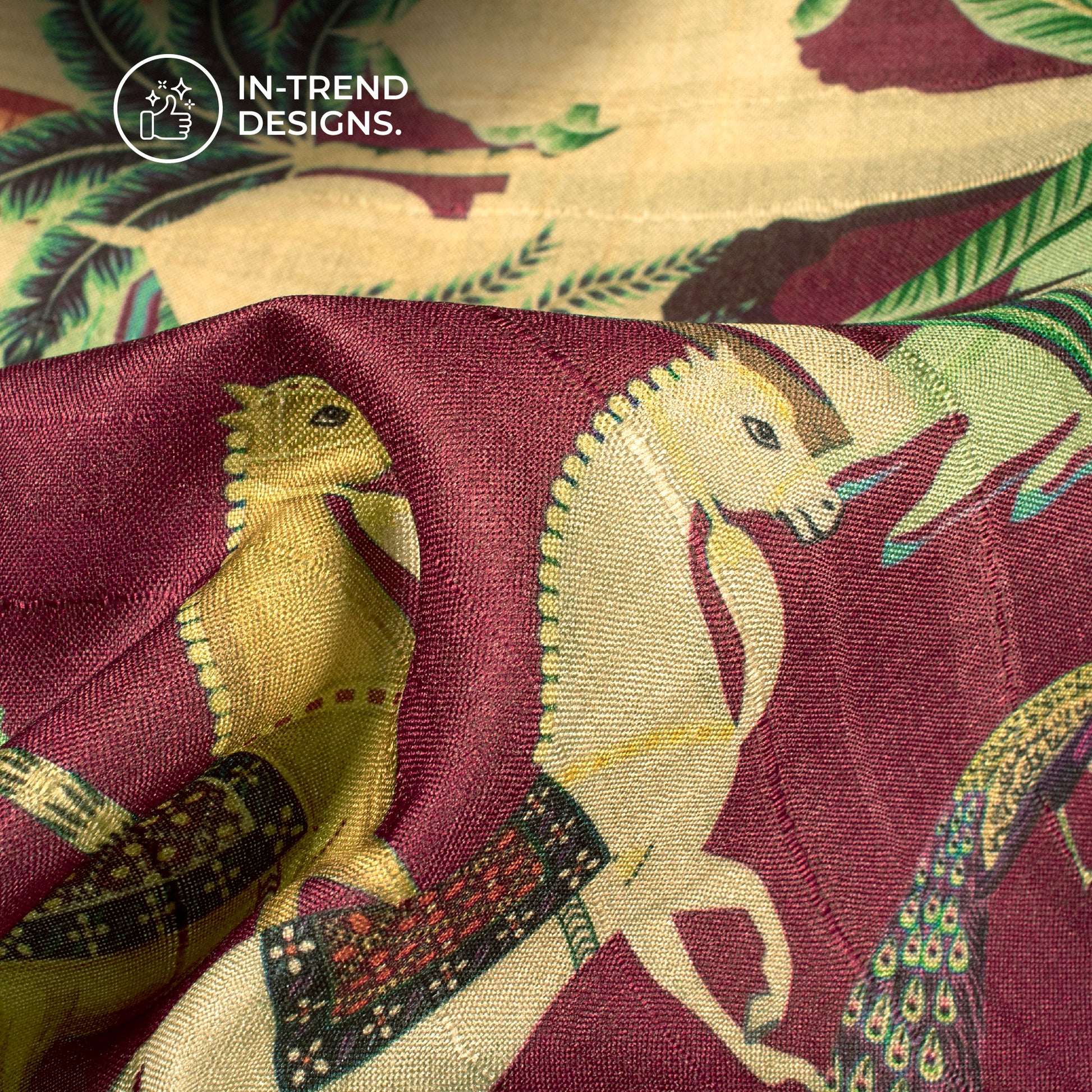 Mughal Animal Art Digital Print Art Tusser Silk Fabric