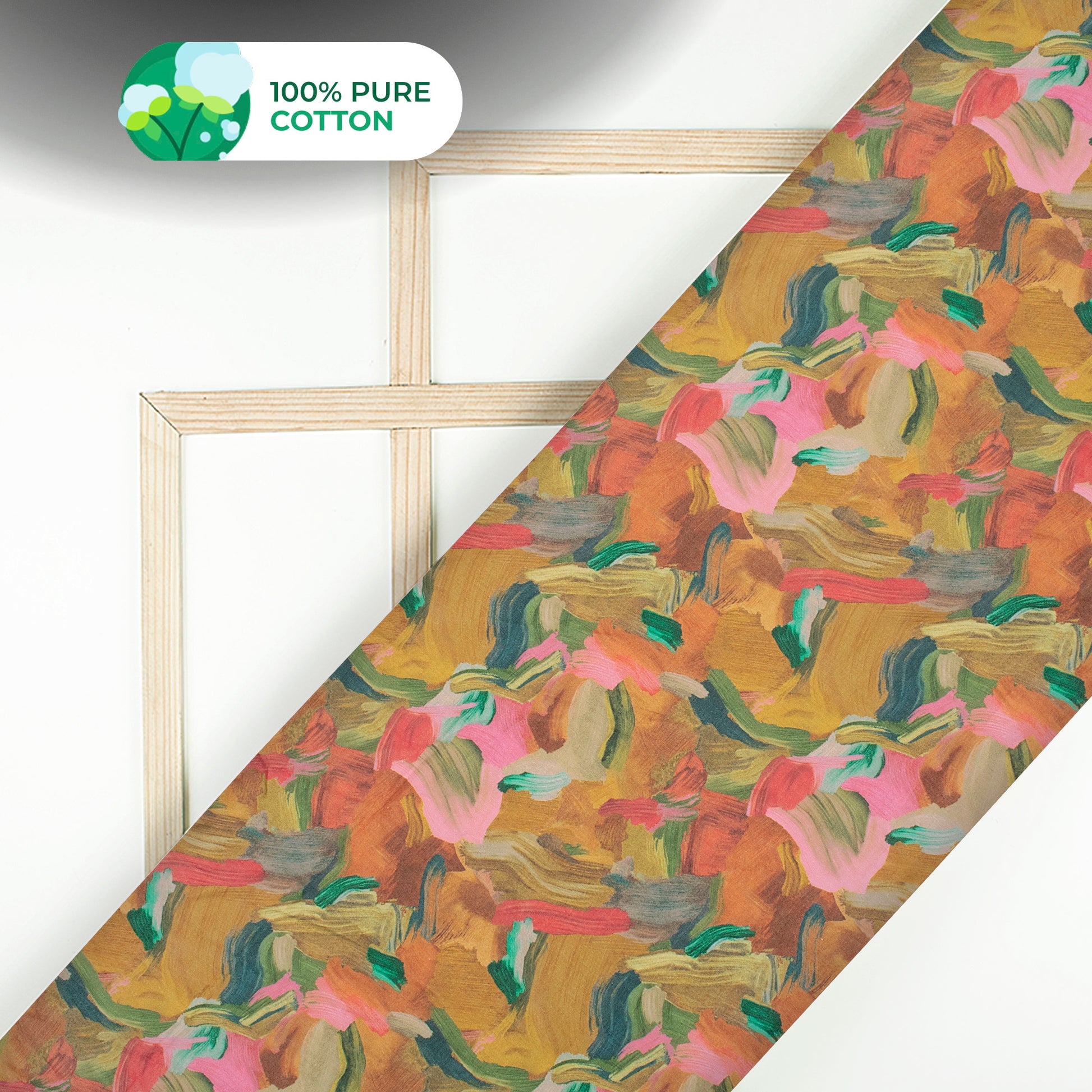 Multi Color Abstract Digital Print Cotton Mulmul Fabric
