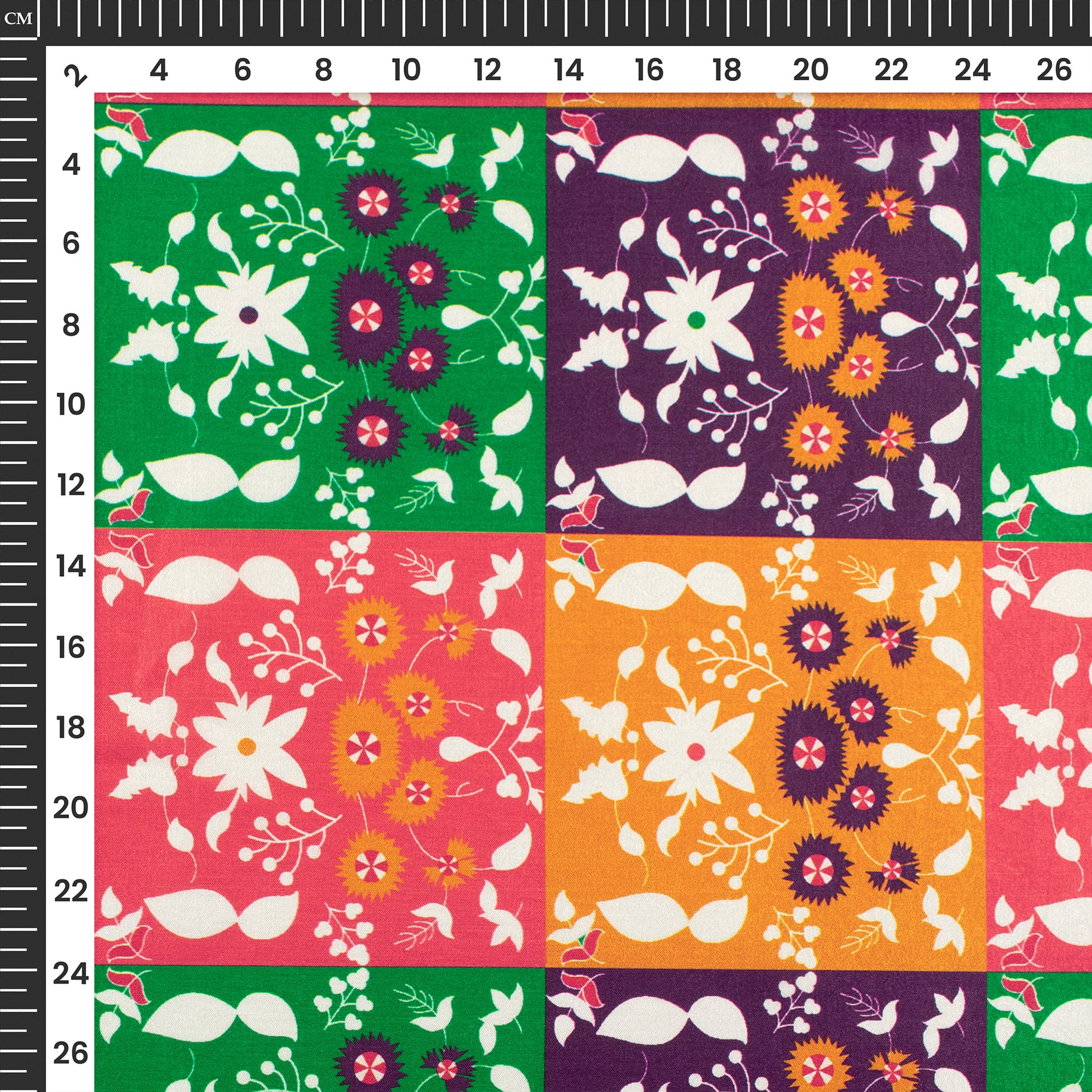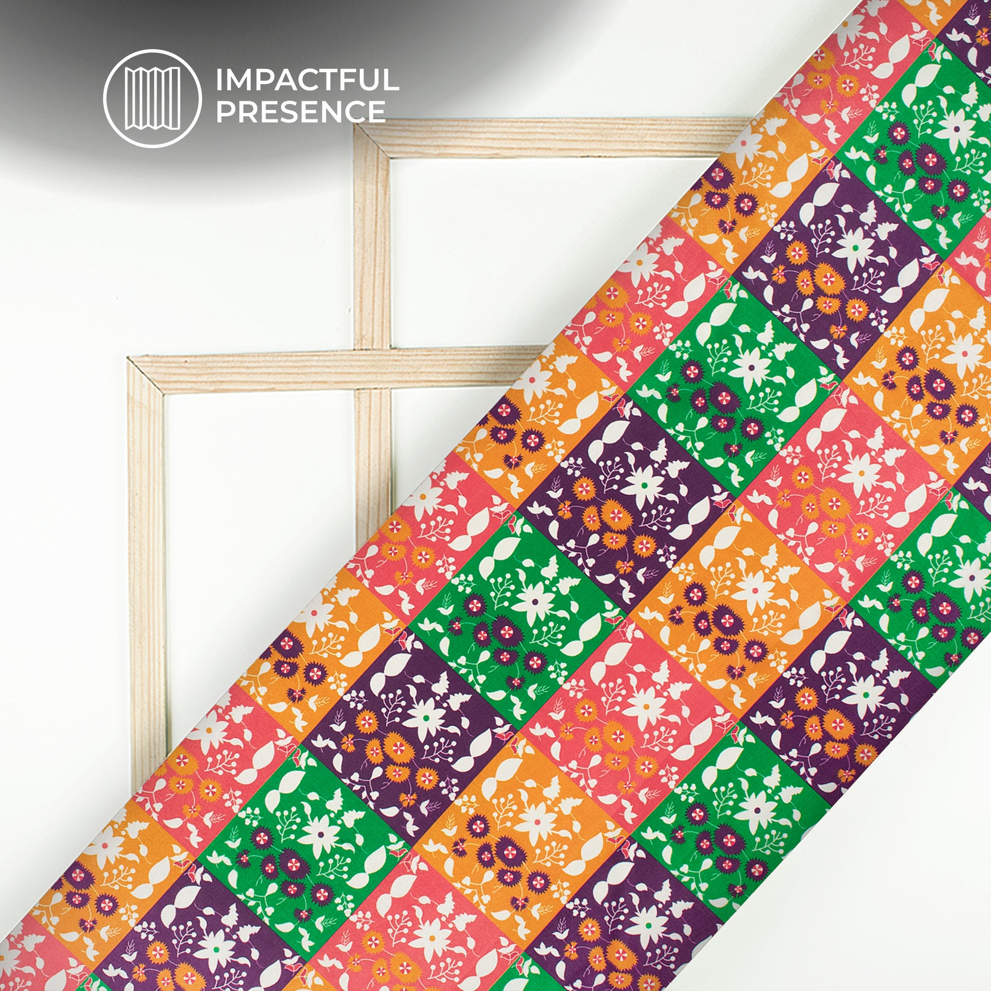 Multi-Color Checks,Floral Digital Print Flat Silk Fabric