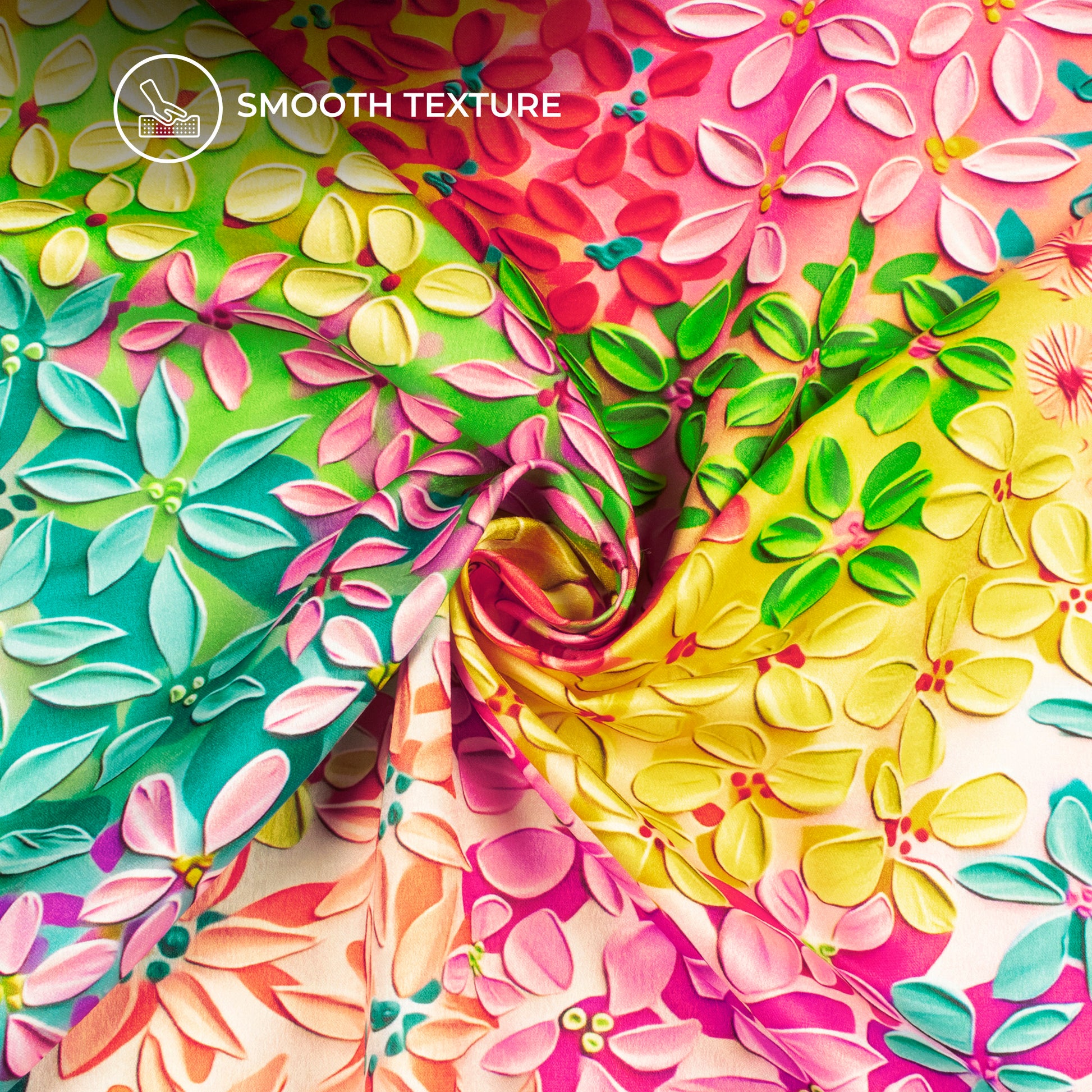 Multi Color Floral Digital Print Lush Satin Fabric