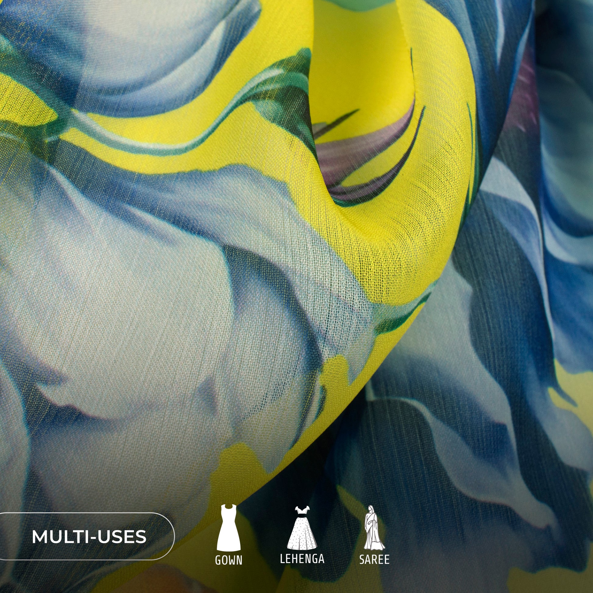 Chiffon is considered as a fabric for customization and the S-&-Z twisted yarns are to be credited for that. It offers a slightly crumpled shine, sheer and silky texture alongside. Explore the ultra-gorgeous collection that holds refreshing plain and contemporary Printed Chiffon.It is used in making, casual wear, tops, dresses, lehengas, sarees, Dupatta etc.