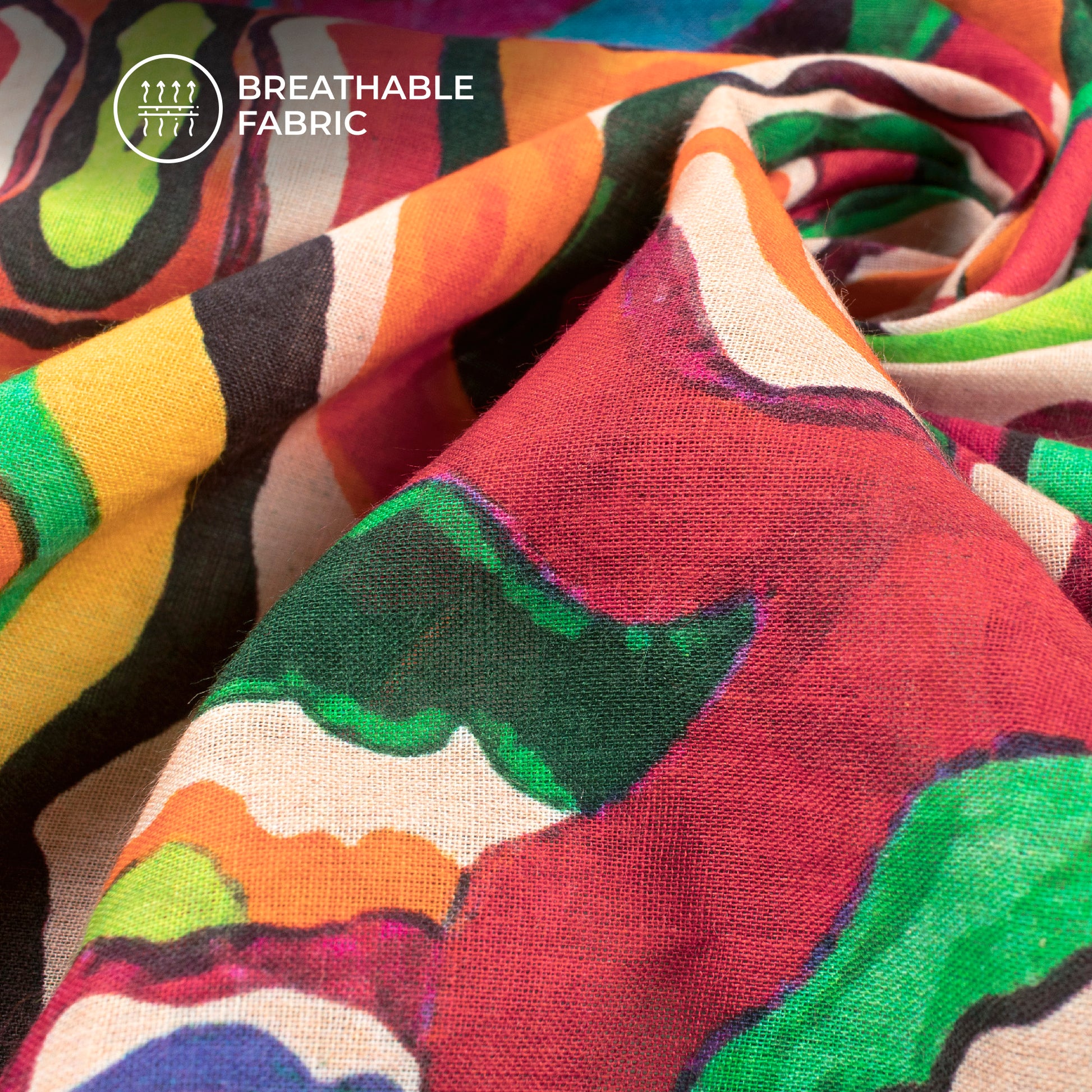 Multi Color Geometric Digital Print Pure Cotton Mulmul Fabric