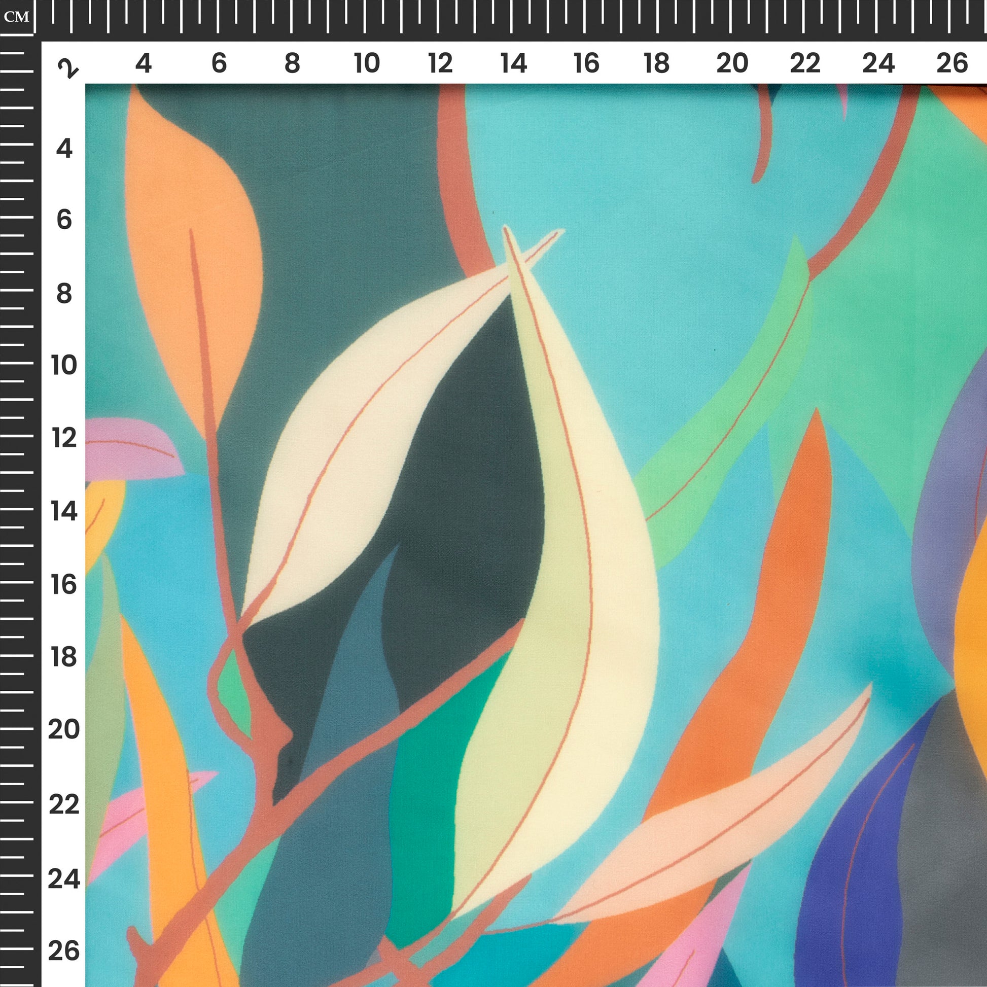 Multi-Color Leaf Digital Print Organza Satin Fabric