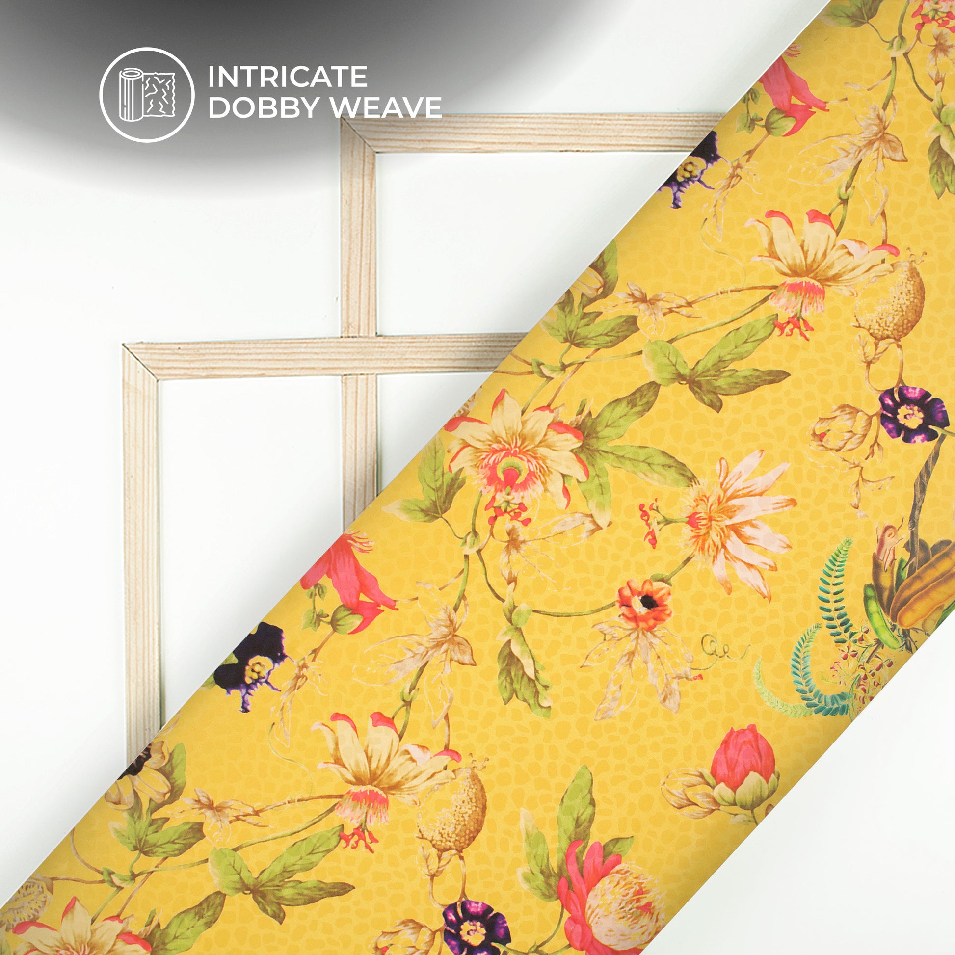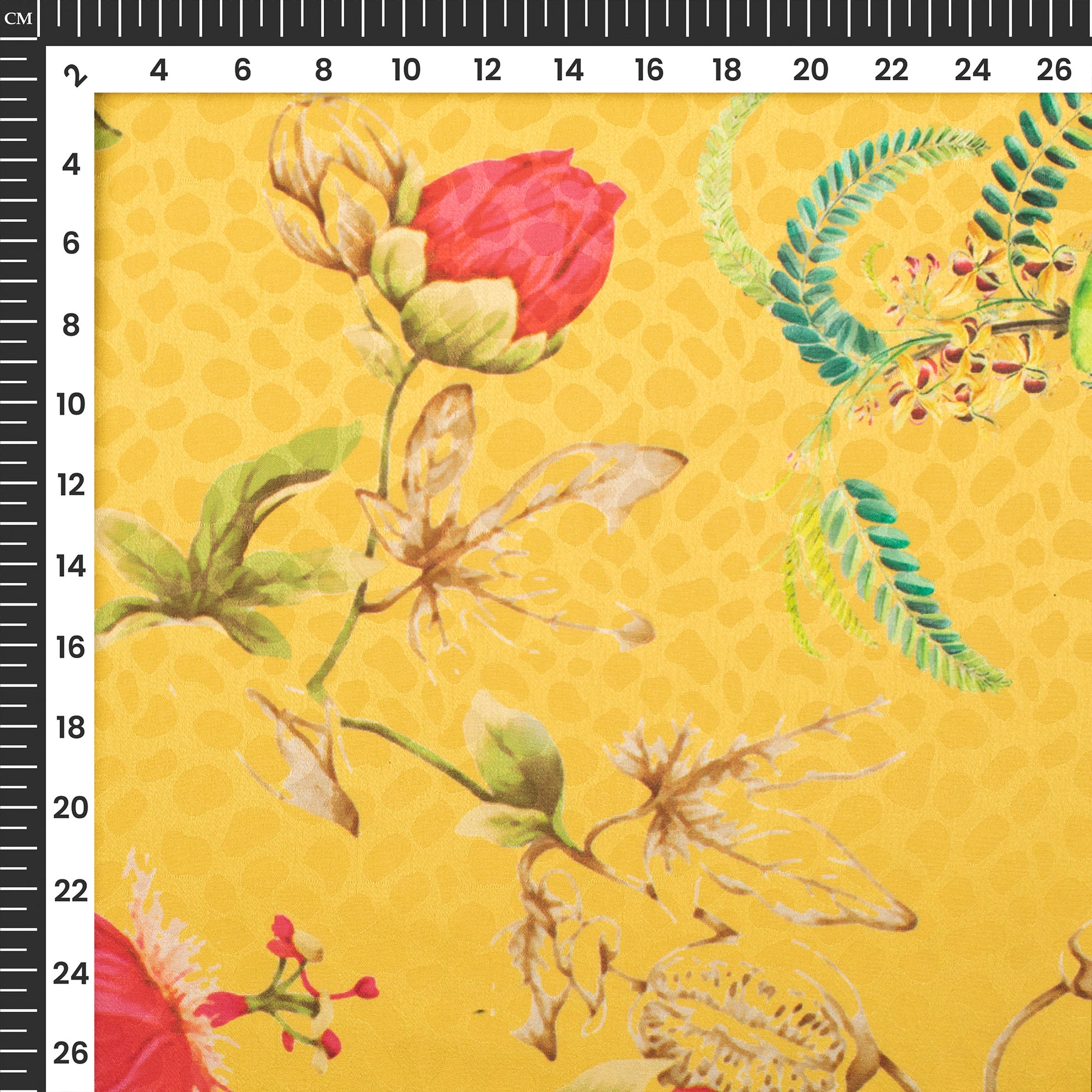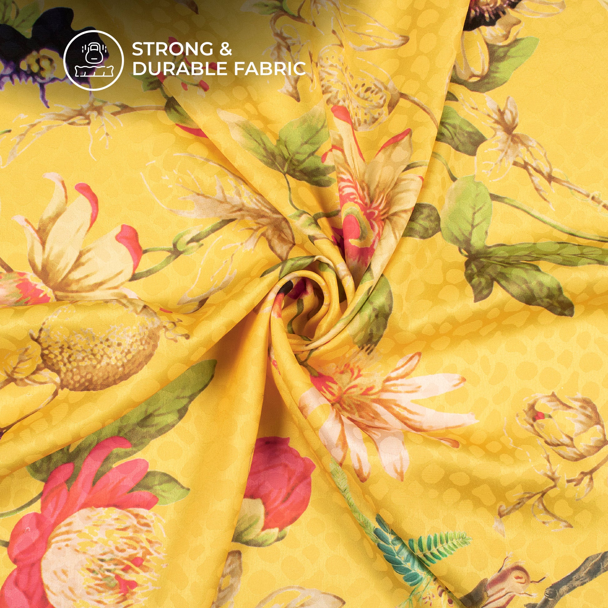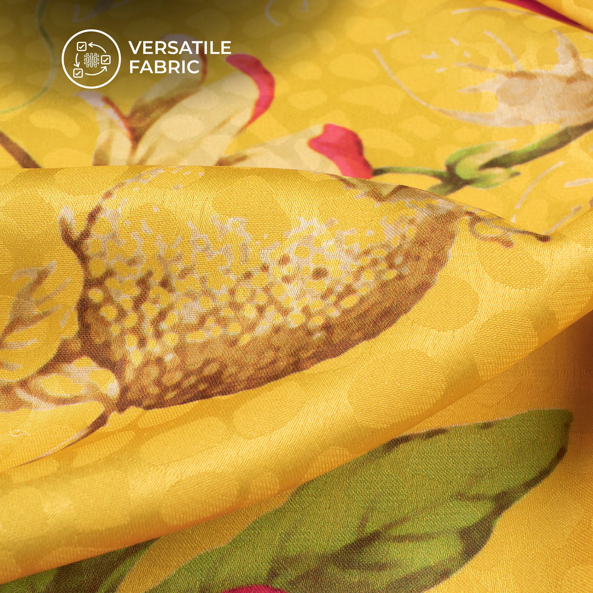 Mustard Yellow Floral Digital Print Dobby Satin Fabric