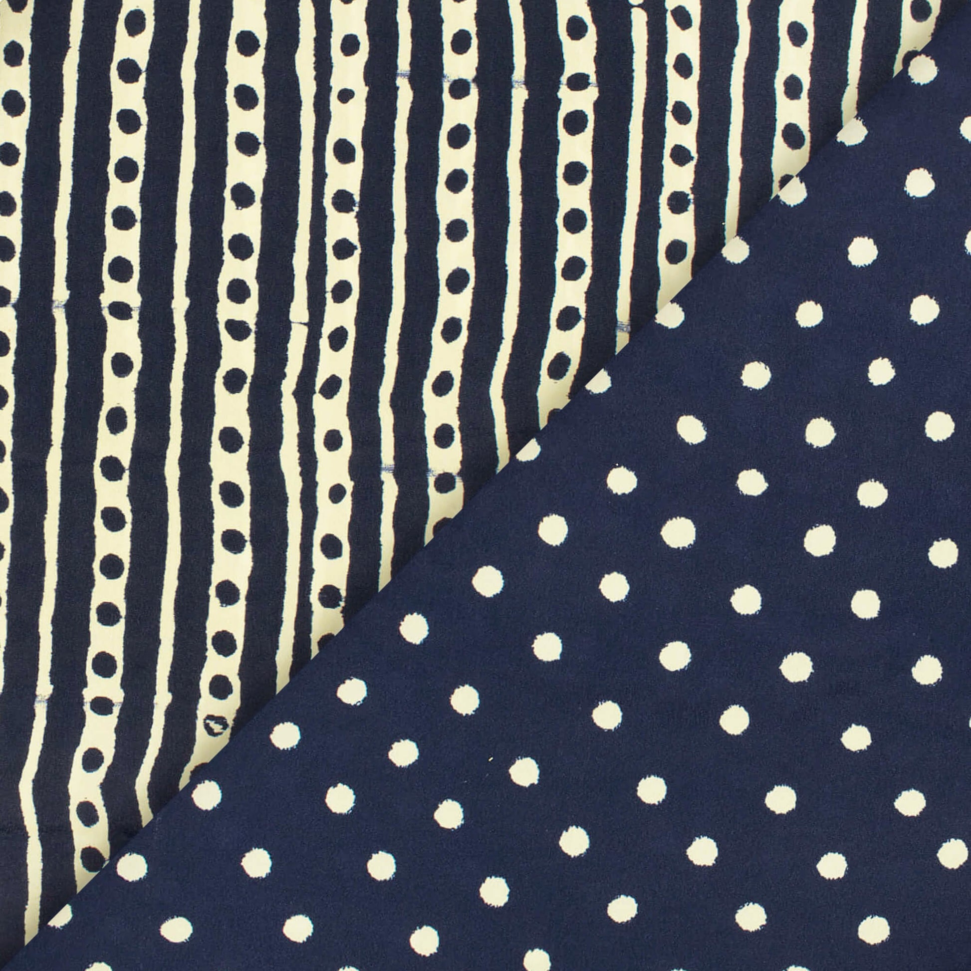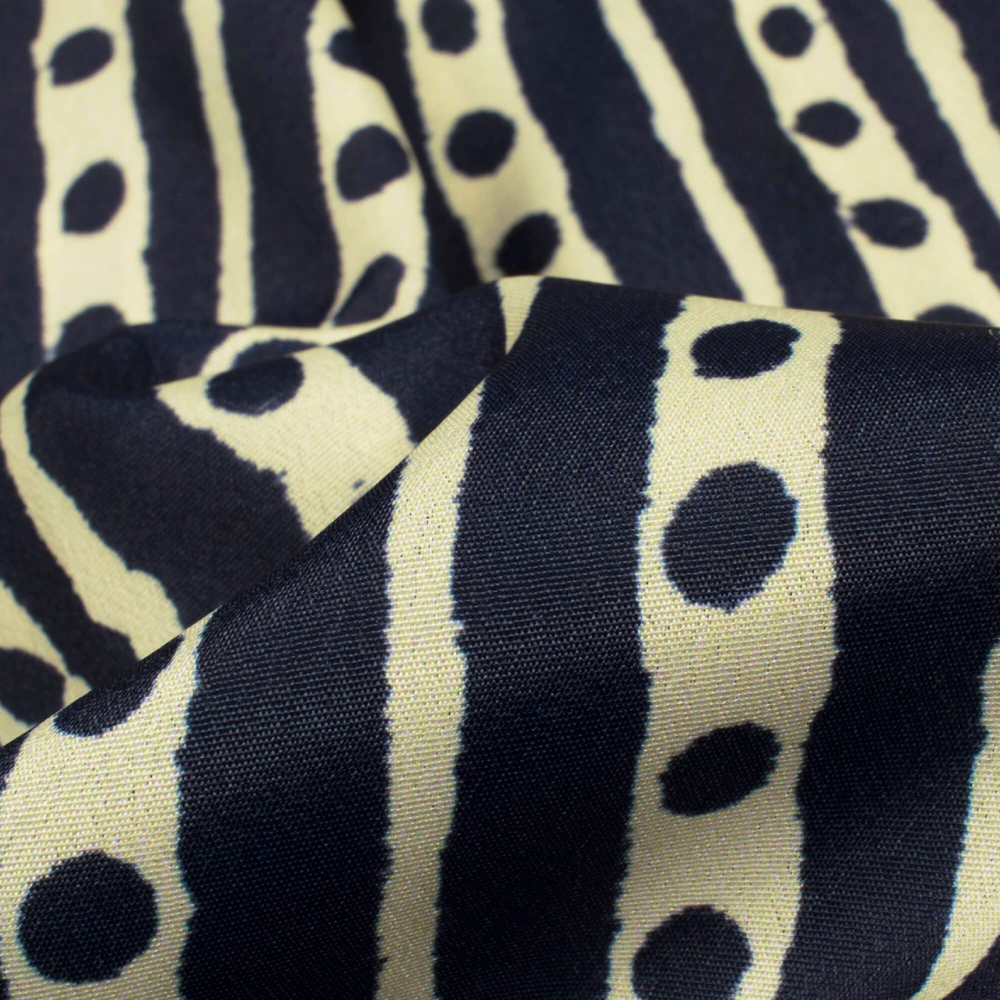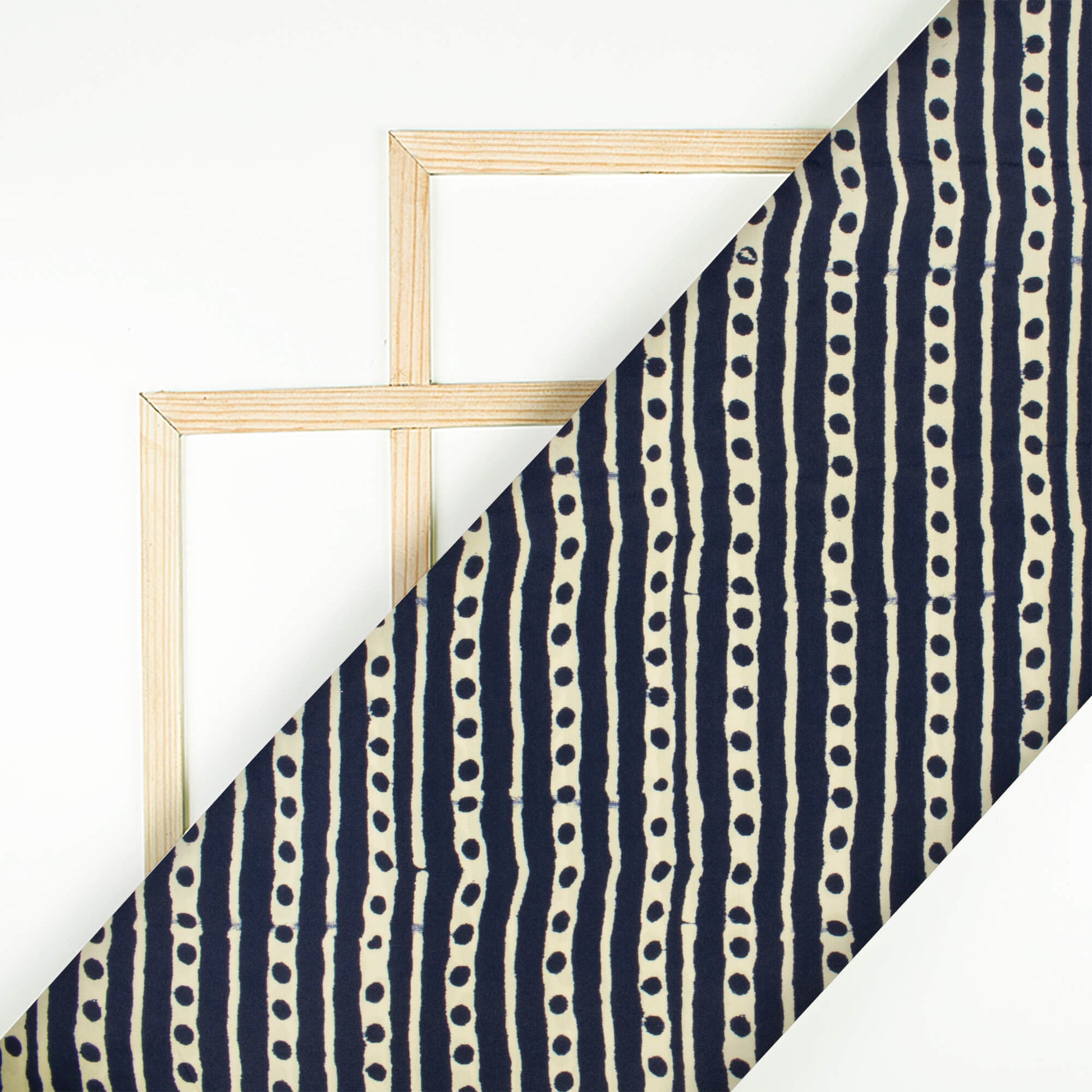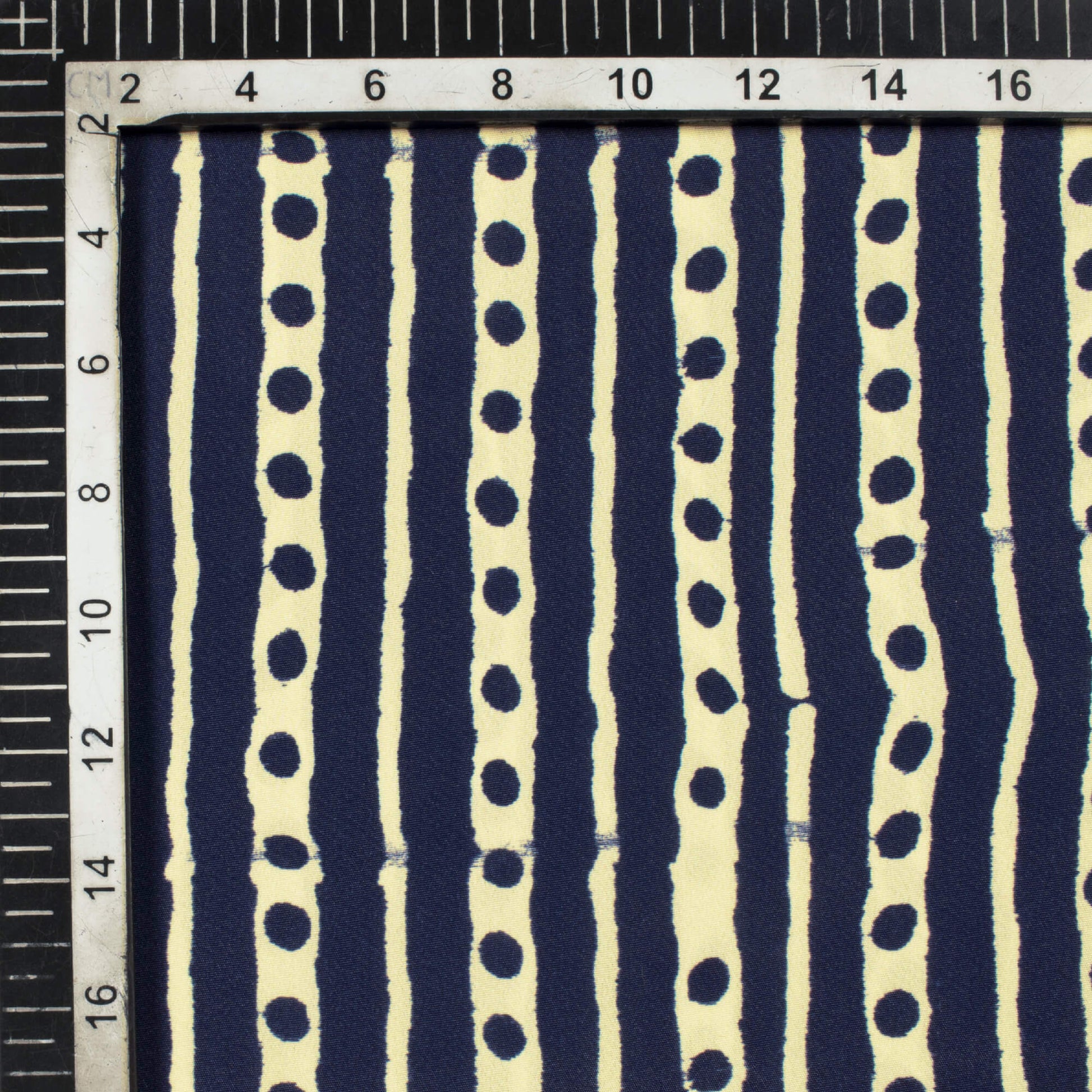 Navy Blue And Cream Stripes Pattern Digital Print Crepe Satin Fabric
