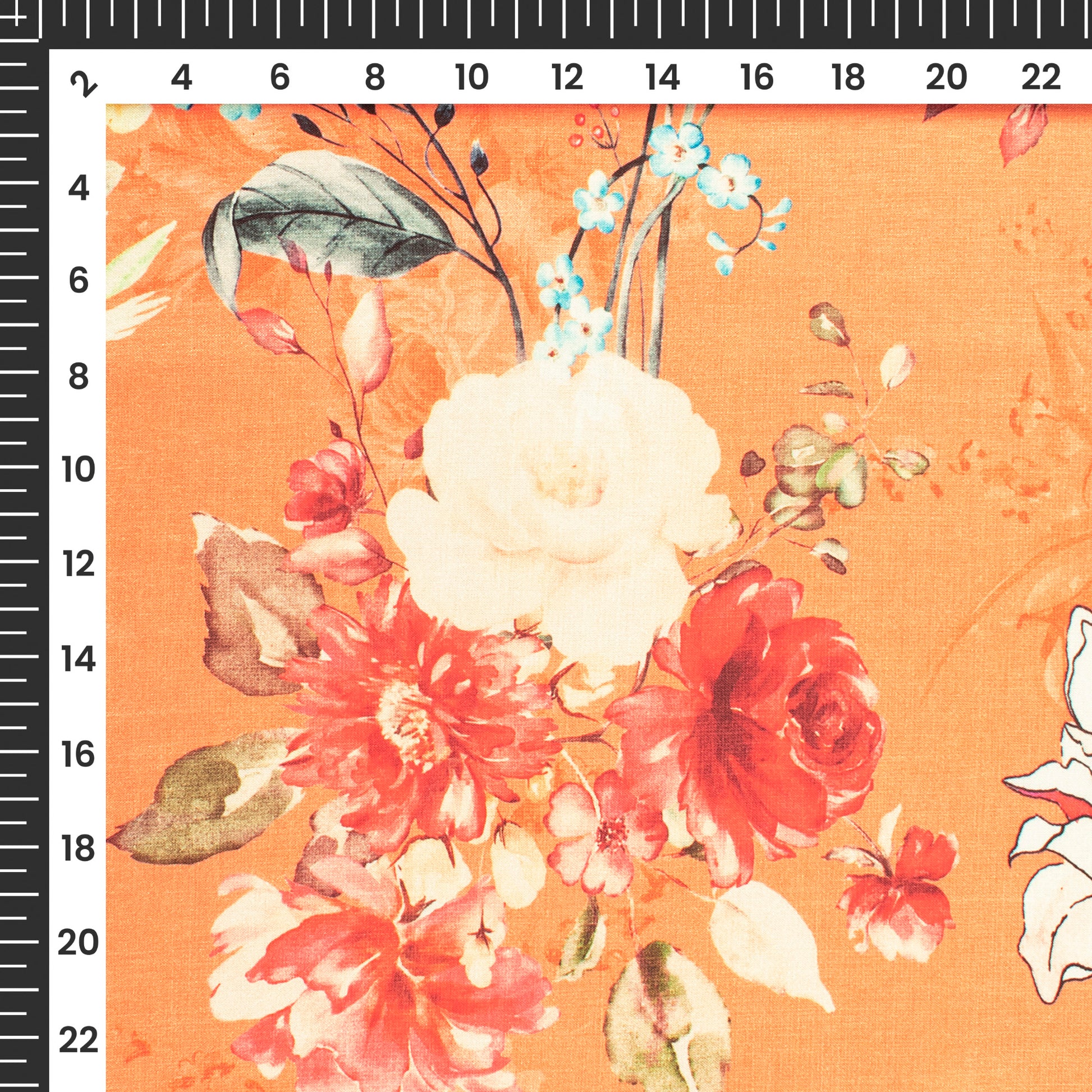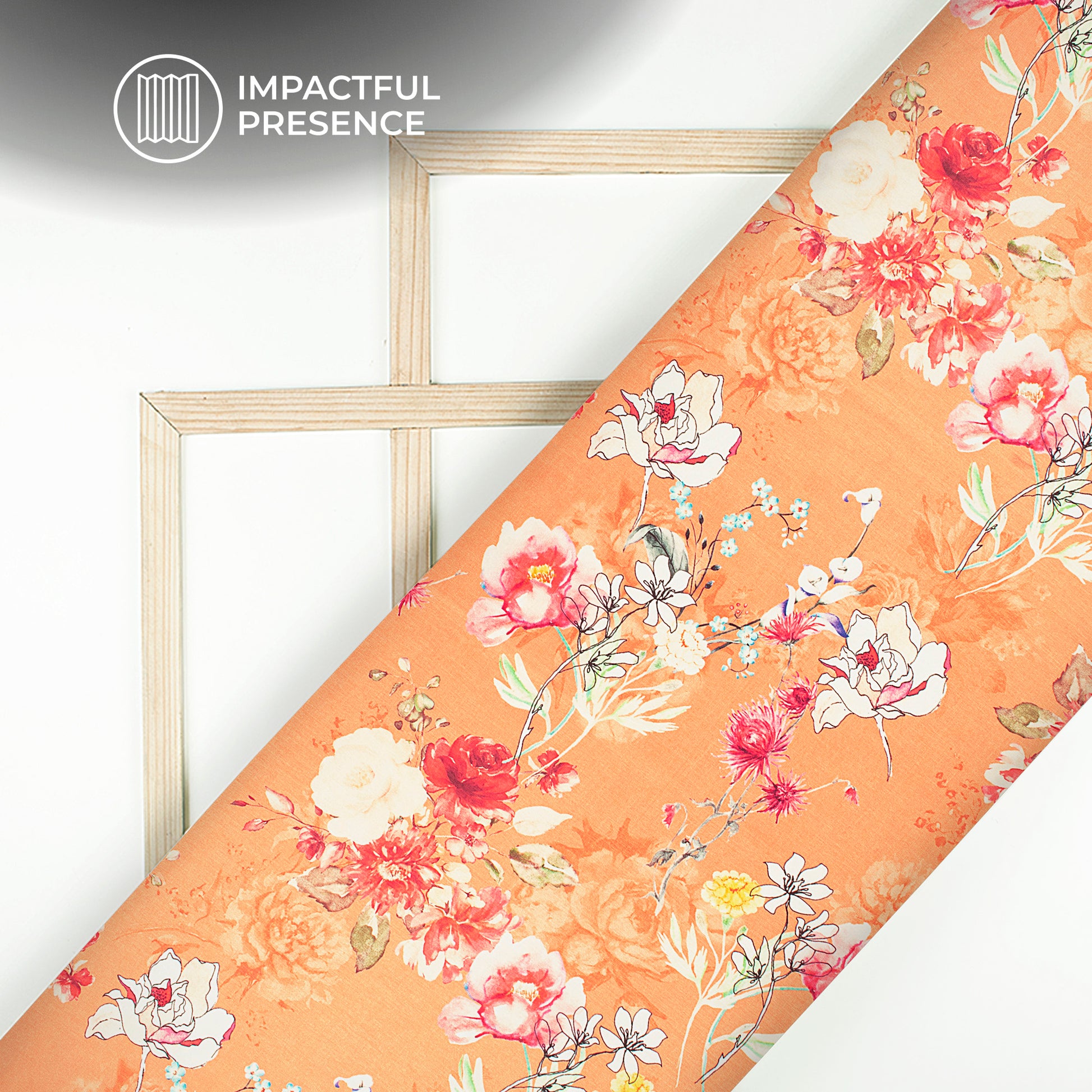 Orange Abstract Seamless Floral Digital Print Flat Silk Fabric